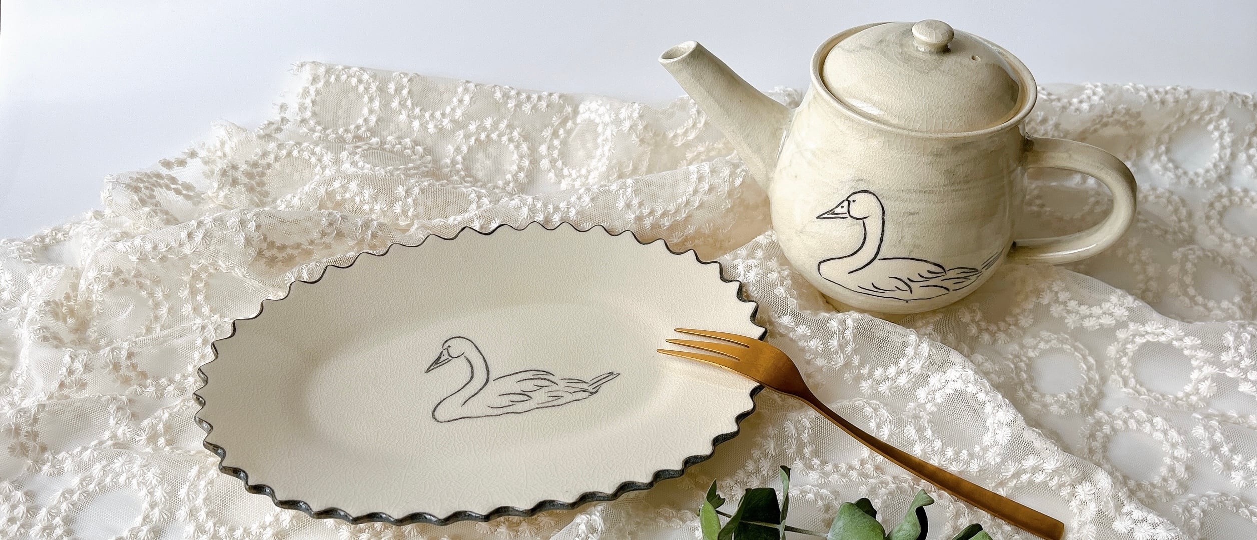 動物や植物で彩られた雰囲気たっぷりの器たち。 持ち帰ったおかずも、おうちでじっくり作ったおかずやスイーツも。 キエリ舎さんの器にのせればなんだか特別なものに。 毎日の大切な食事の時間にそっと寄り添ってくれそうです。 ・・・・・・・・・・・・・ ぐるっとシロツメクサに囲まれた愛らしいお皿。 表面にはちょうちょが・・♪ まぁるいロールパンに、ちょこっとサラダを載せて朝ごはんに、 ケーキにホイップやフルーツを添えてティータイムにも。 使い勝手良いサイズです。 ・・・・・・・・・・・・・ 素材:陶器 サイズ:約 縦18.4×横21.7×高さ1.7㎝ こちらは複数在庫のある作品です。1点ずつ手づくりの為、多少の個体差(サイズや形(歪み/湾曲)・色味の濃淡・柄の出方(線や模様)・釉薬の具合など)はございますが大きな違いは無い為、ランダムでお送りさせていただきます。 *線・黒点・ピンホール(小さな穴)・小さな突起や凹み等、陶作品の味わいとしてお楽しみください。 *電子レンジ・オーブンのご使用はお避け下さい。 *商品写真はできる限り実物の色味に近づけておりますが、撮影当日の天候やお客様のお使いのパソコンの環境等によっては実際の商品と色味が多少異なる場合がございますのでご了承下さい。 ・・・・・・・・・・・・・・ 【発送方法について】 □ゆうパック・・・日時指定が可能です。ご希望のある場合は備考欄にご記入ください。 発送後にお知らせする伝票番号から、日本郵便のオンラインにて事前に到着日時の指定も可能です。 ・・・・・・・・・・・・・・ キエリ舎profile 2008年、三重県いなべ市に窯立。キエリはフィンランド語で「言語」。創作物は作家の言語、その言葉の詰まった小さなアトリエという意味の工房名です。詩的な風景や自然、動物をモチーフとした陶器や陶オブジェ、陶アクセサリーを制作されています。 コンセプトは様々な形の器を並べて食卓の上に絵を描く。オブジェを並べて日常を物語にする。 見慣れた日常の空間に、そっと非日常の入り口を。