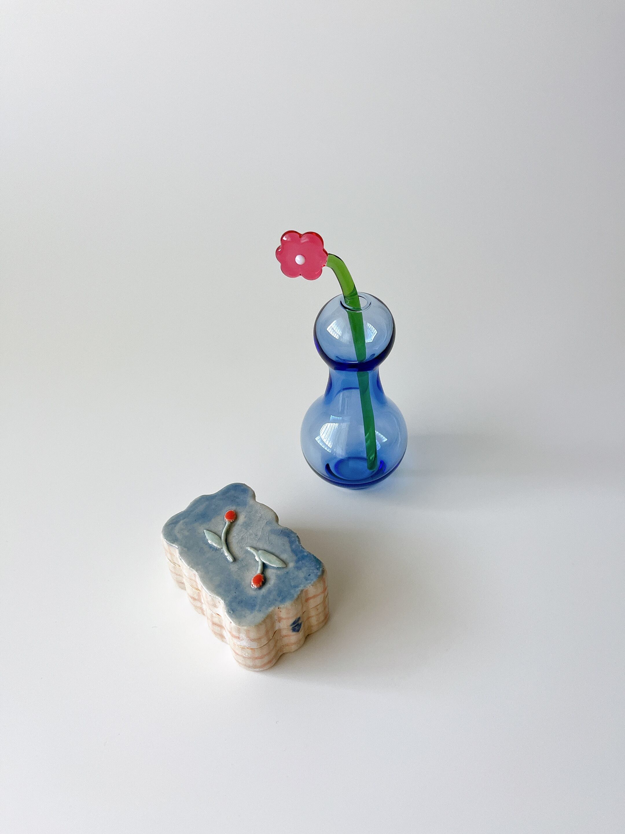 気泡や線、小さな突起や凹み、黒点・色ムラ・カスレ、ゆがみ等見られる場合がございますがガラス作品の味としてお楽しみください。