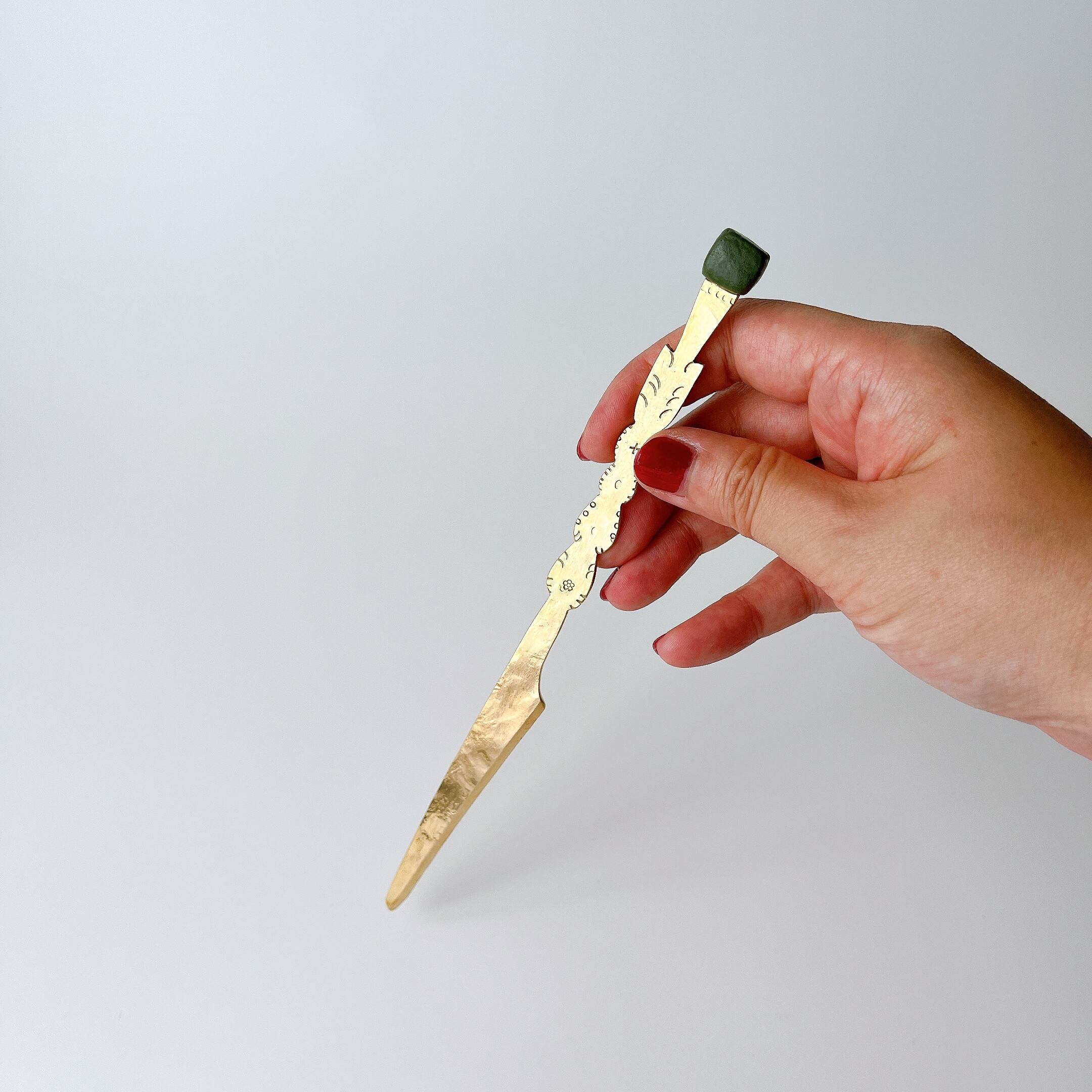 *モチーフ部分は陶磁器製です。1点ずつ手作業の為、形(歪み/湾曲)・模様・釉薬の流れ・色ムラ・貫入など個体差がございます。真鍮部分の線や黒点・小さな突起・凹み・接着剤のあと等、手作りの作品の味わいとしてお楽しみください。