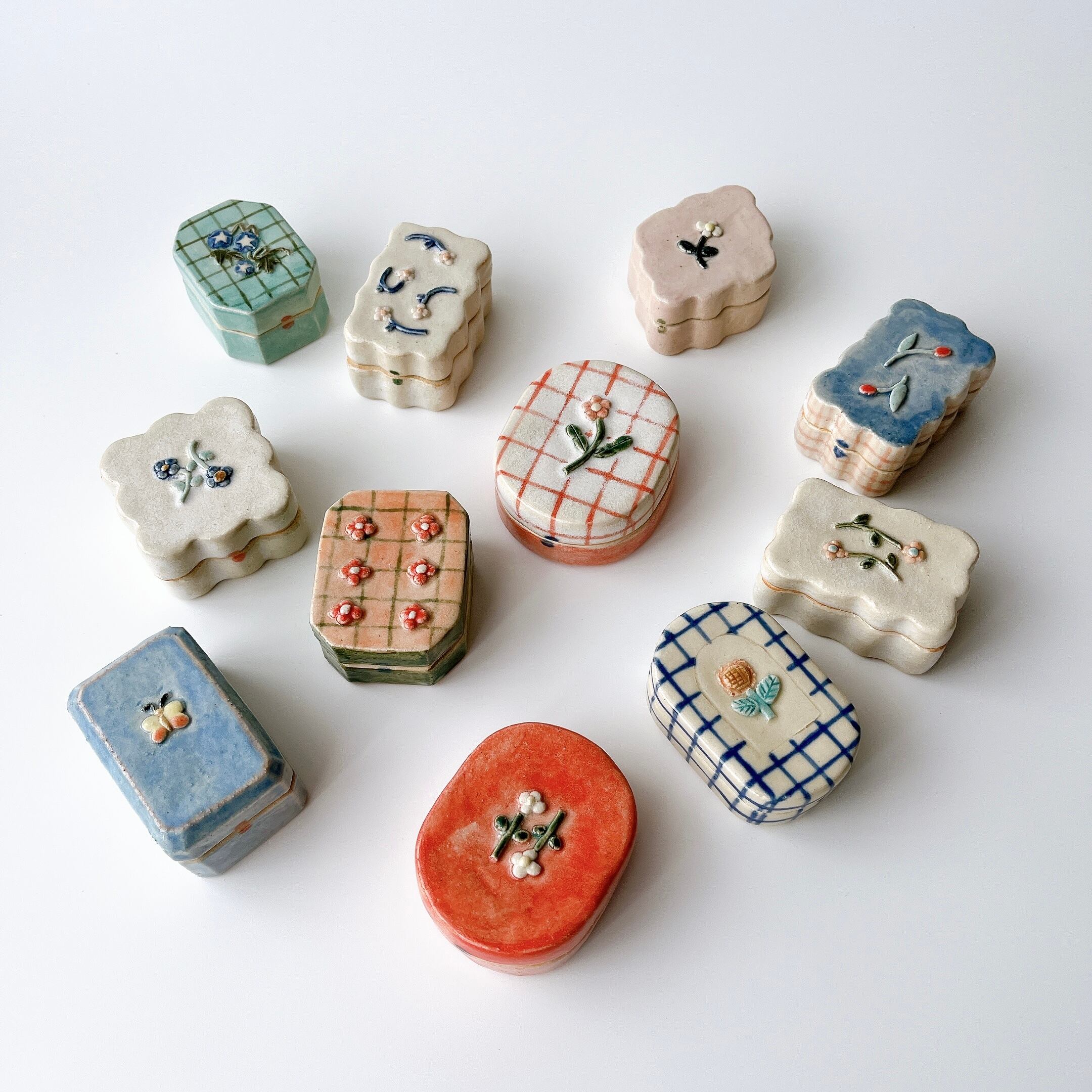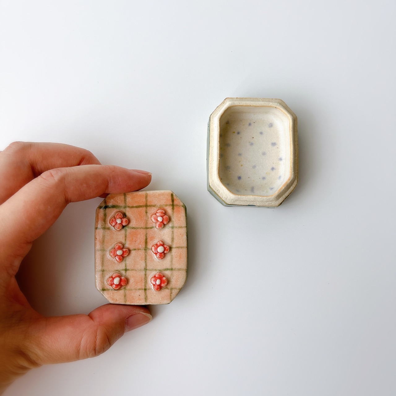 まるでヨーロッパのアンティークショップで見つけたような陶の小箱たち。