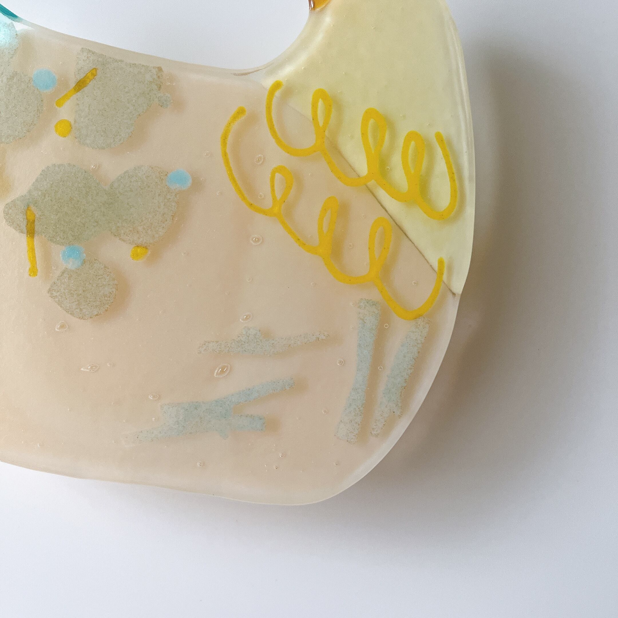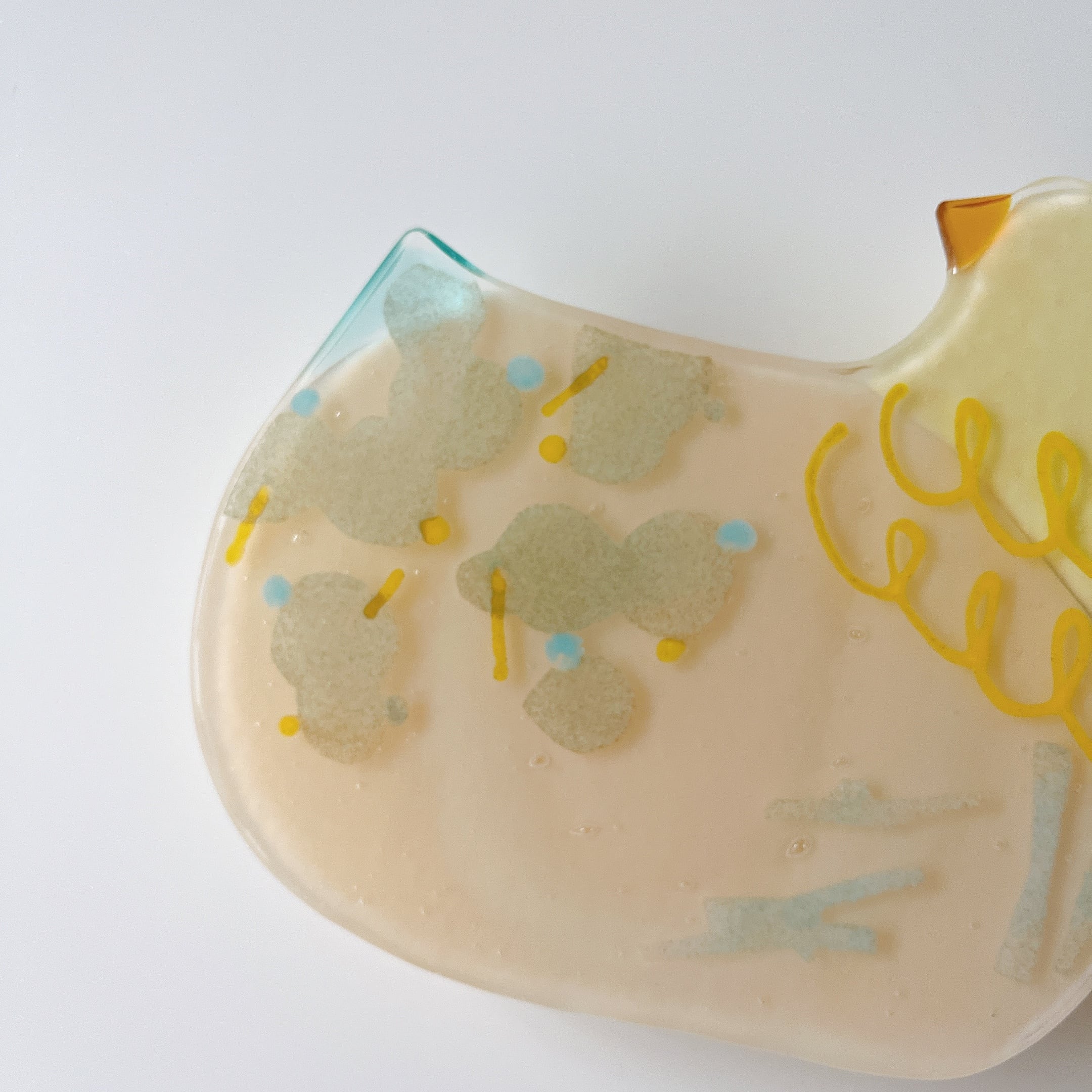 板ガラスを電気炉で焼成するフュージング・スランピングという技法を用いて1点ずつ丁寧に作られています。