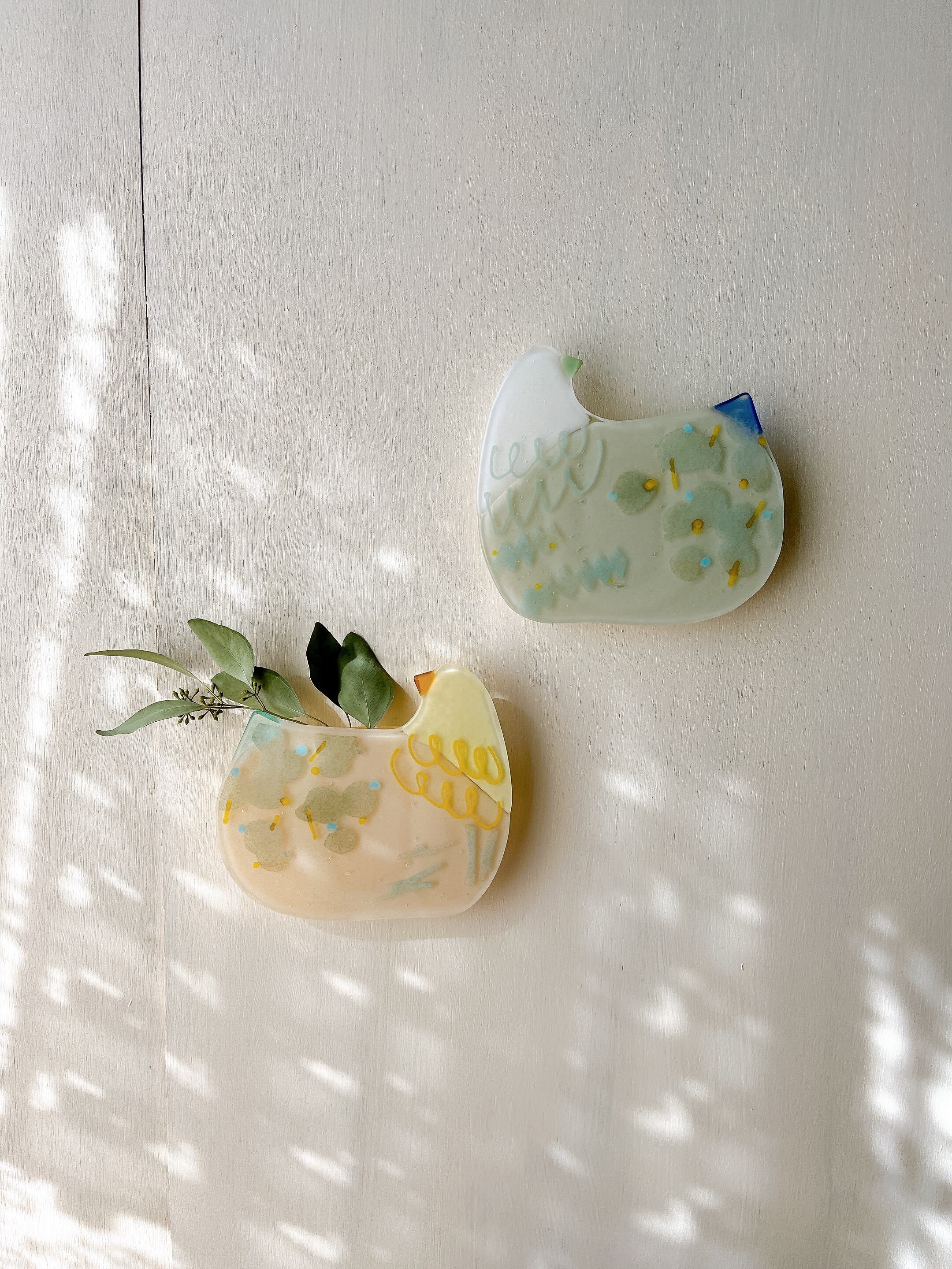 沖知江子|壁掛け花入れ(トリ)・イエロー系