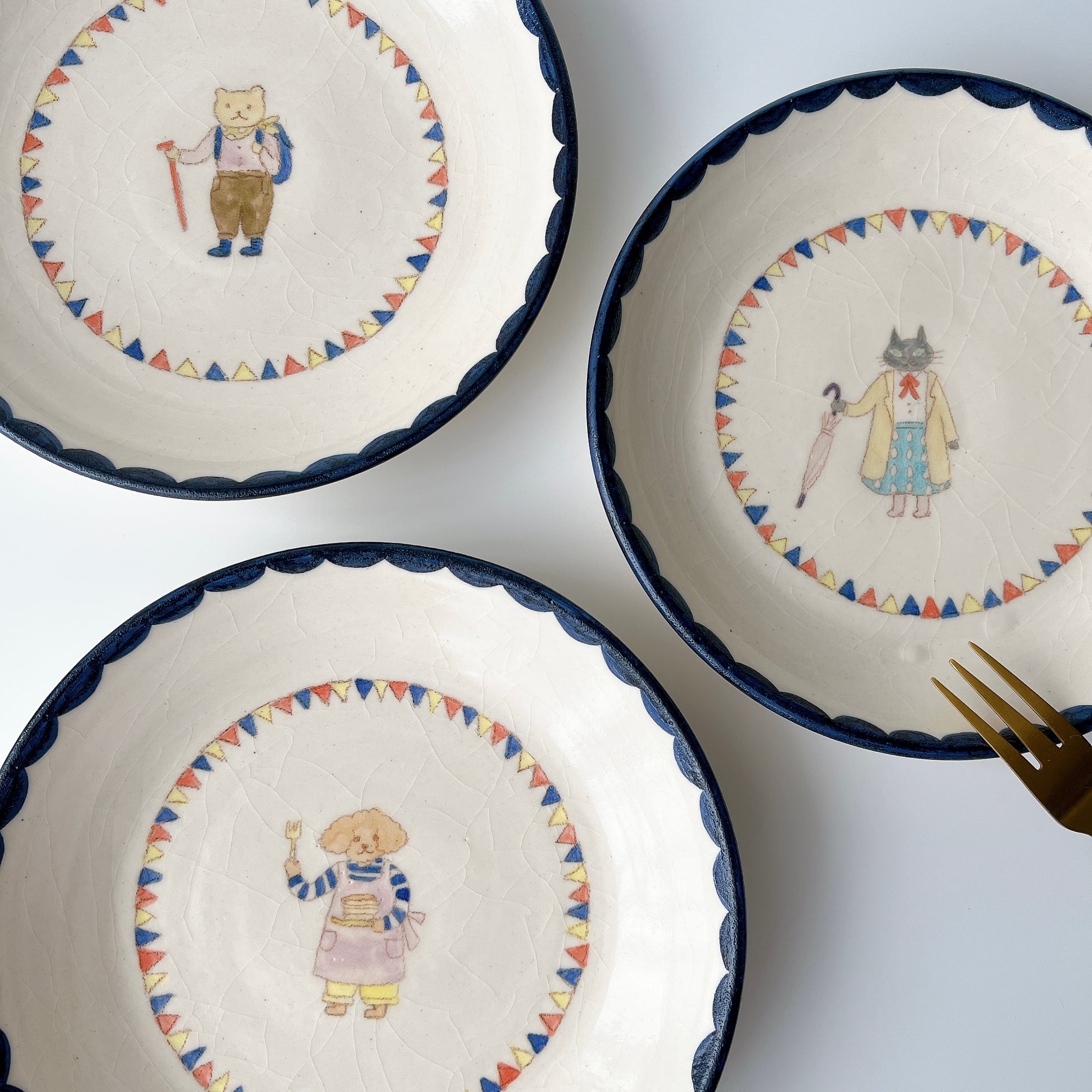 お話のワンシーンのような愛らしい絵が描かれたお皿。