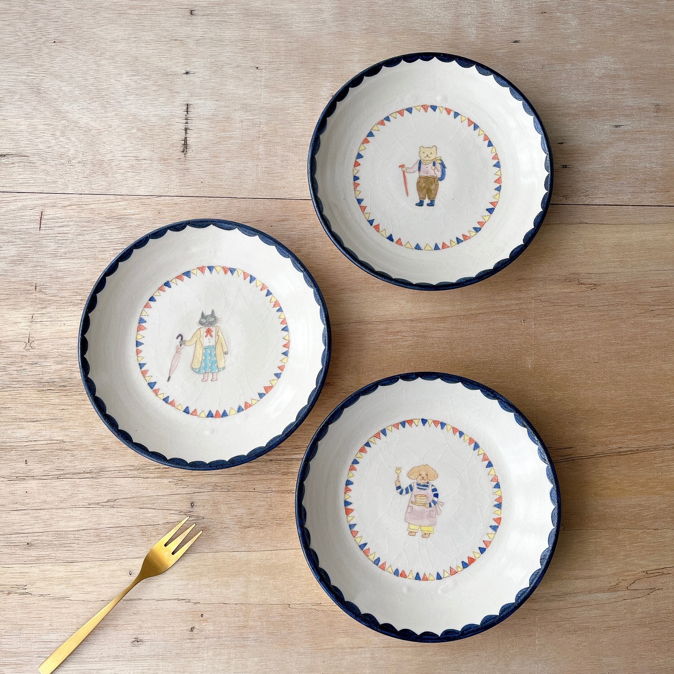 お話のワンシーンのような愛らしい絵が描かれたお皿。