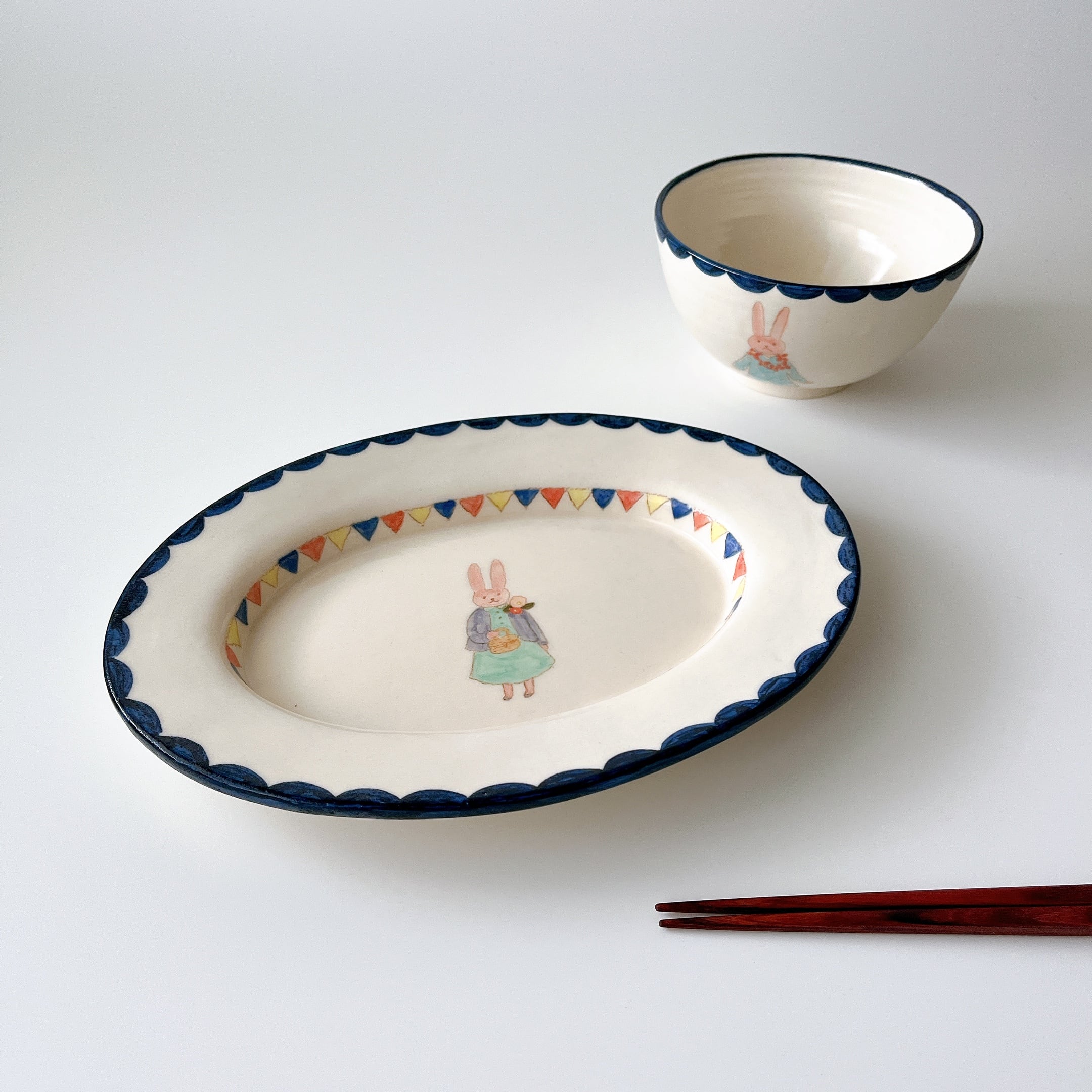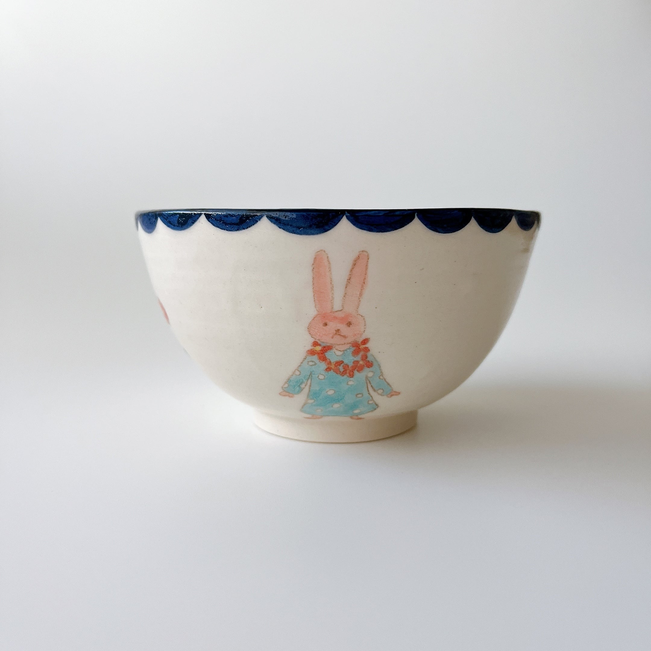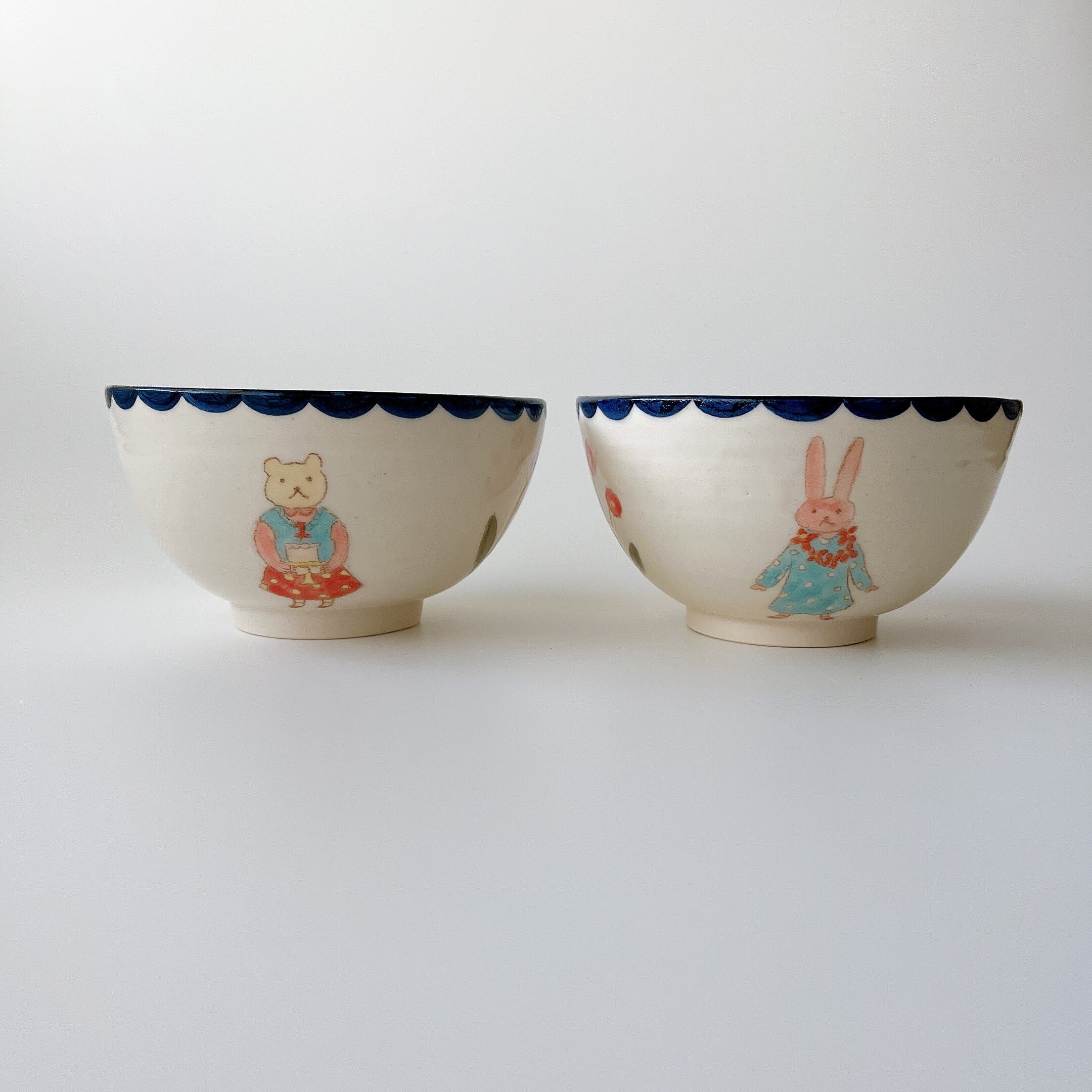 お話のワンシーンのような愛らしい絵が描かれたお茶碗。