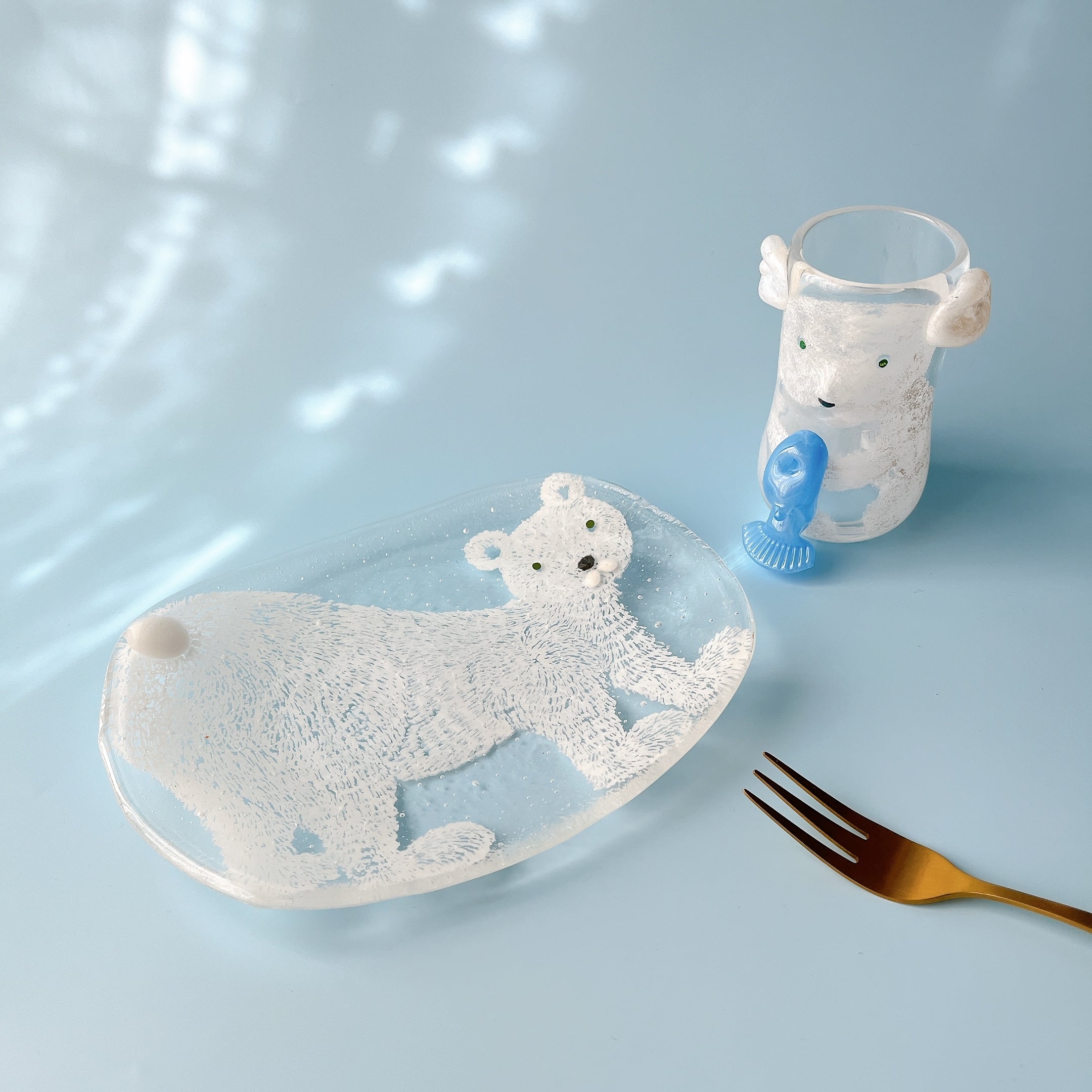 立体的な耳や尻尾、躍動感感じるお魚などかわいいポイントがいっぱいのグラス。