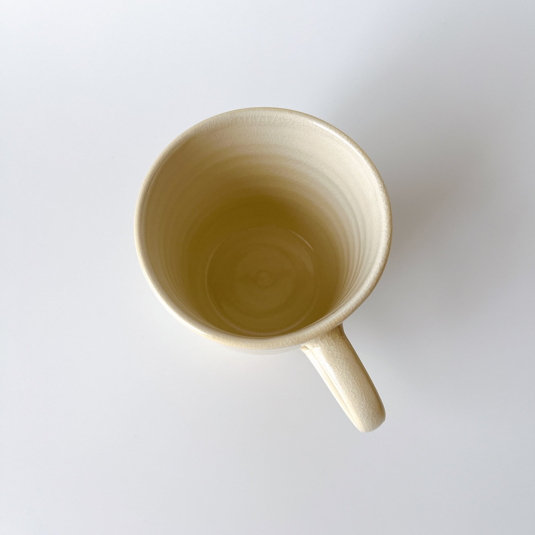 あわいクリームイエローのやさしいカラーのカップはどんなお皿にも合わせやすそう◎
