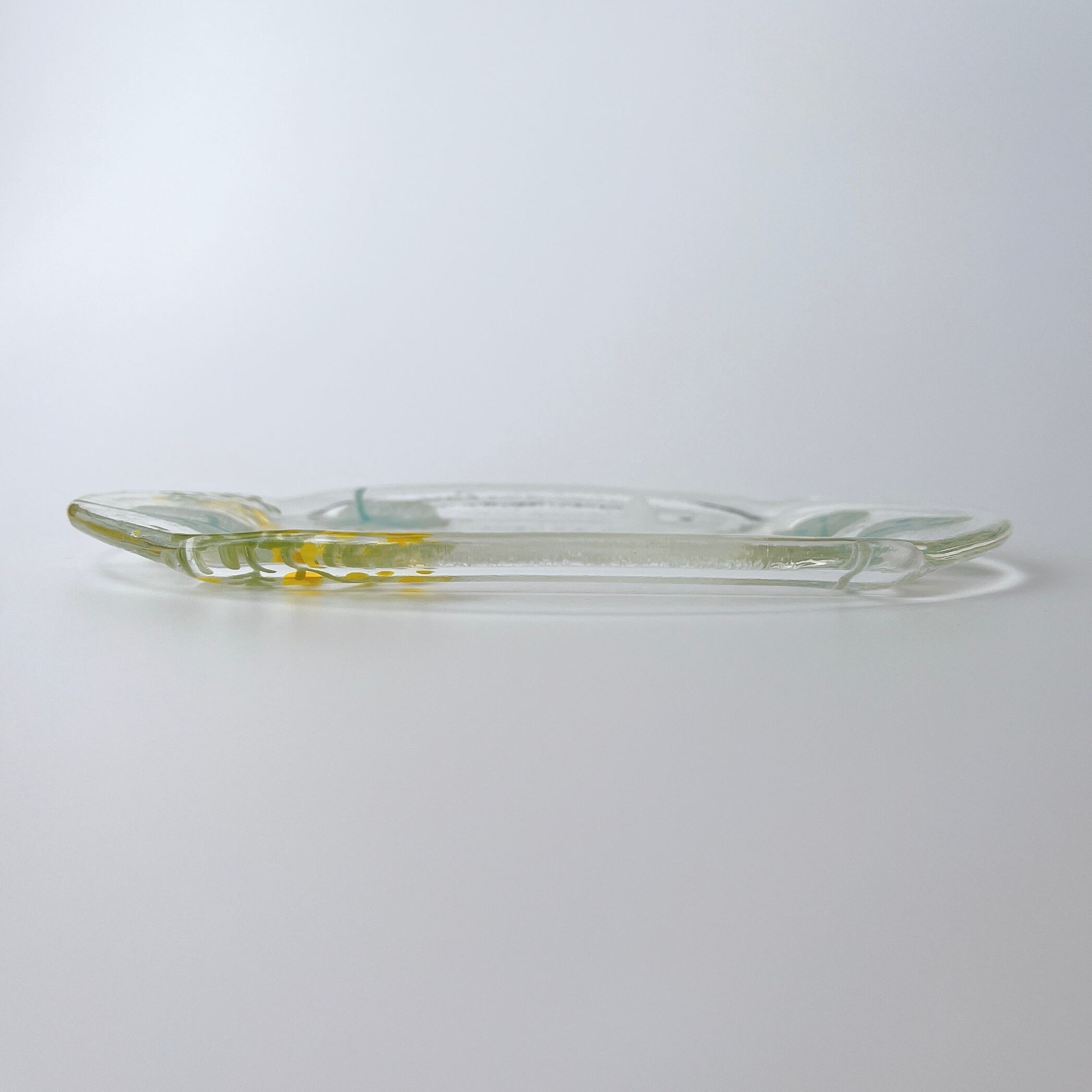 板ガラスを電気炉で焼成するフュージング・スランピングという技法を用いて1点ずつ丁寧に作られています。