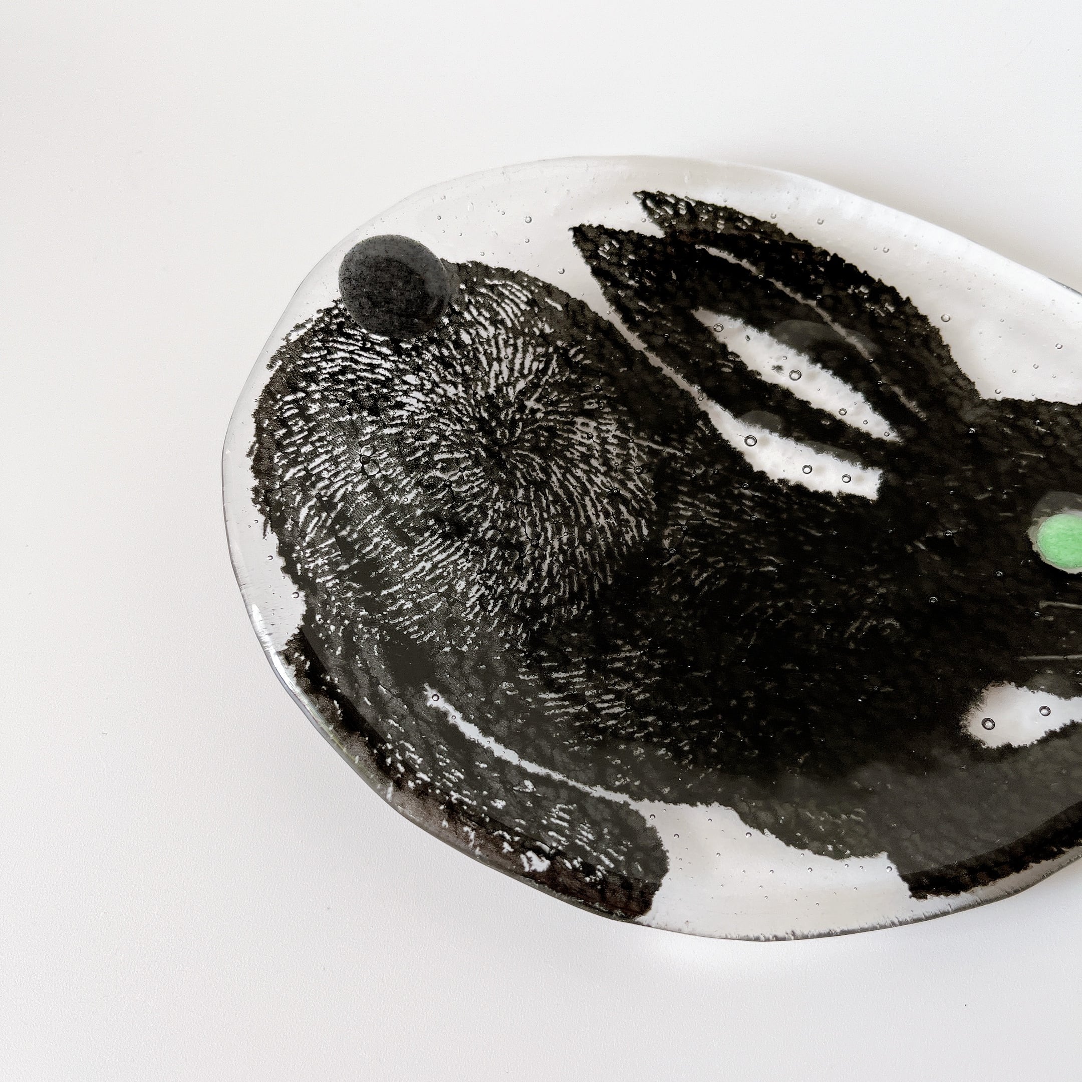 気泡や線、小さな突起や凹み、黒点・色ムラ・カスレ、ゆがみ等、ガラス作品の味としてお楽しみください。