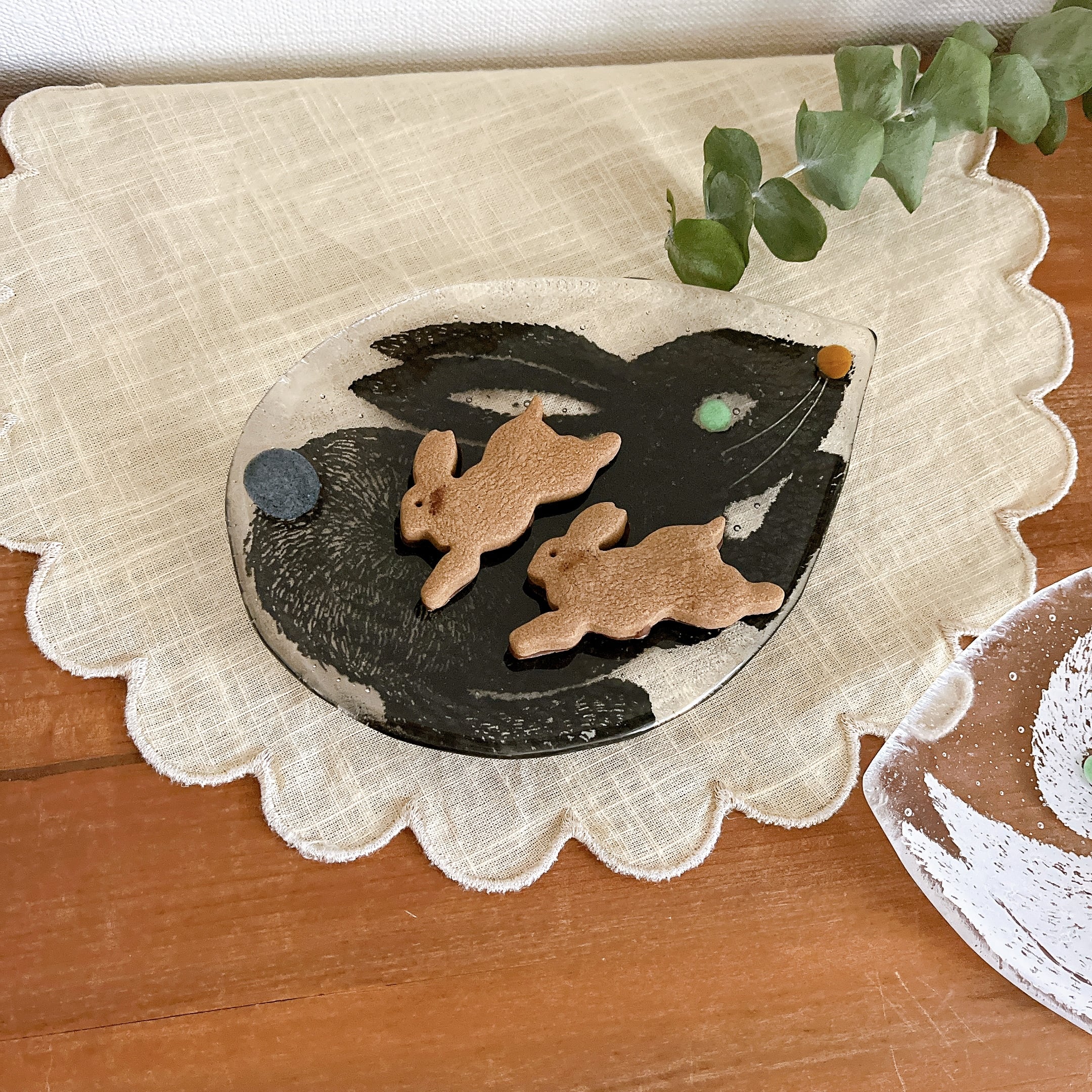 土井朋子|うさぎ皿・黒A