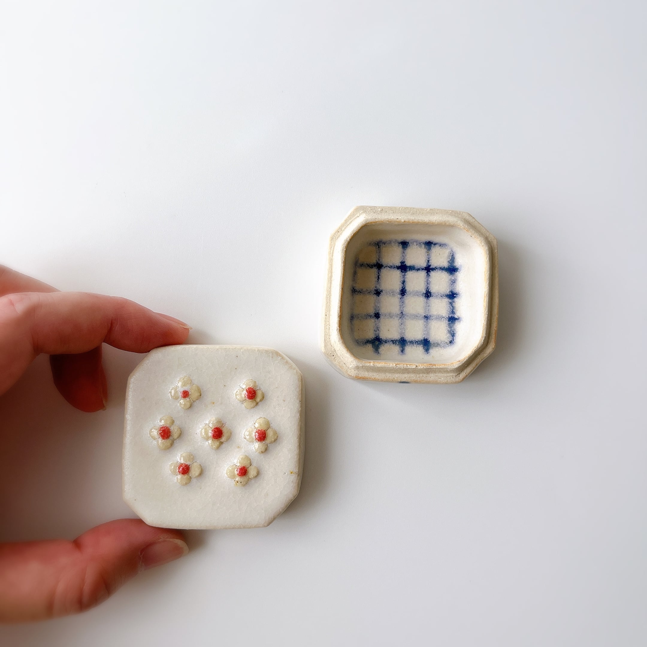 まるでヨーロッパのアンティークショップで見つけたような陶の小箱たち。