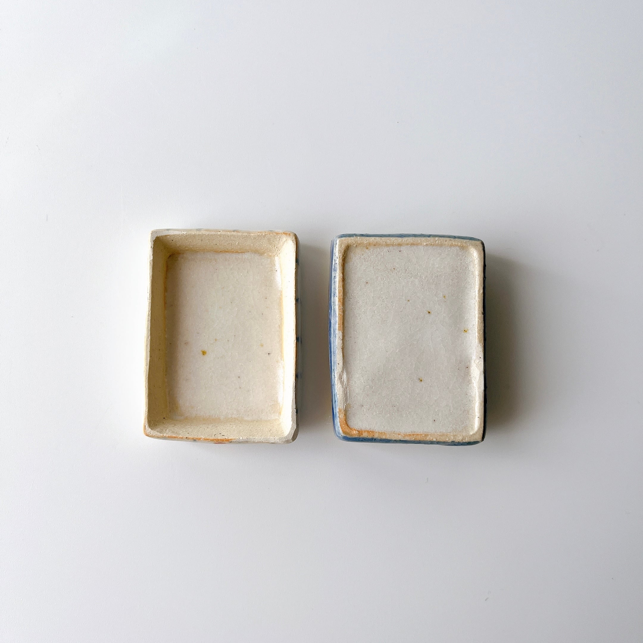 まるでヨーロッパのアンティークショップで見つけたような陶の小箱たち。