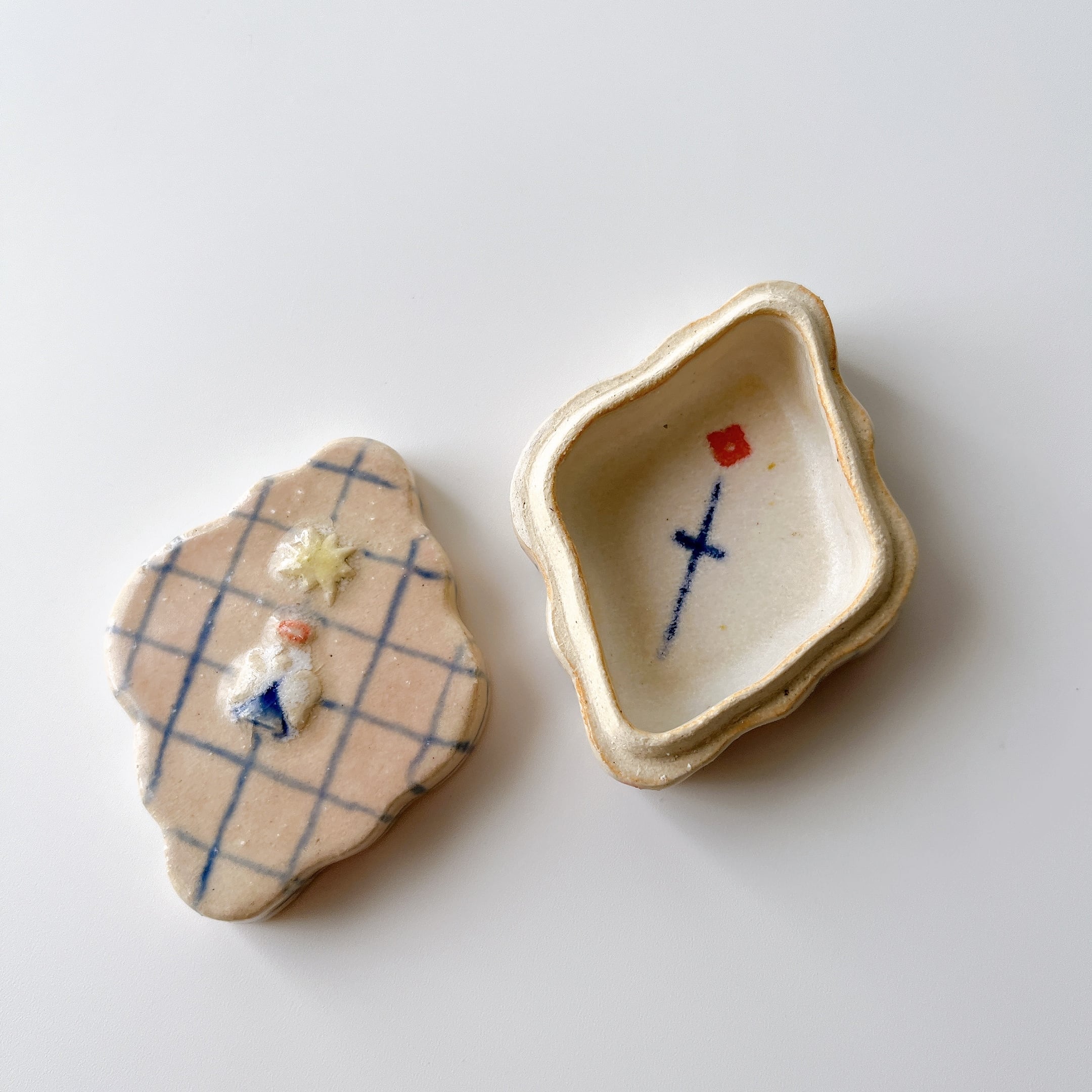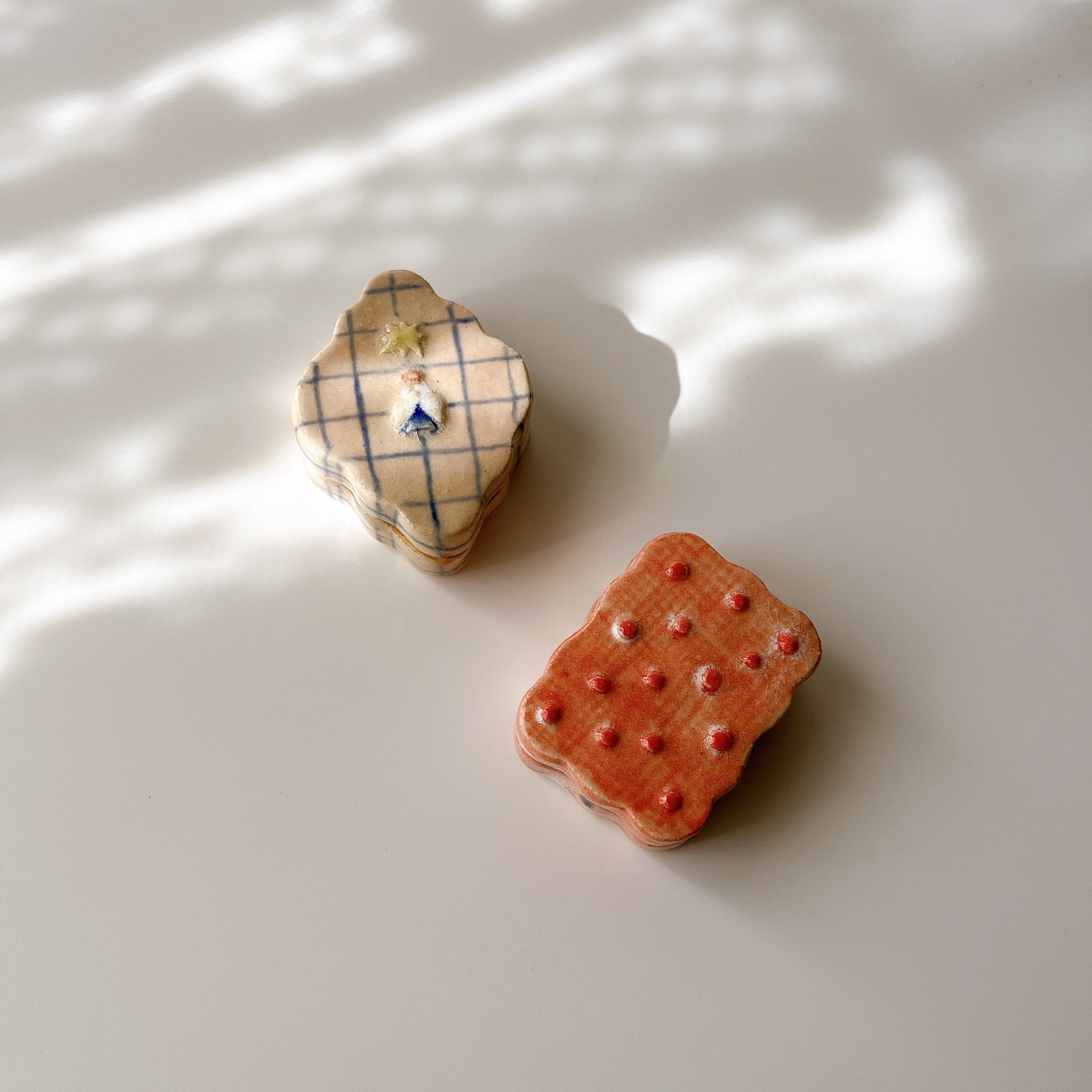 まるでヨーロッパのアンティークショップで見つけたような陶の小箱たち。