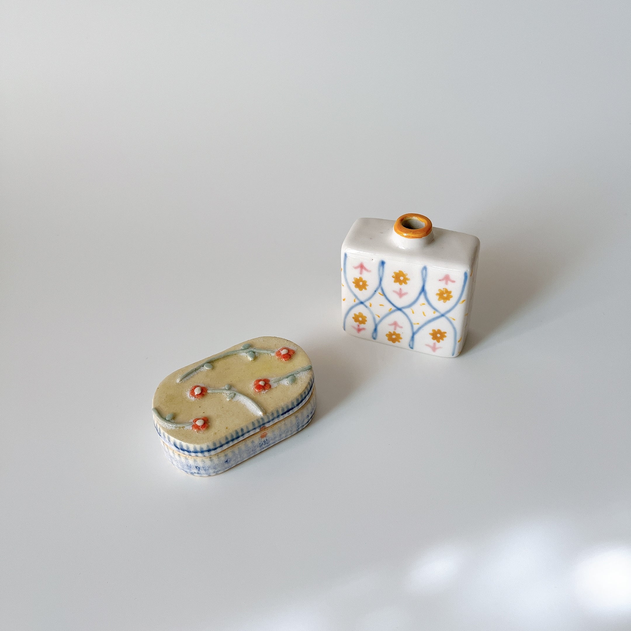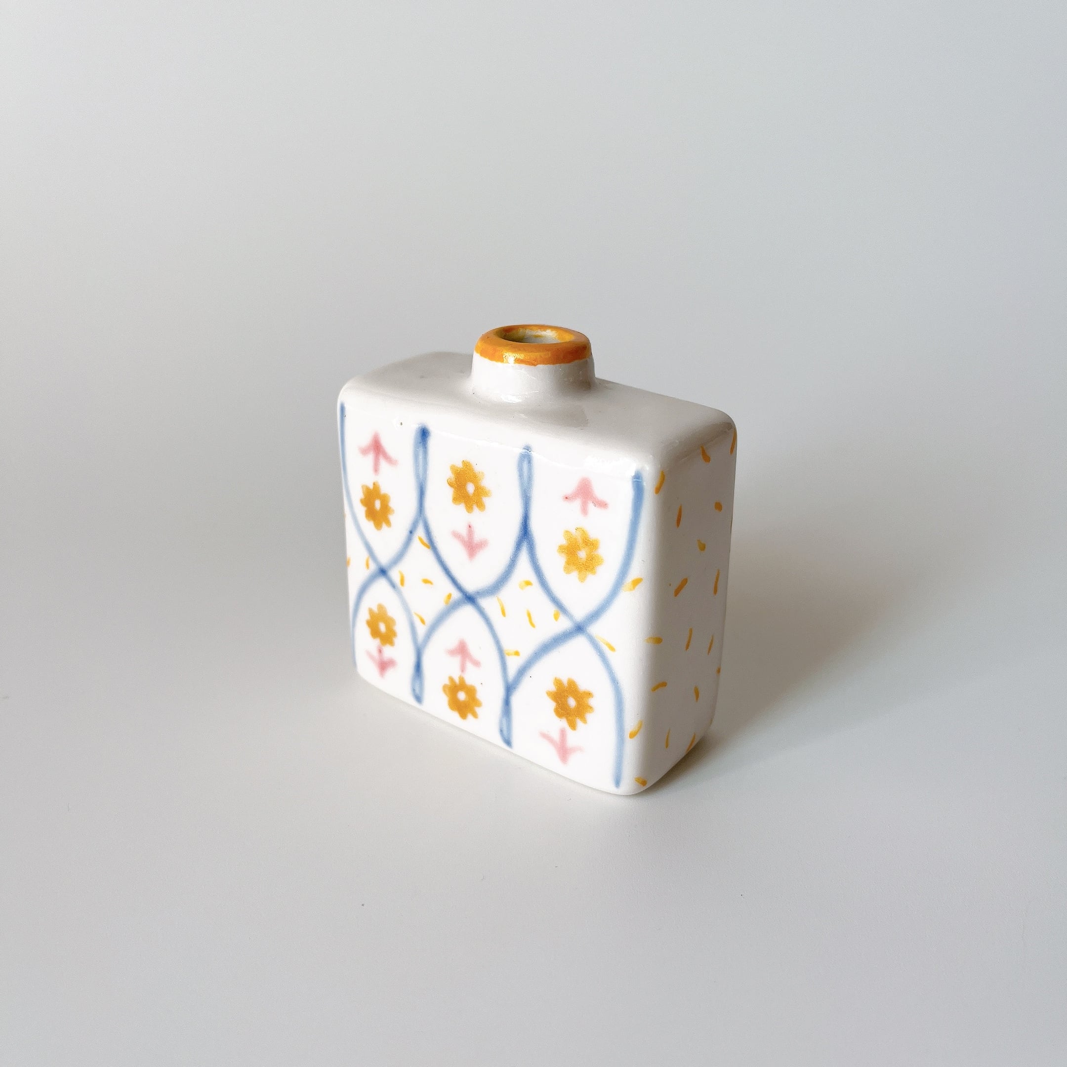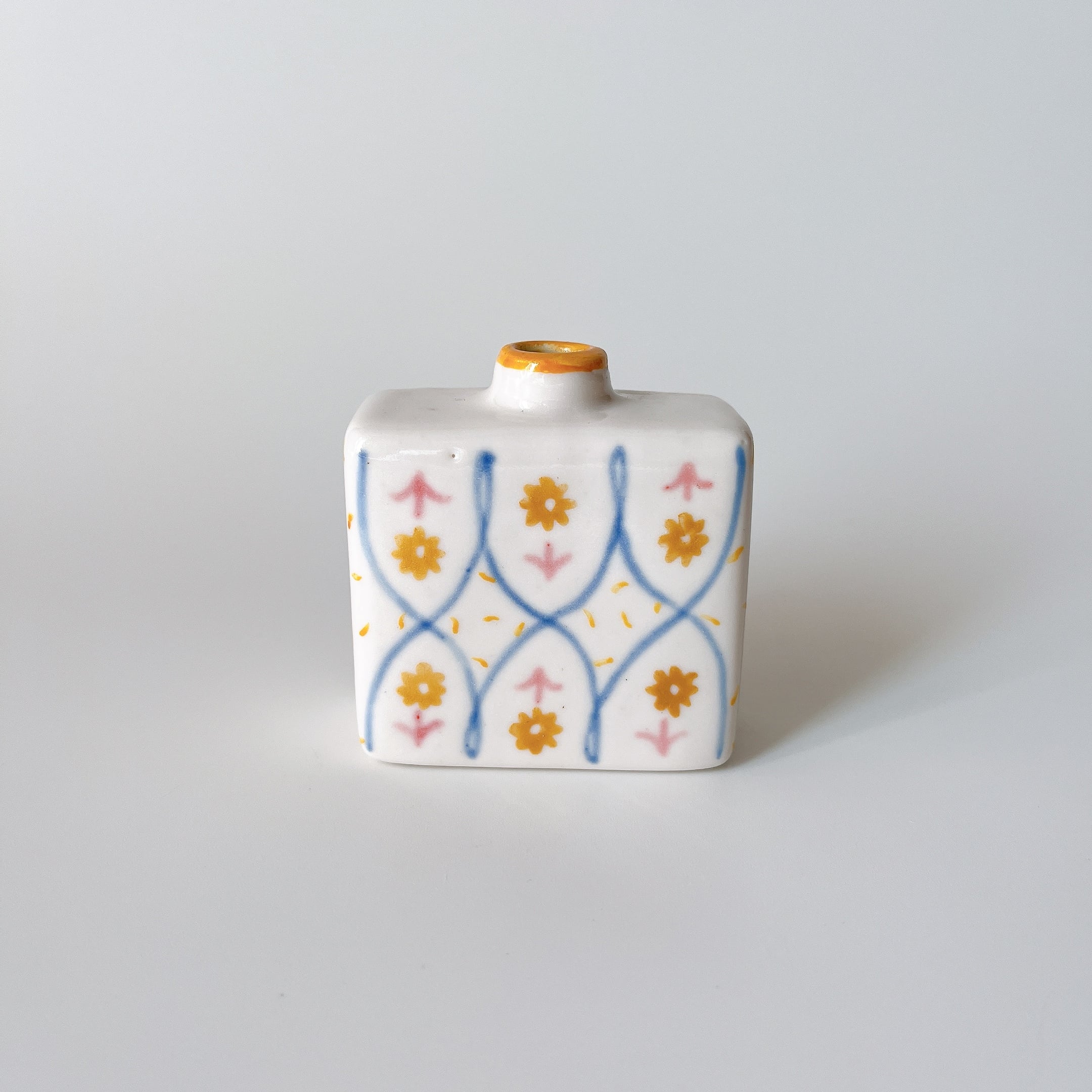 スクエア型にお花などのいろんな模様がリズミカルに施されています。