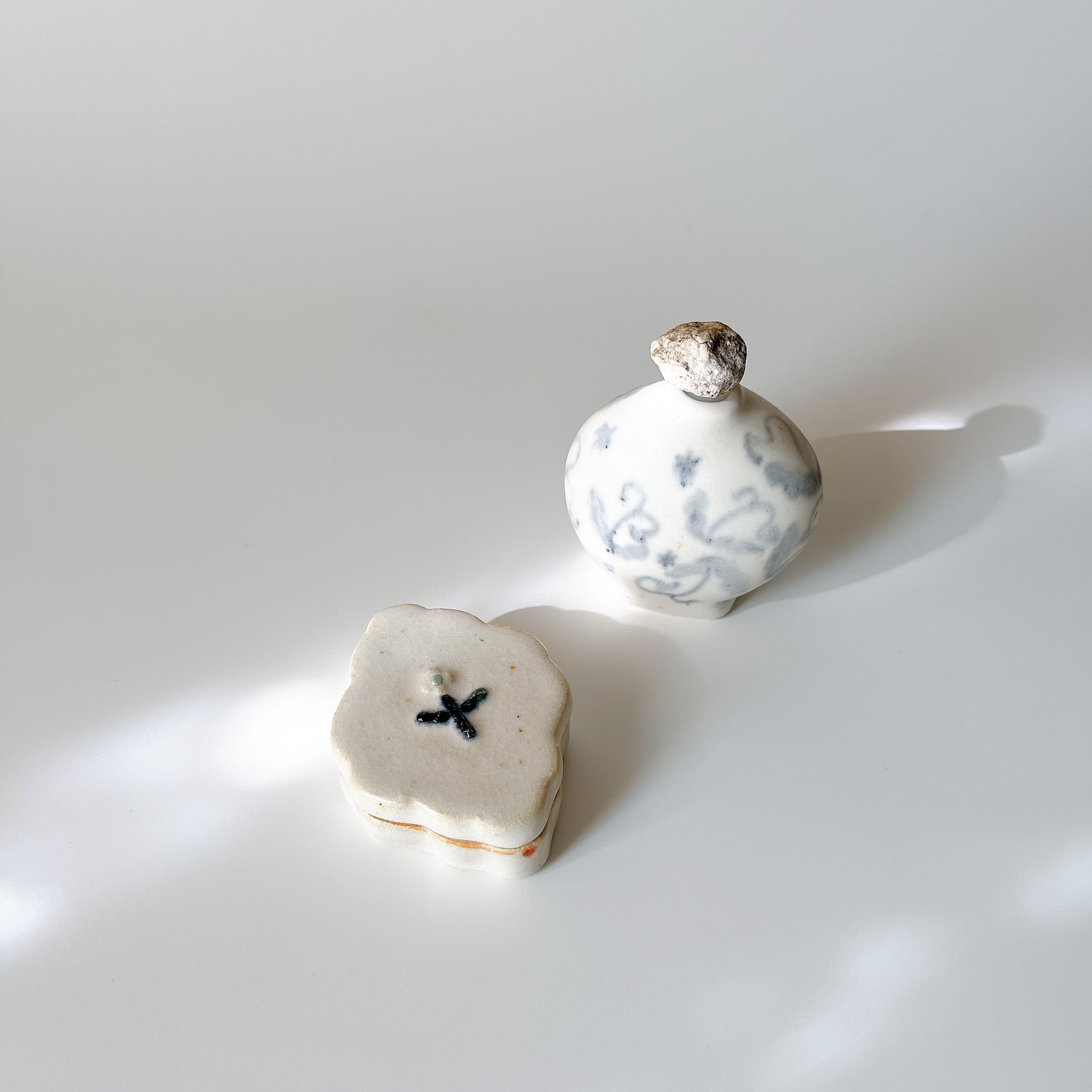 まるでヨーロッパのアンティークショップで見つけたような陶の小箱たち。
