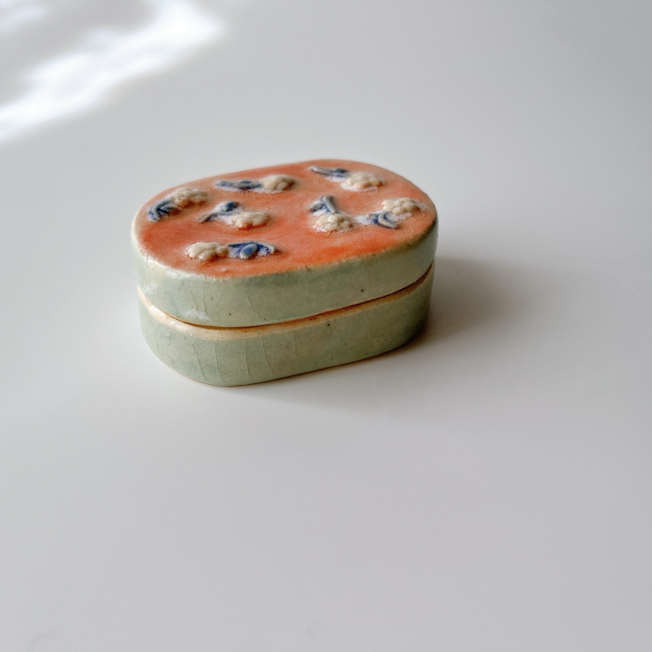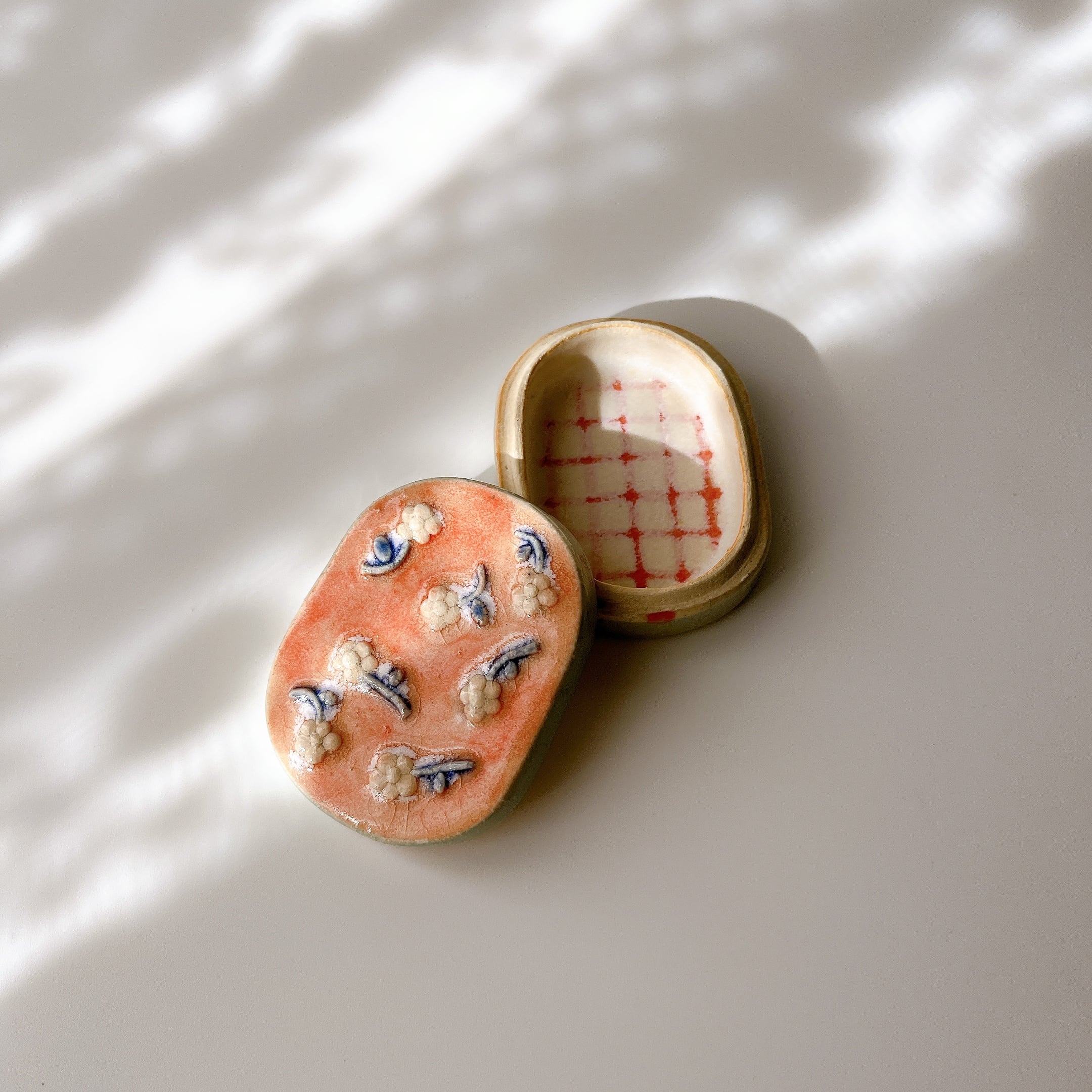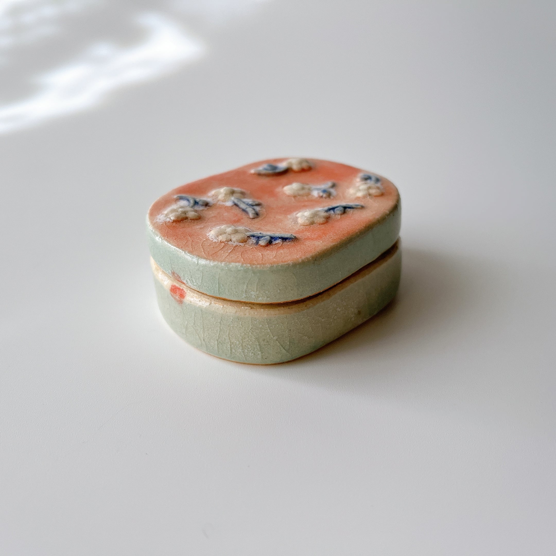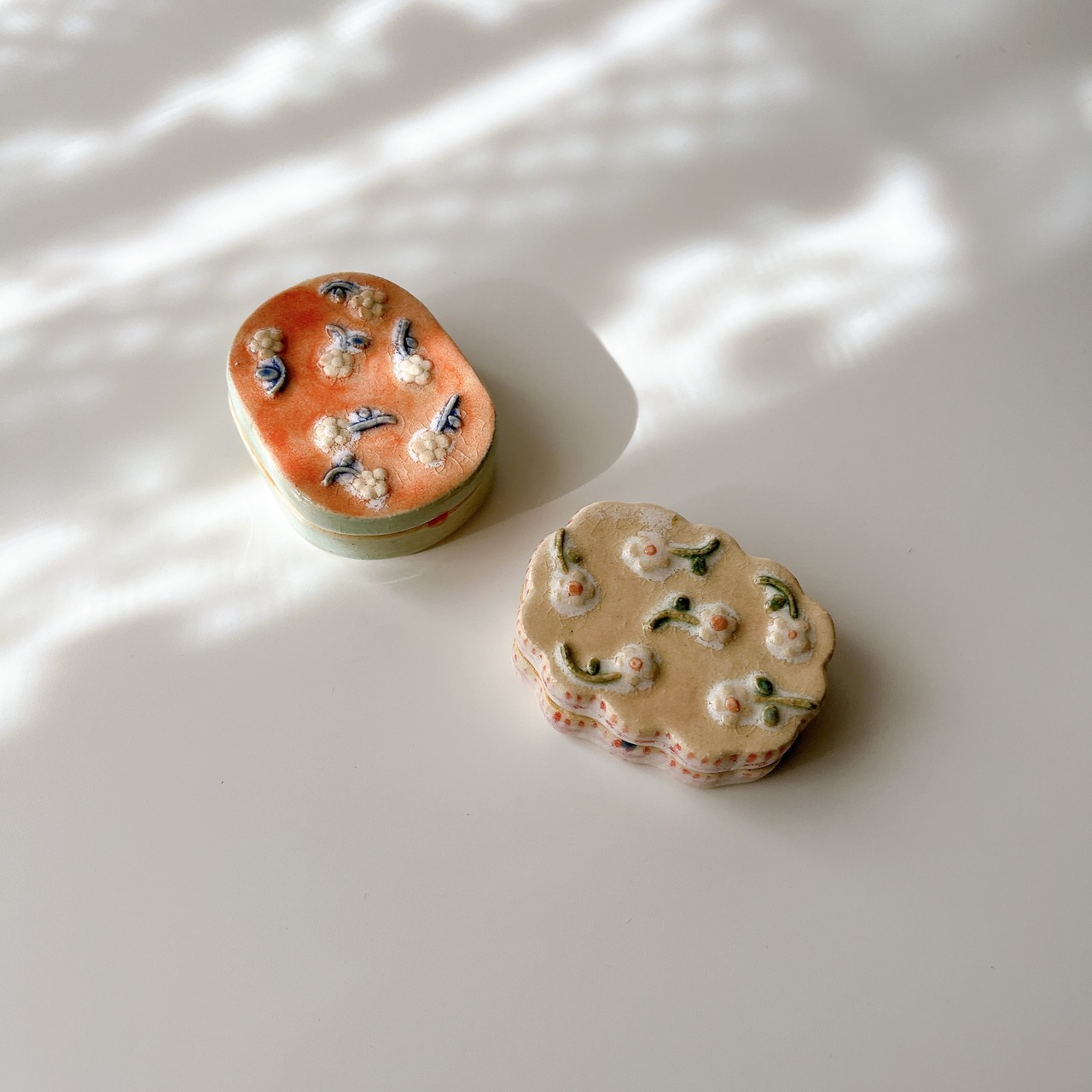 まぁるいかたちの小箱に咲いたぷっくりお花たち。