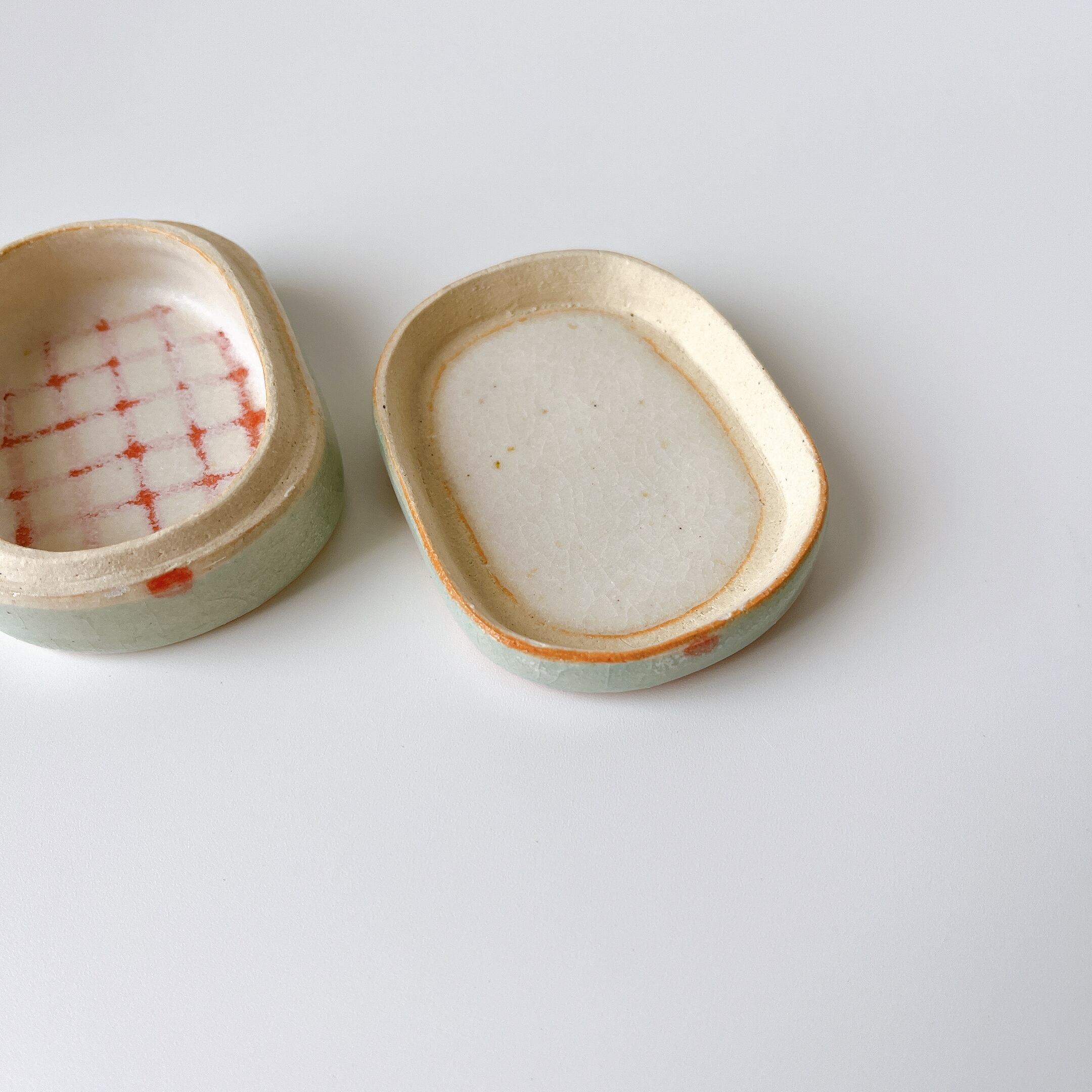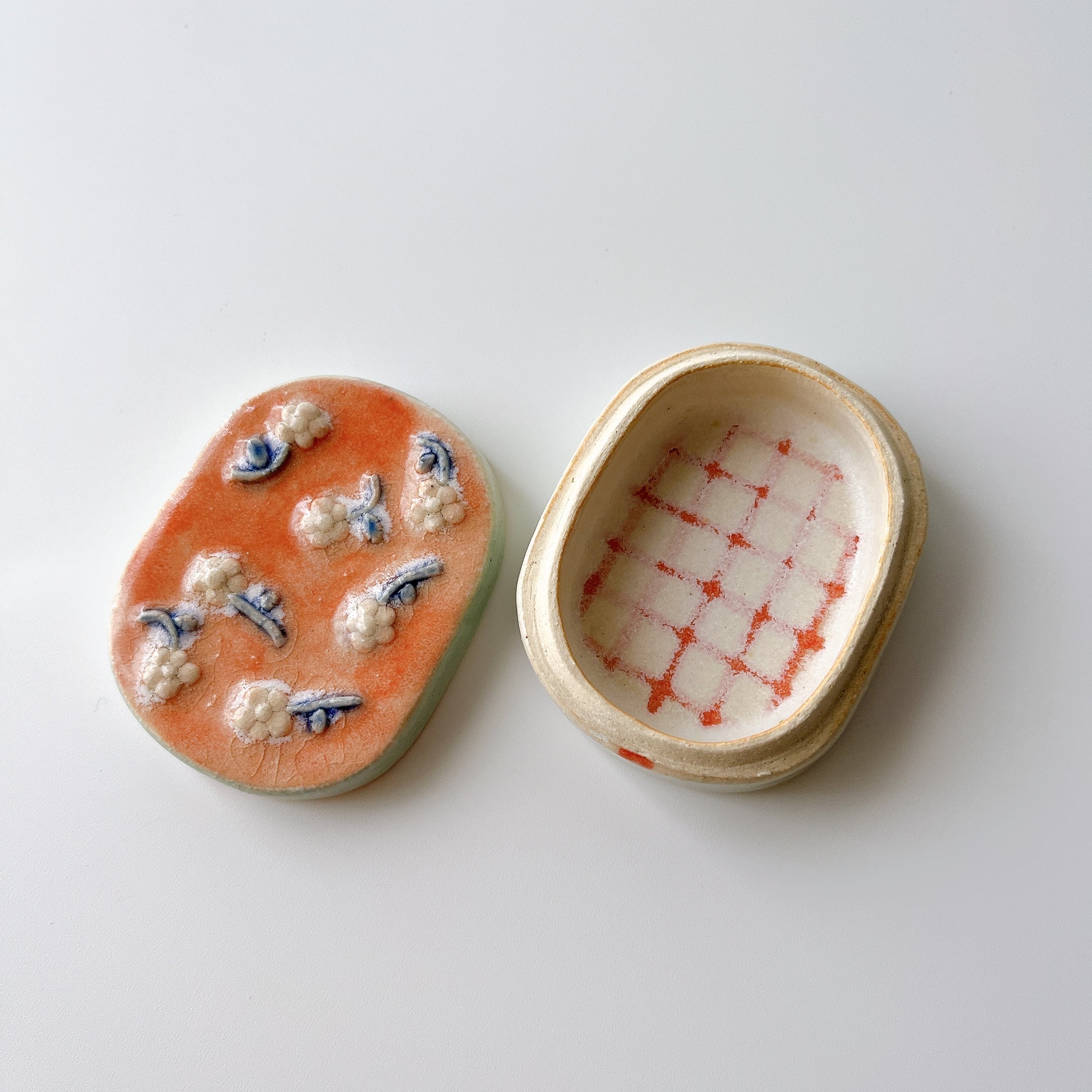 まるでヨーロッパのアンティークショップで見つけたような陶の小箱たち。