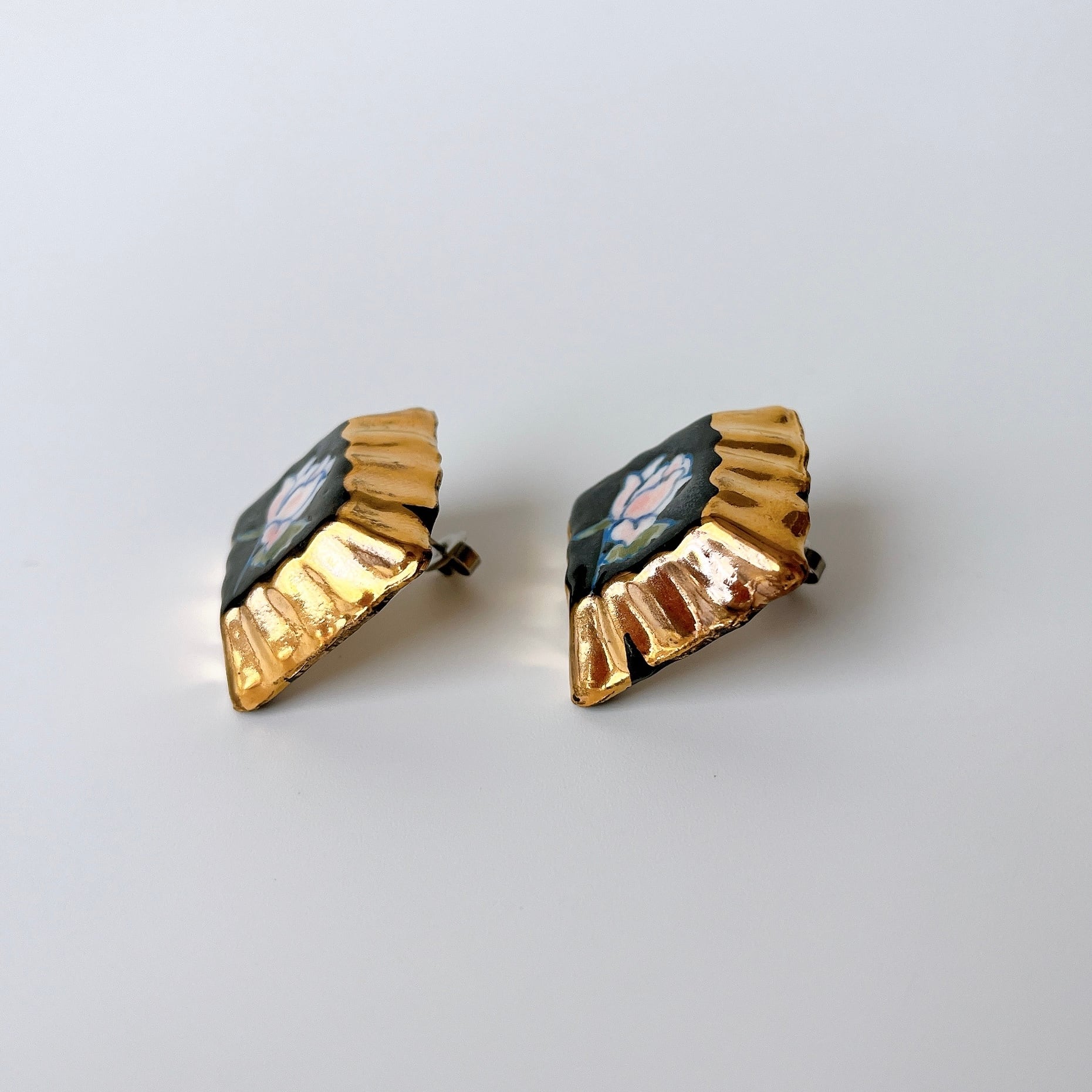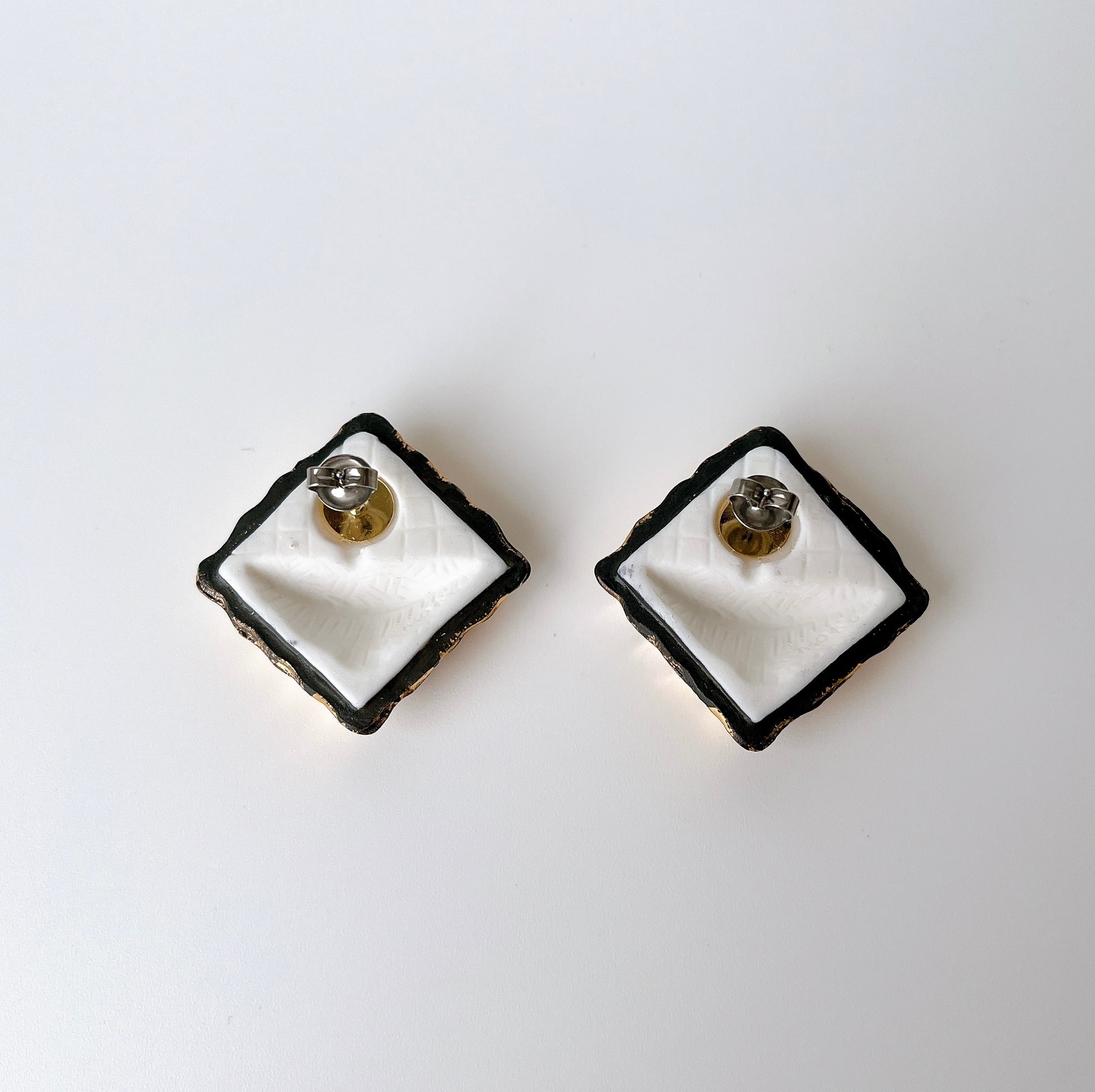 まるで高級なチョコレートみたいな形の大ぶりの耳飾り。箱に入った宝石みたいに並ぶチョコレートにわくわくする様なそんな気持ちになります。