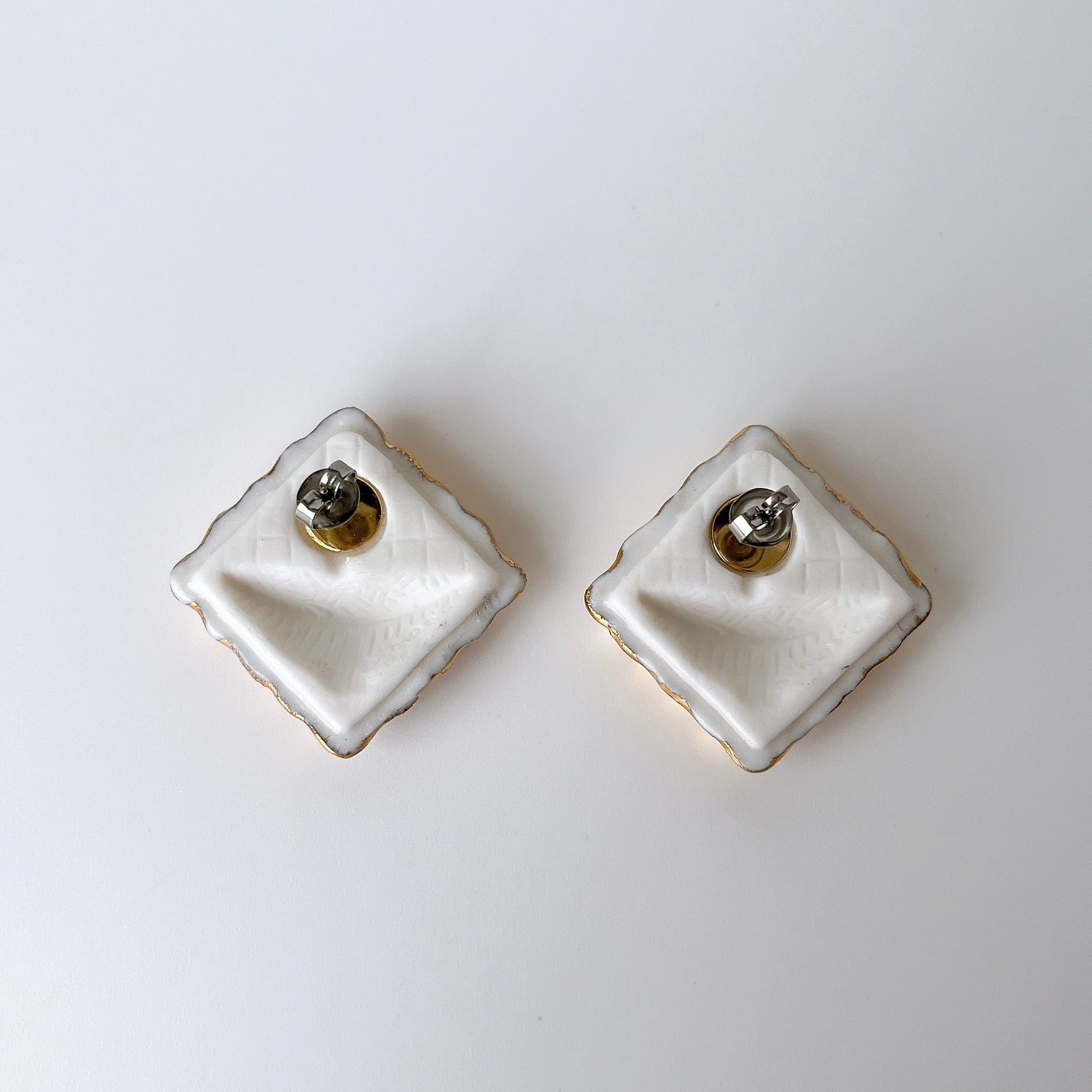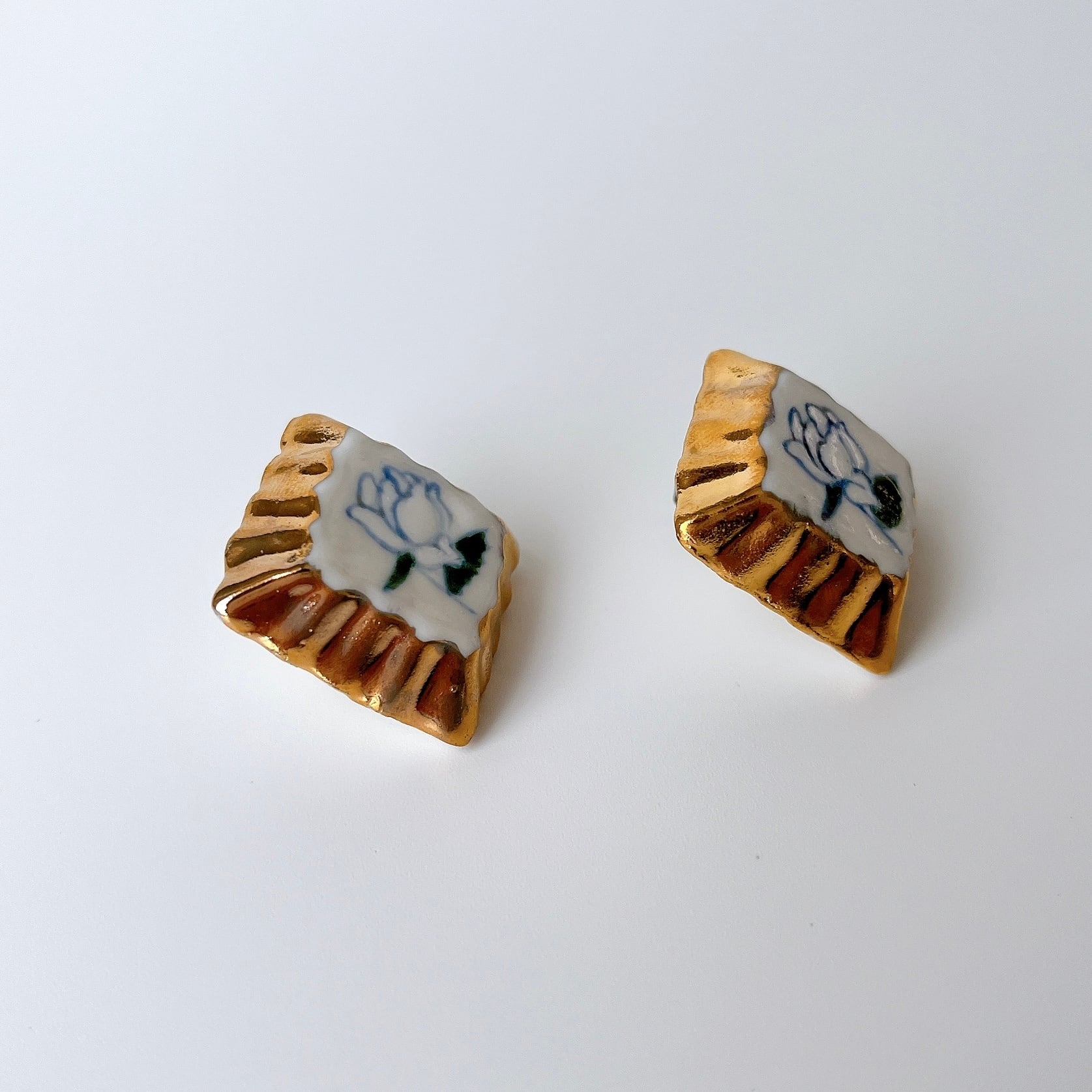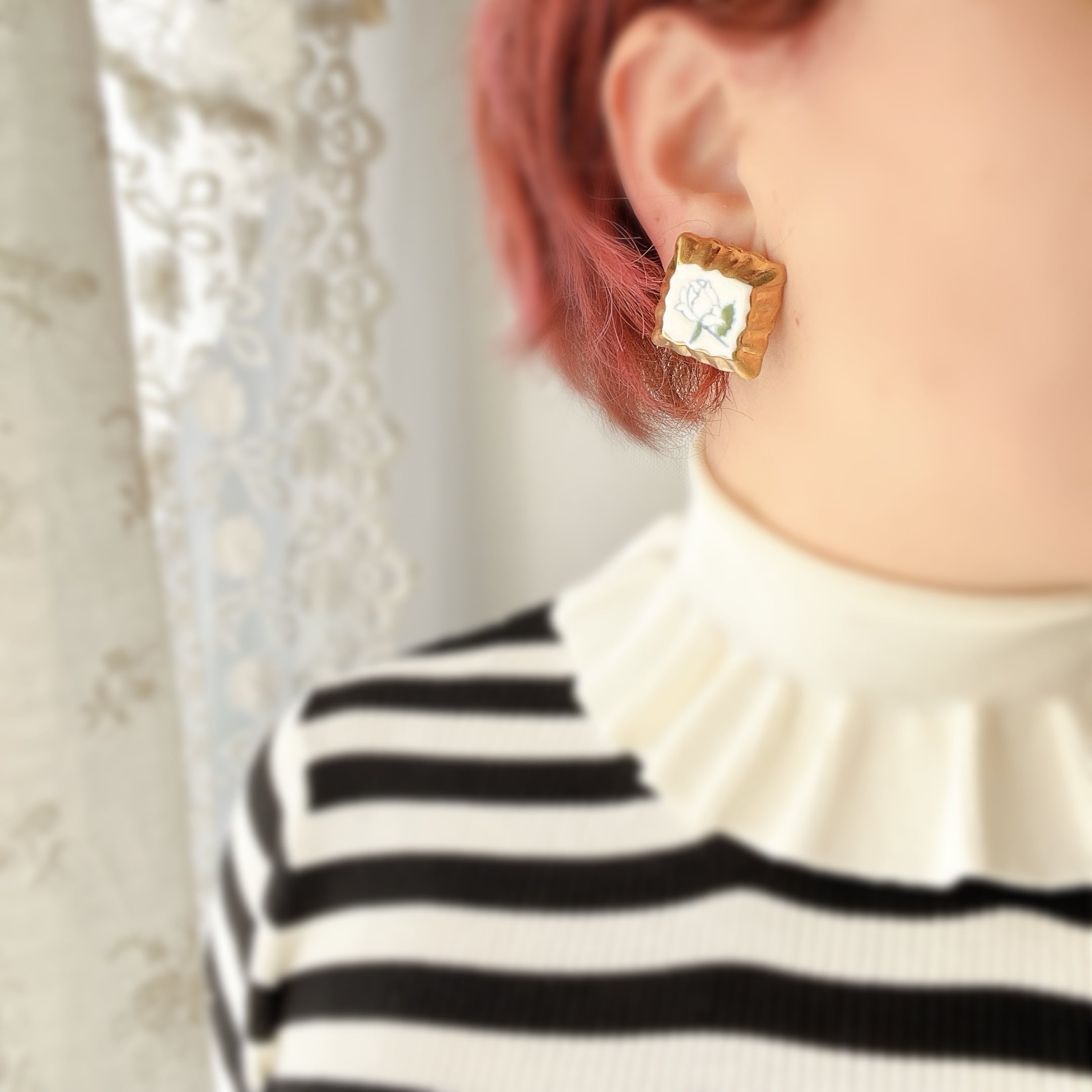 まるで高級なチョコレートみたいな形の大ぶりの耳飾り。箱に入った宝石みたいに並ぶチョコレートにわくわくする様なそんな気持ちになります。