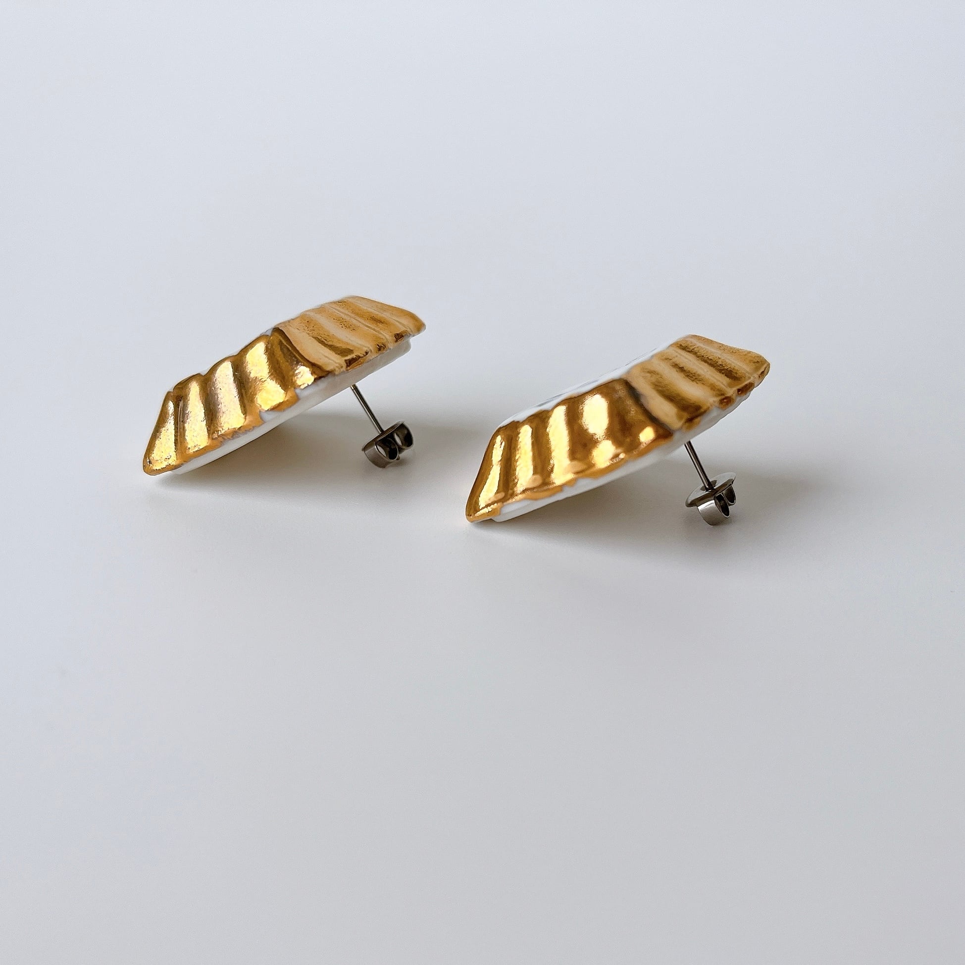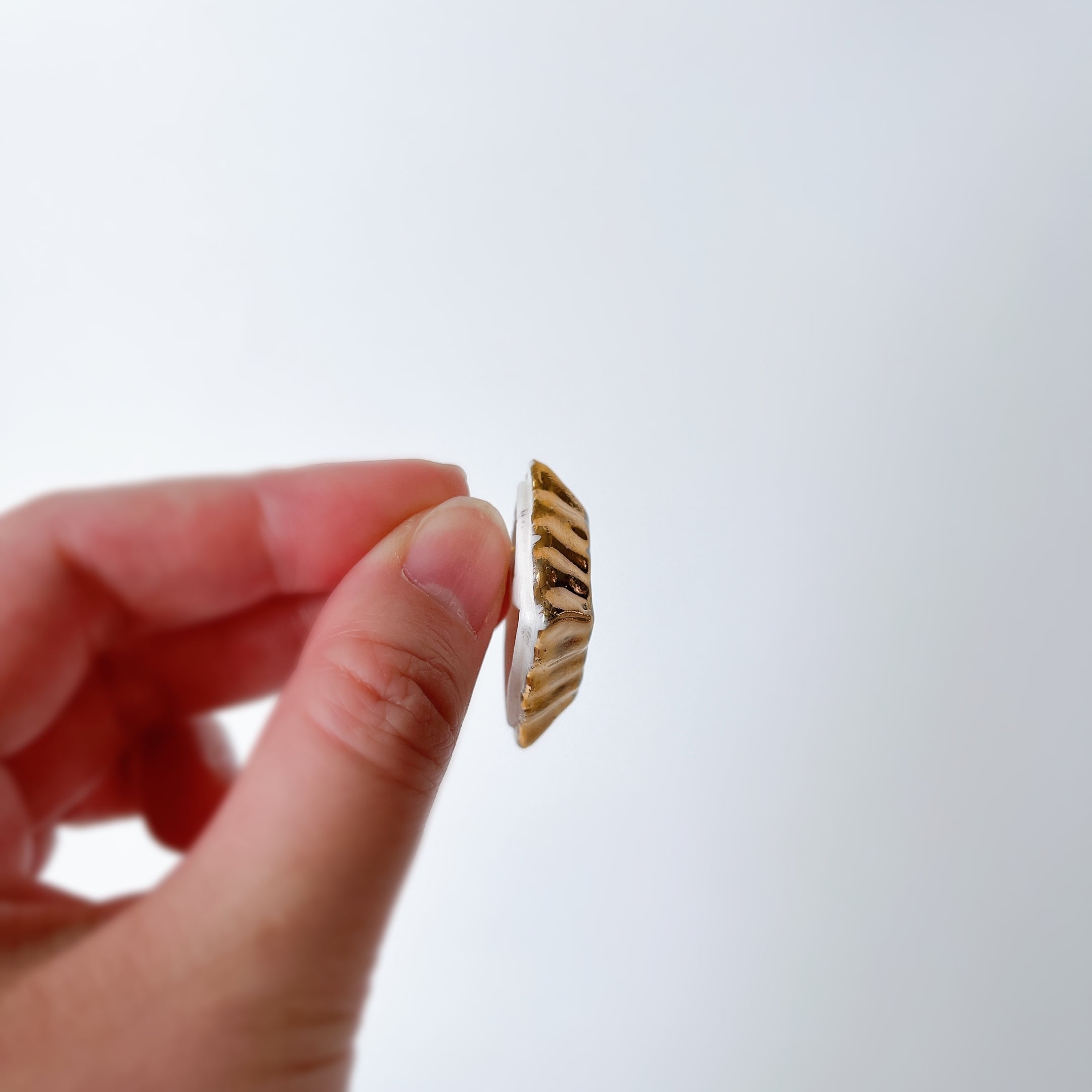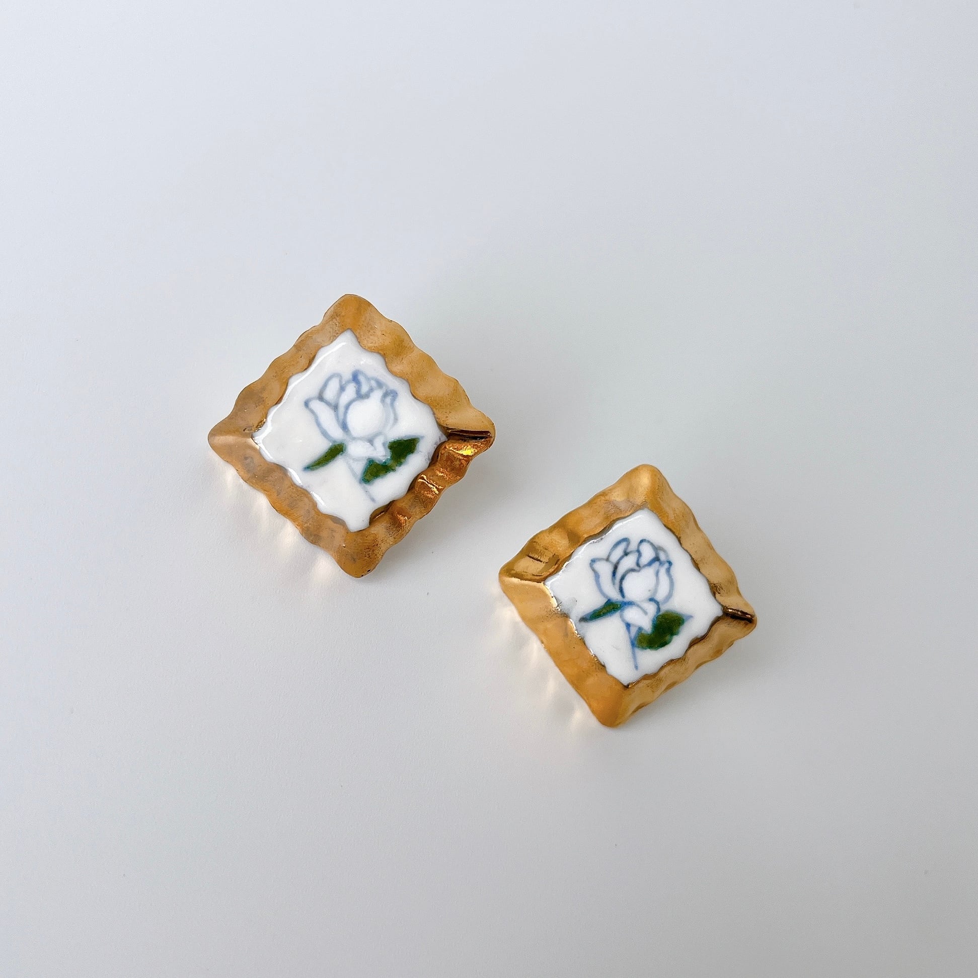 まるで高級なチョコレートみたいな形の大ぶりの耳飾り。箱に入った宝石みたいに並ぶチョコレートにわくわくする様なそんな気持ちになります。