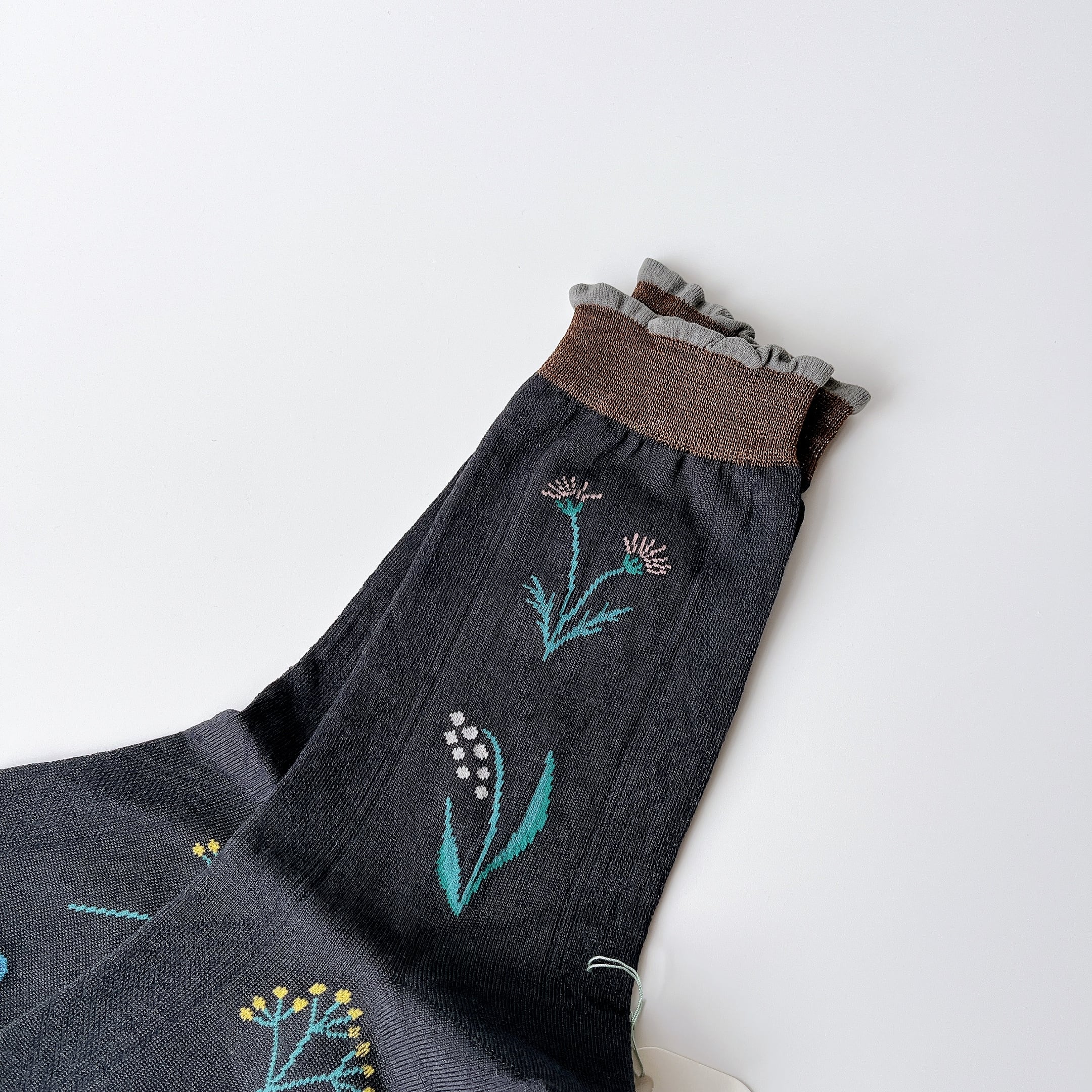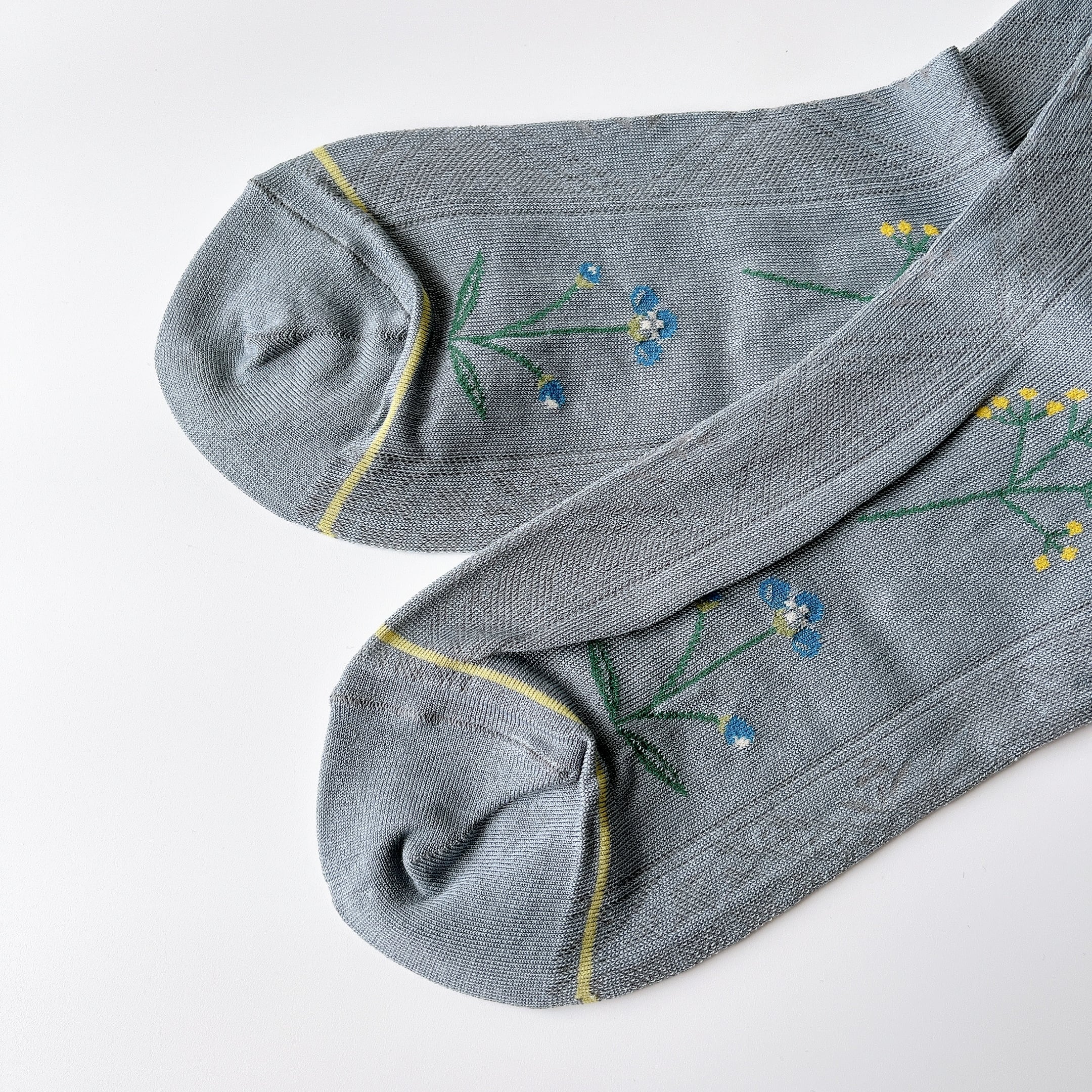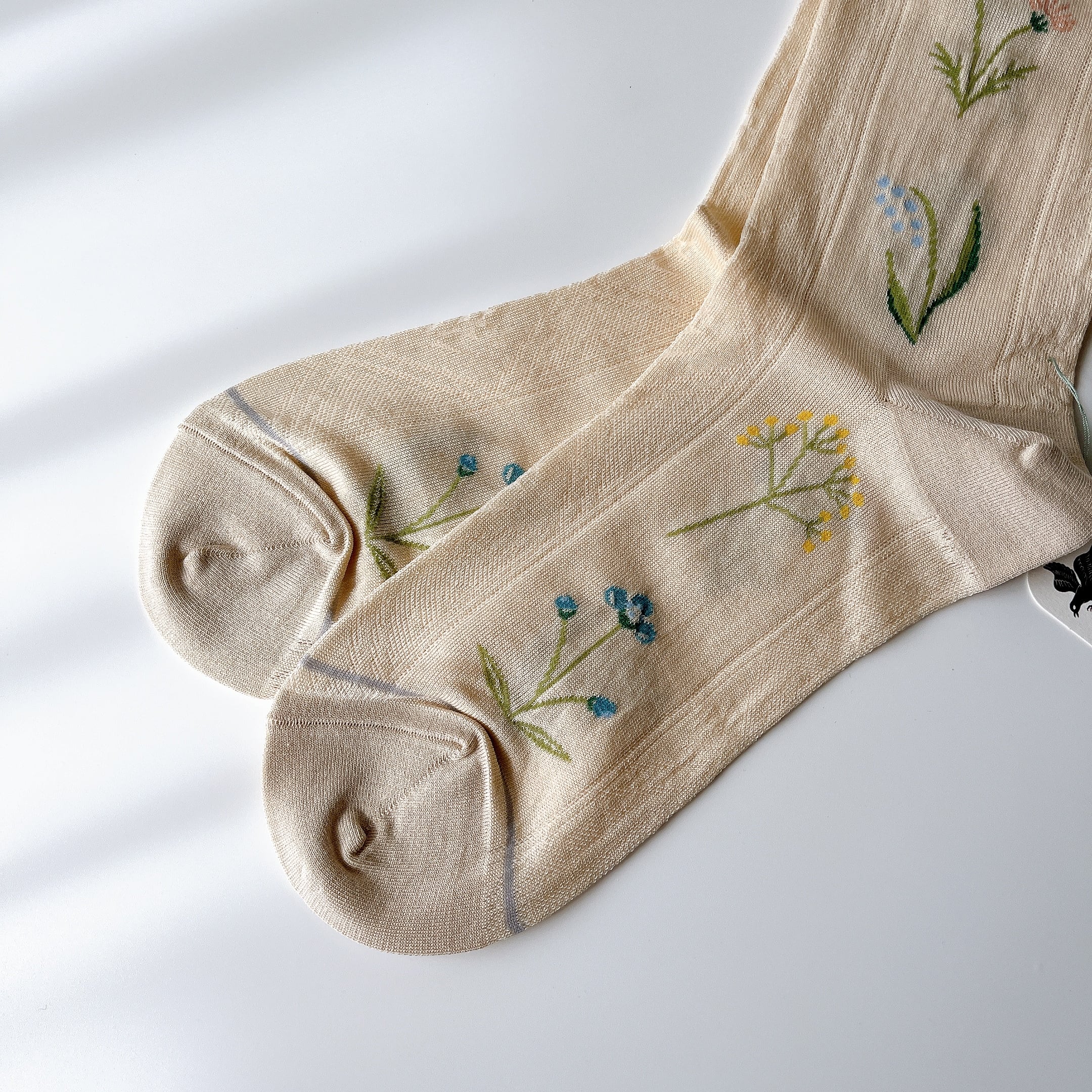 「春」と名付けられた、ヴィンテージのレースをイメージしてデザインされたソックス。
