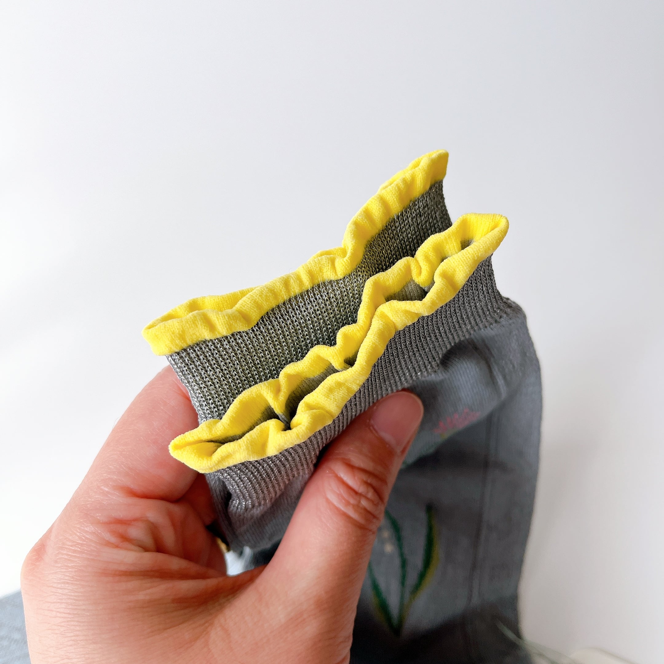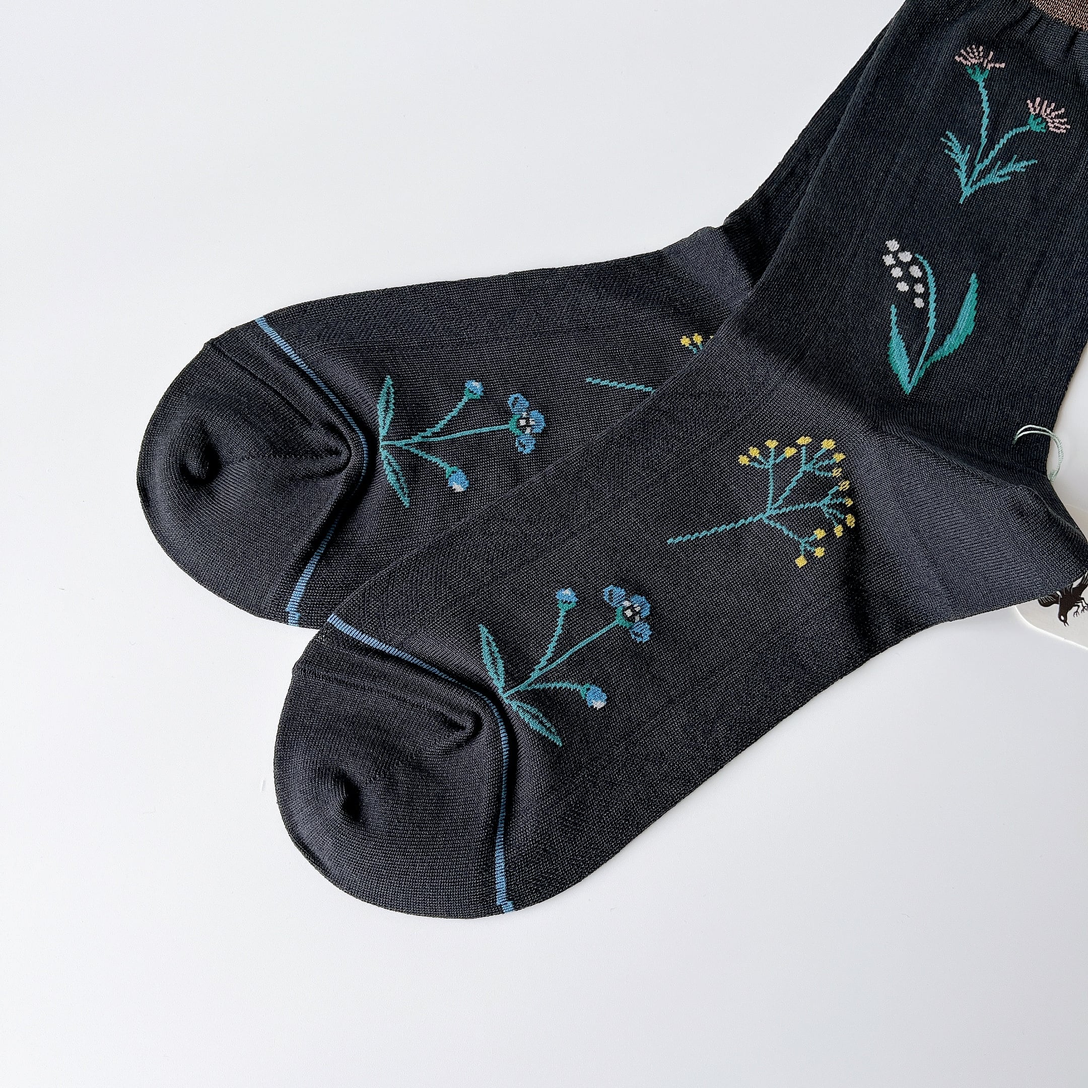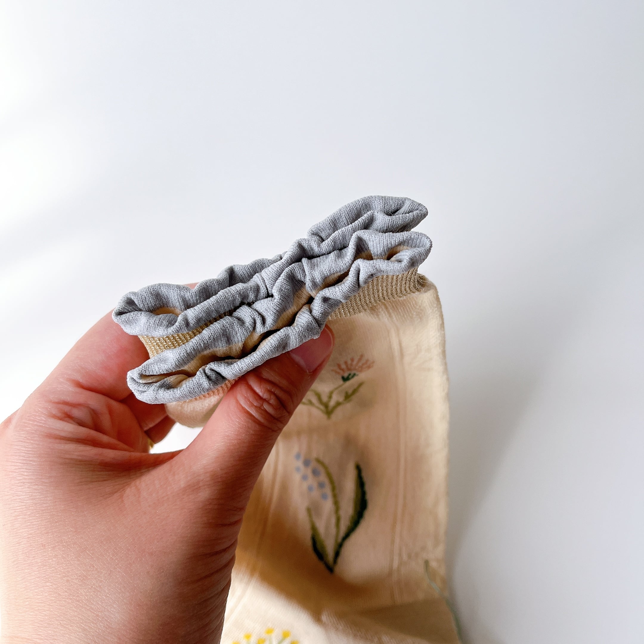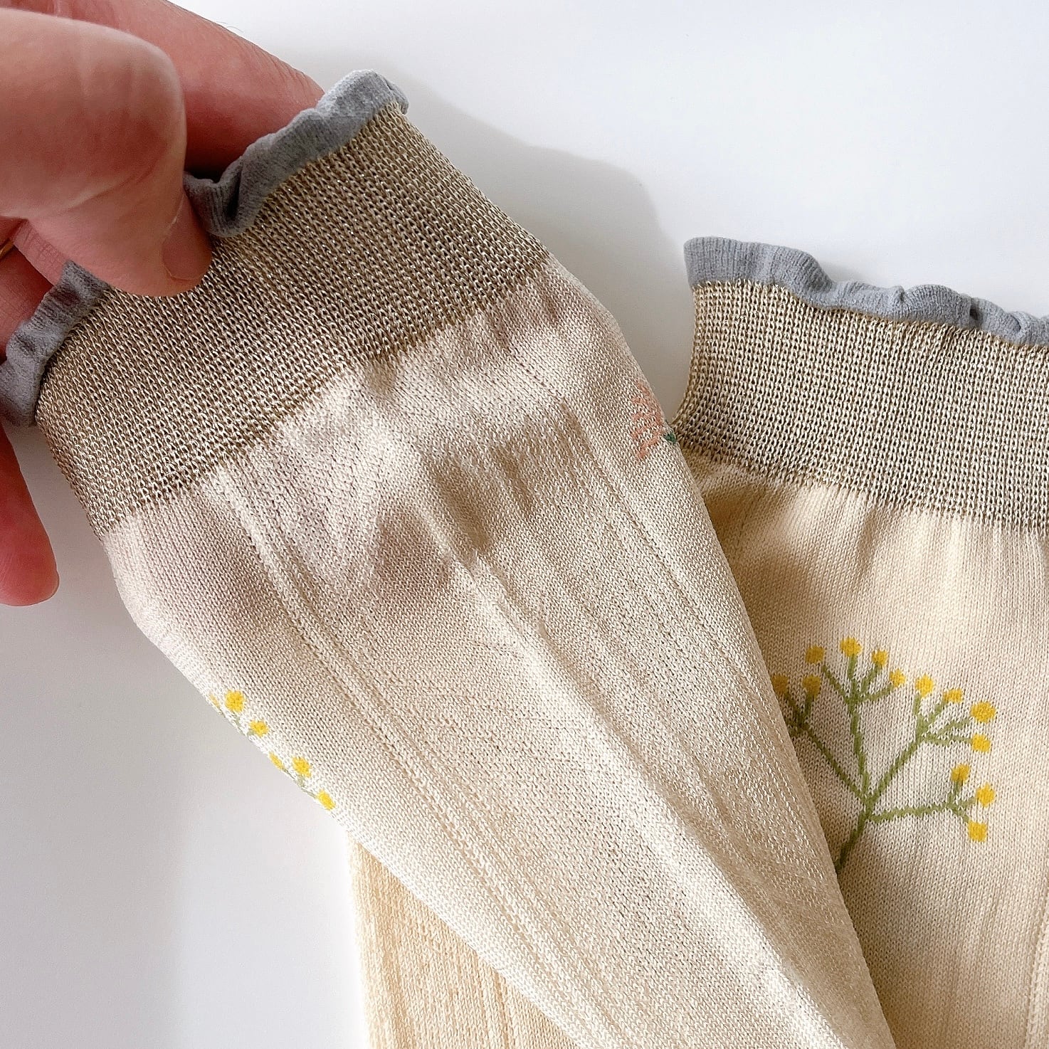 「春」と名付けられた、ヴィンテージのレースをイメージしてデザインされたソックス。