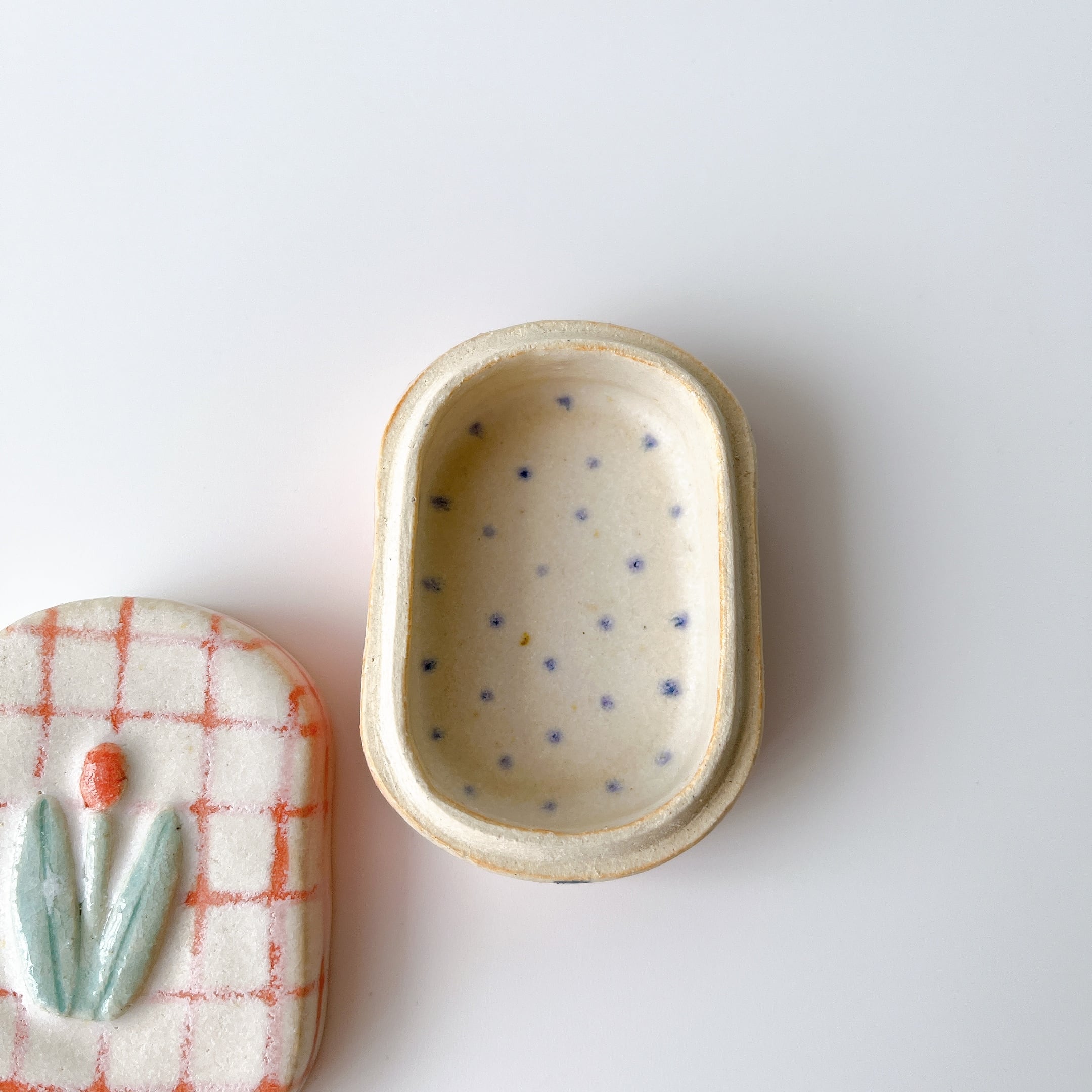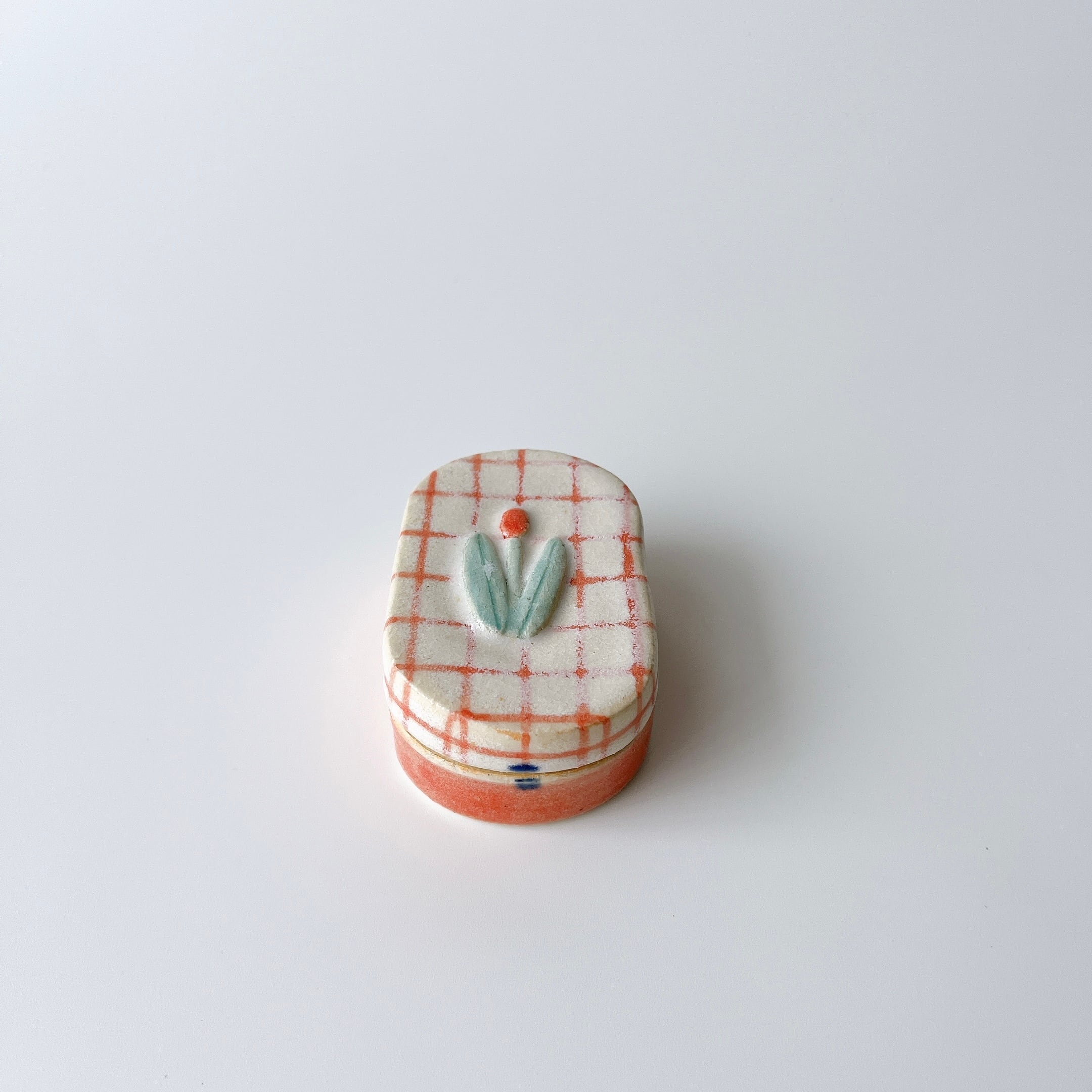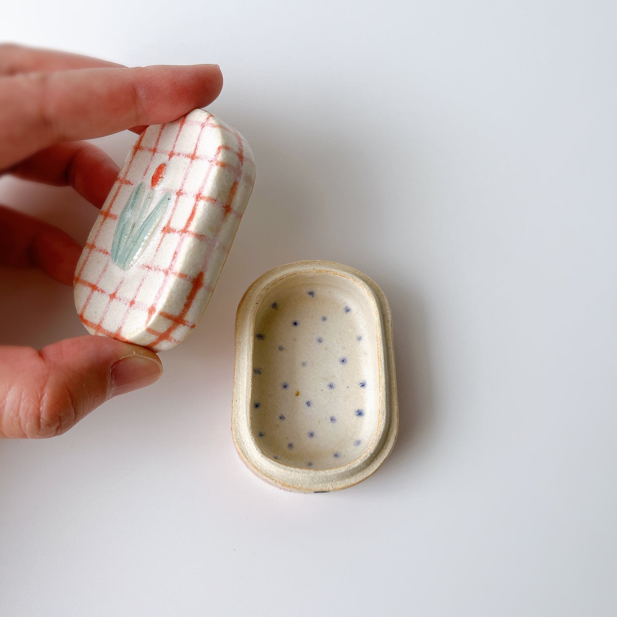 ぷっくりチューリップのお花が可愛い陶の小箱。