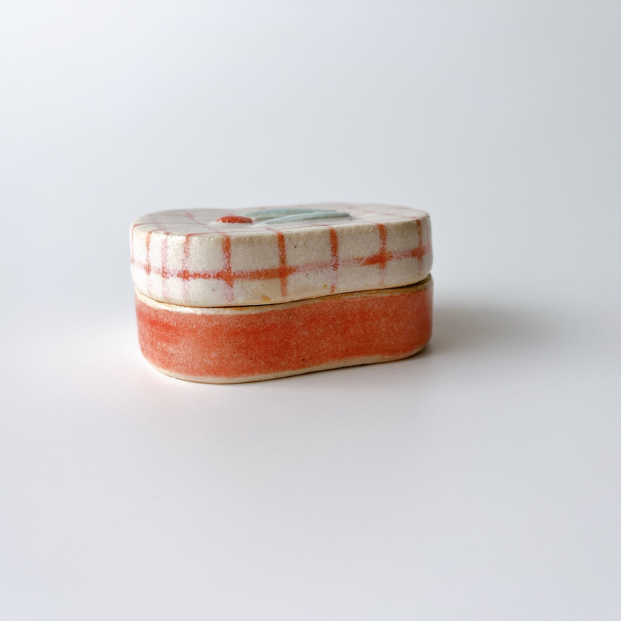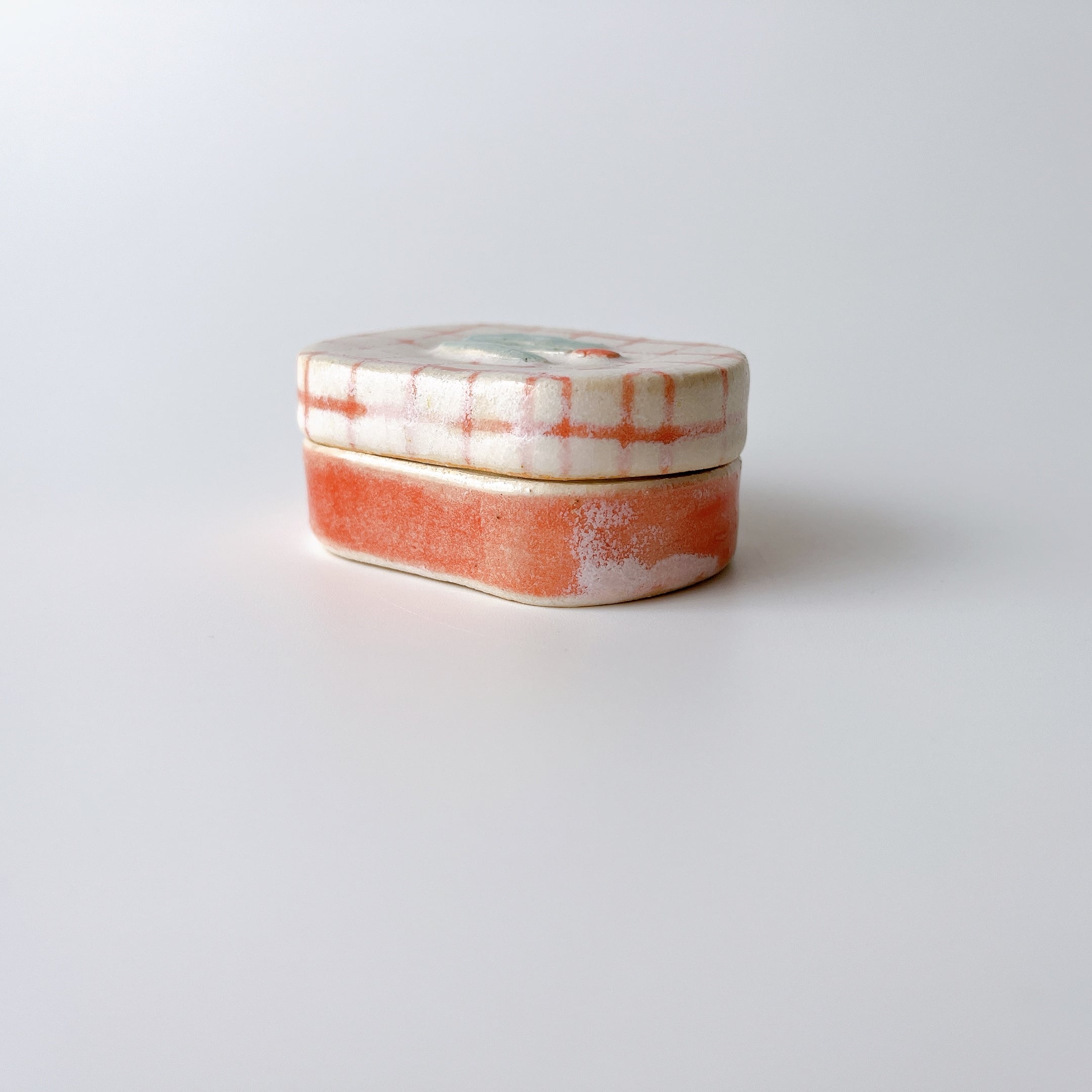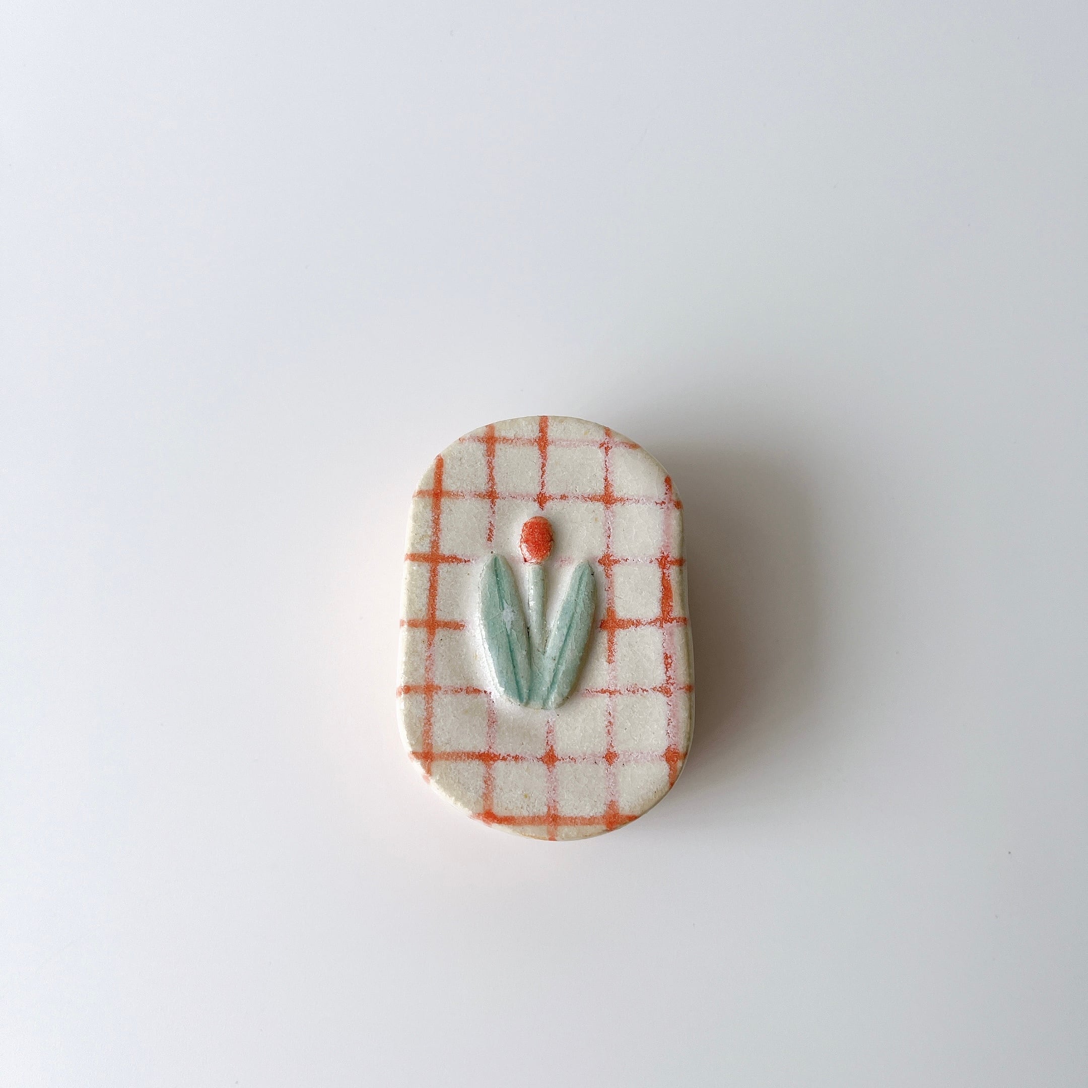 ぷっくりチューリップのお花が可愛い陶の小箱。
