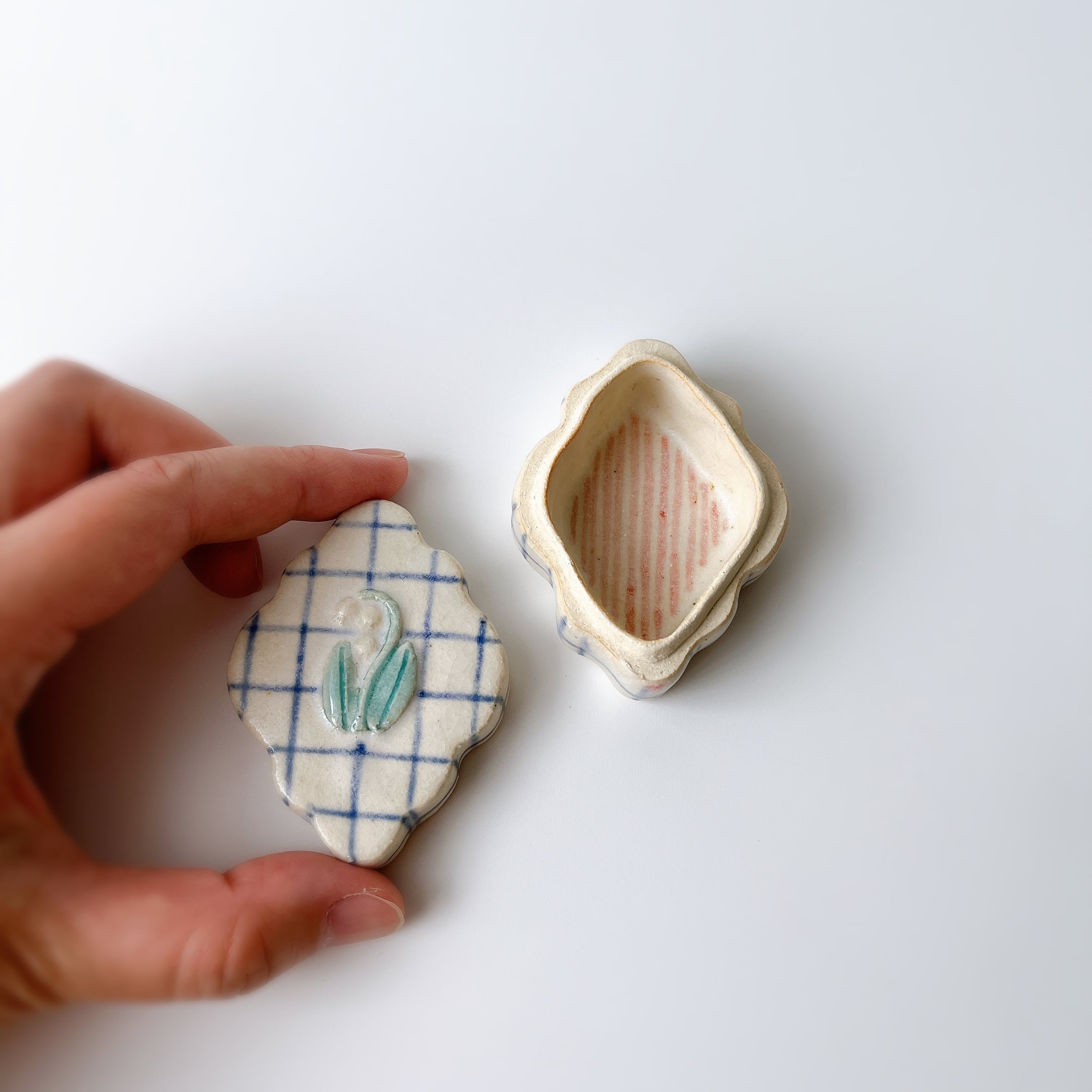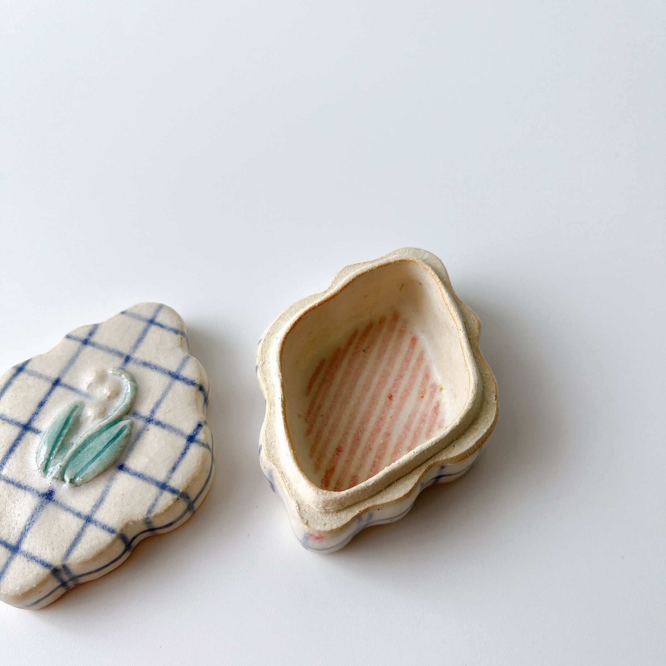 ぷっくりすずらんに、もくもくダイヤ形が可愛い陶の小箱。