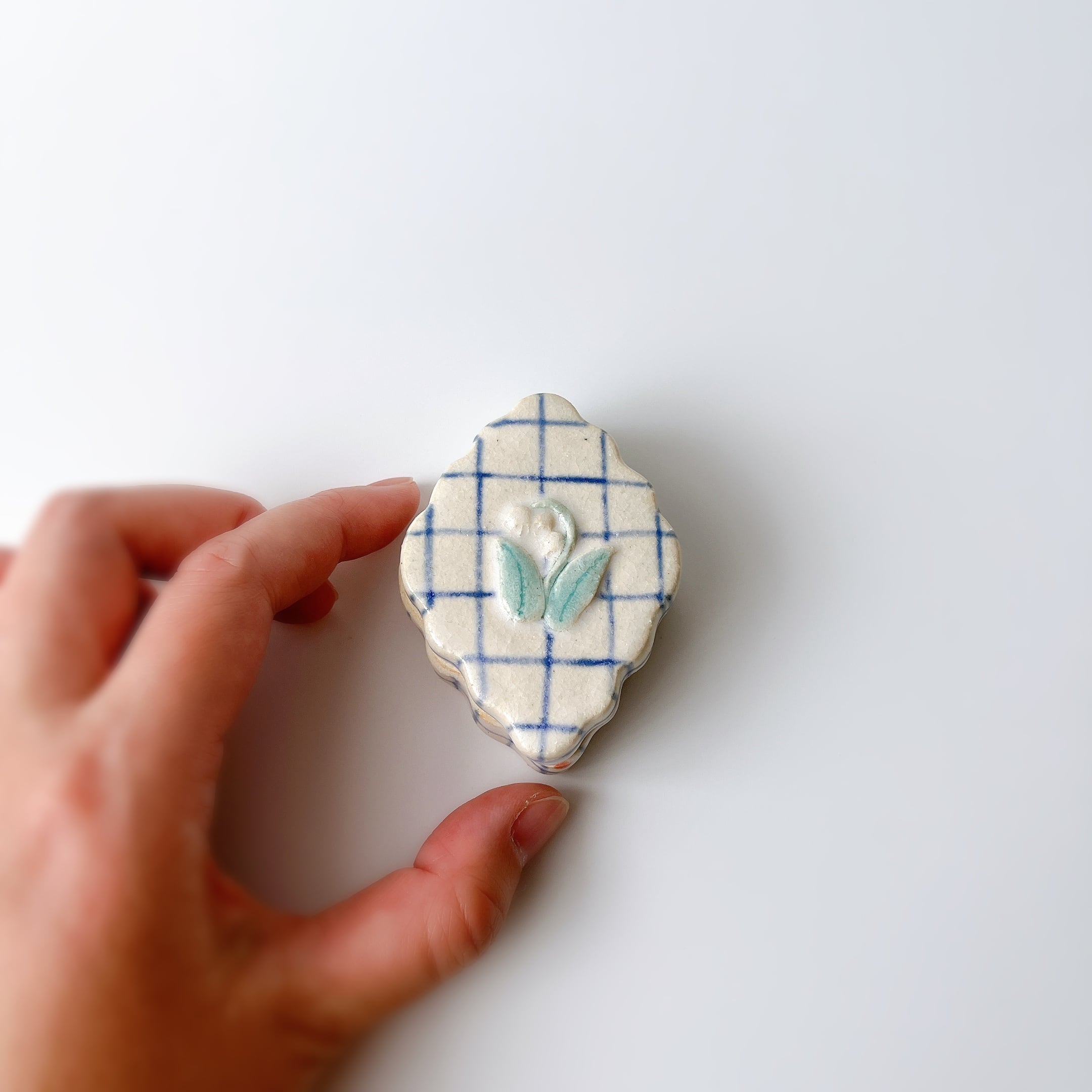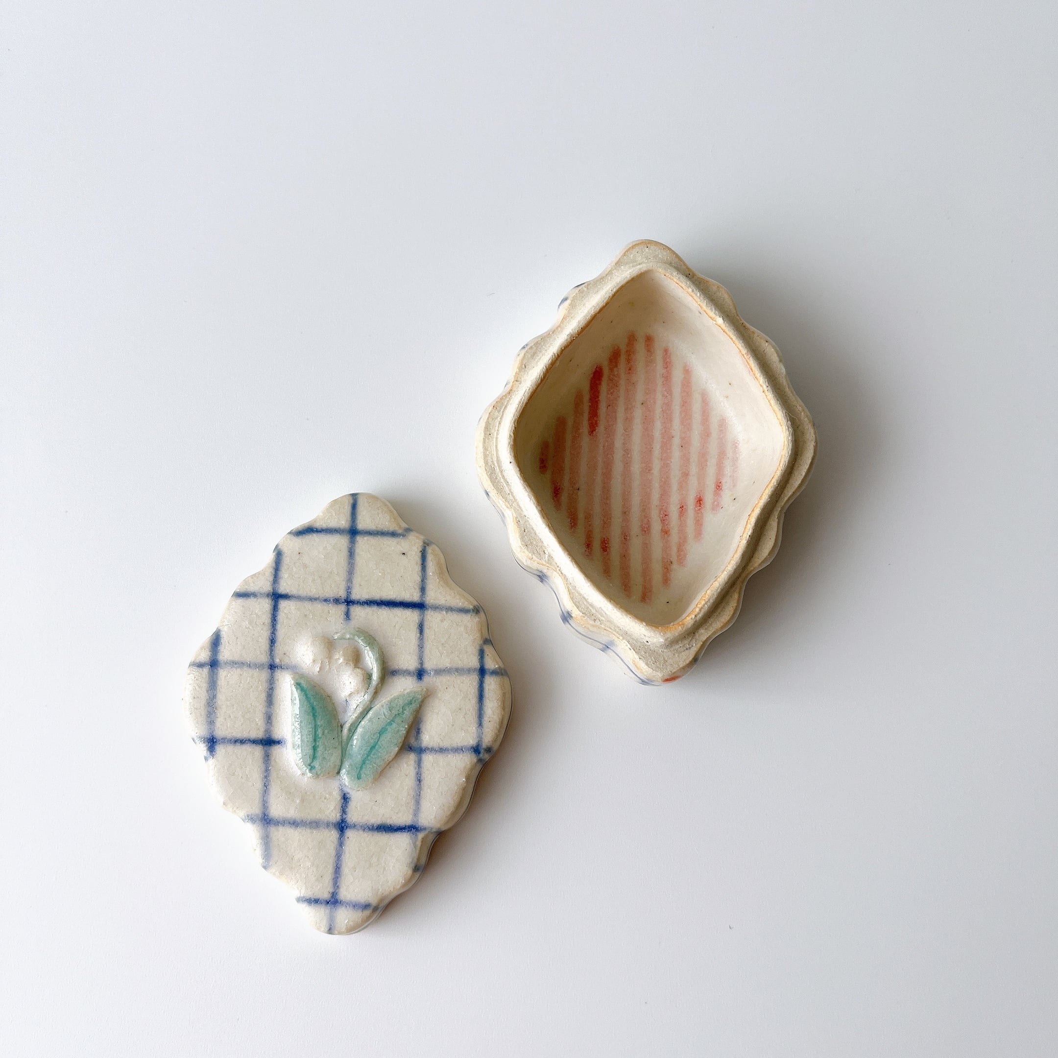 ぷっくりすずらんに、もくもくダイヤ形が可愛い陶の小箱。