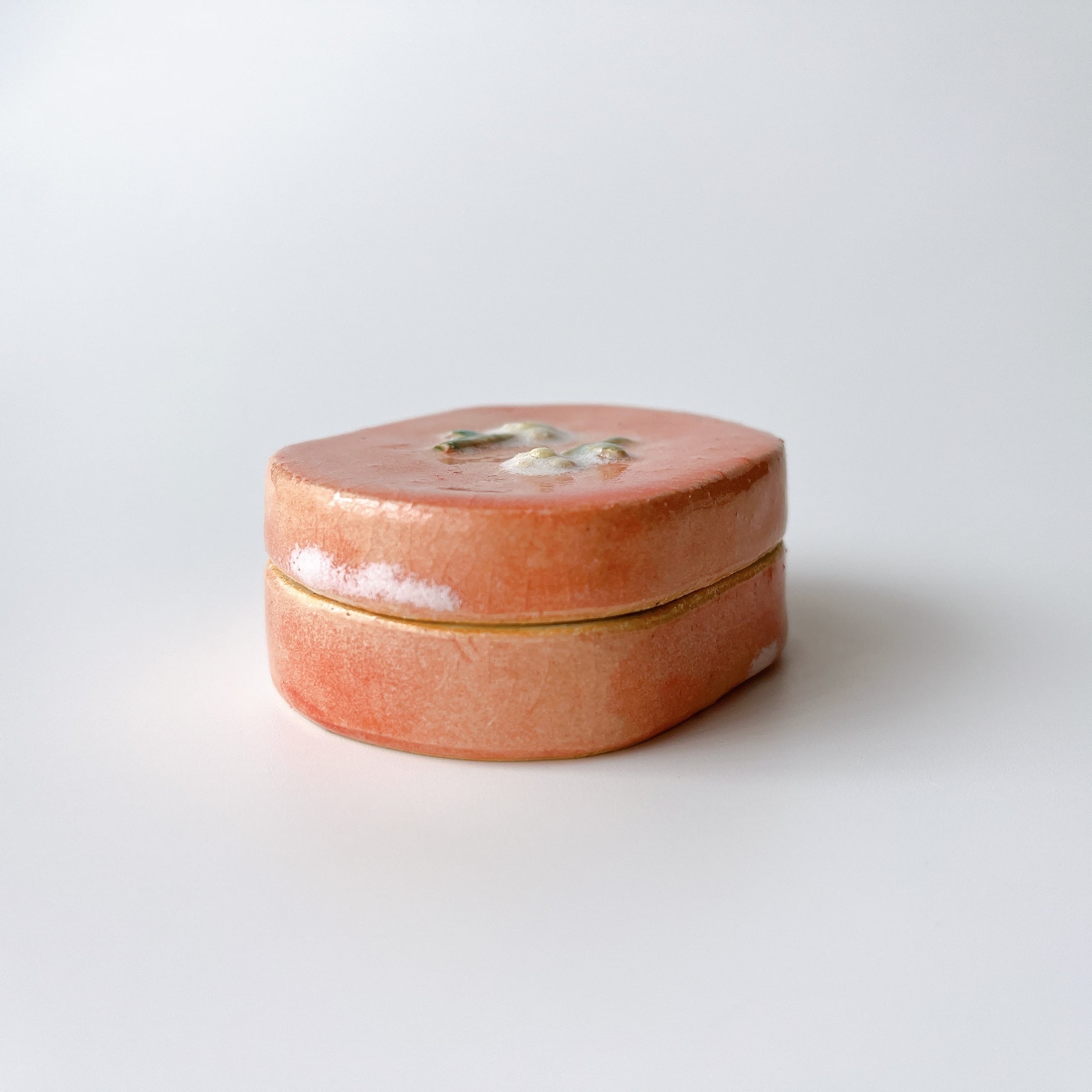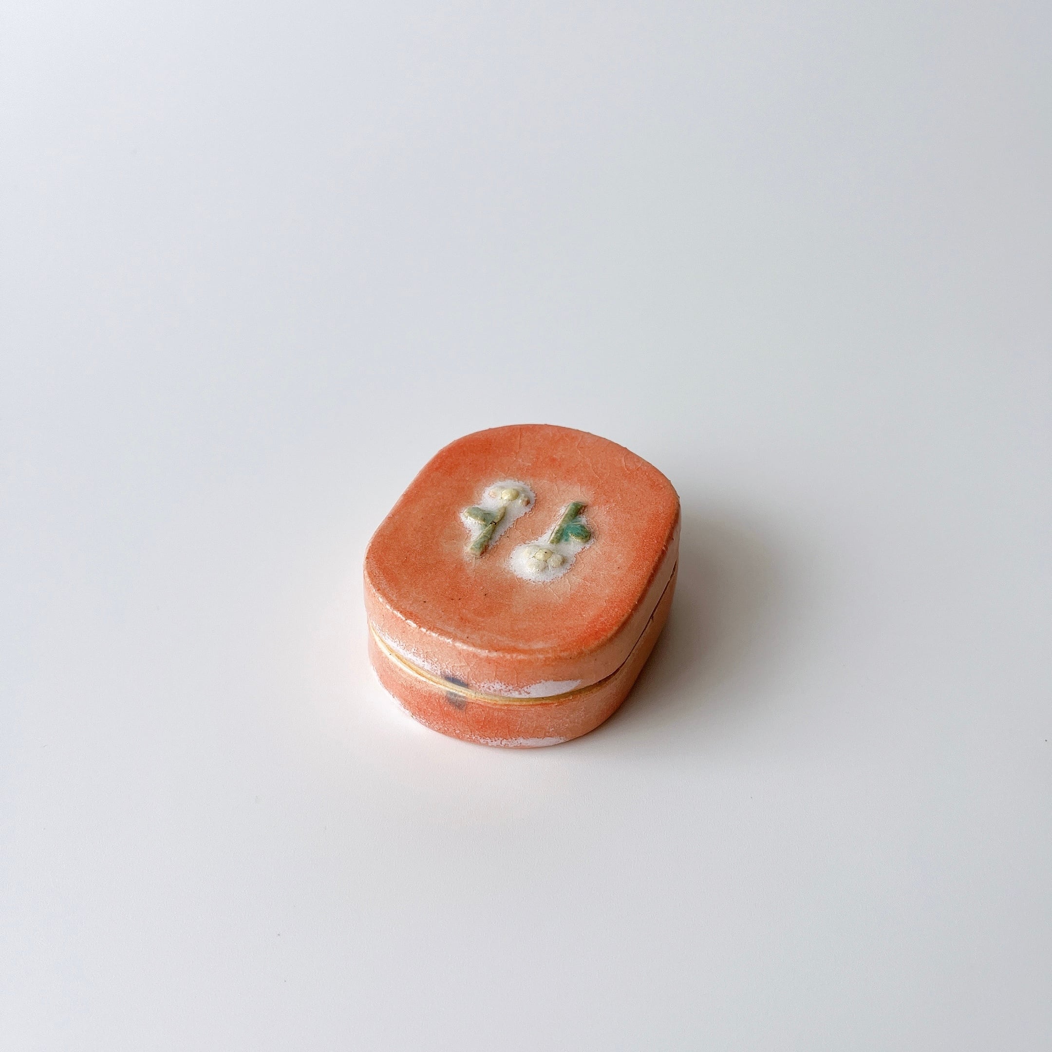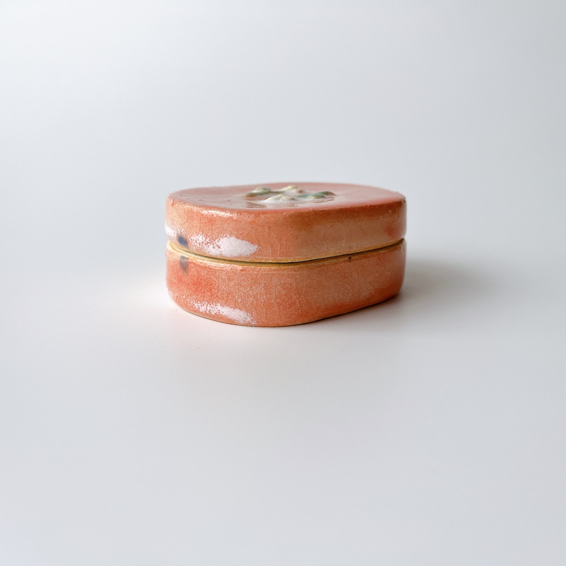 ぷっくり小花にが可愛い陶の小箱。