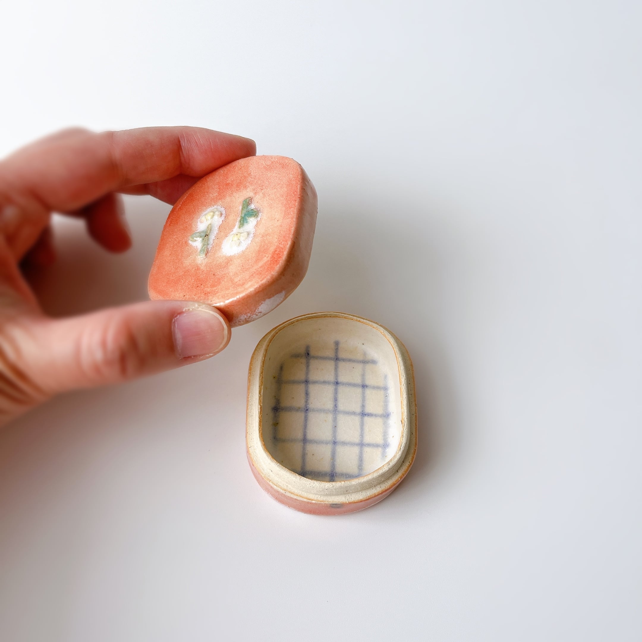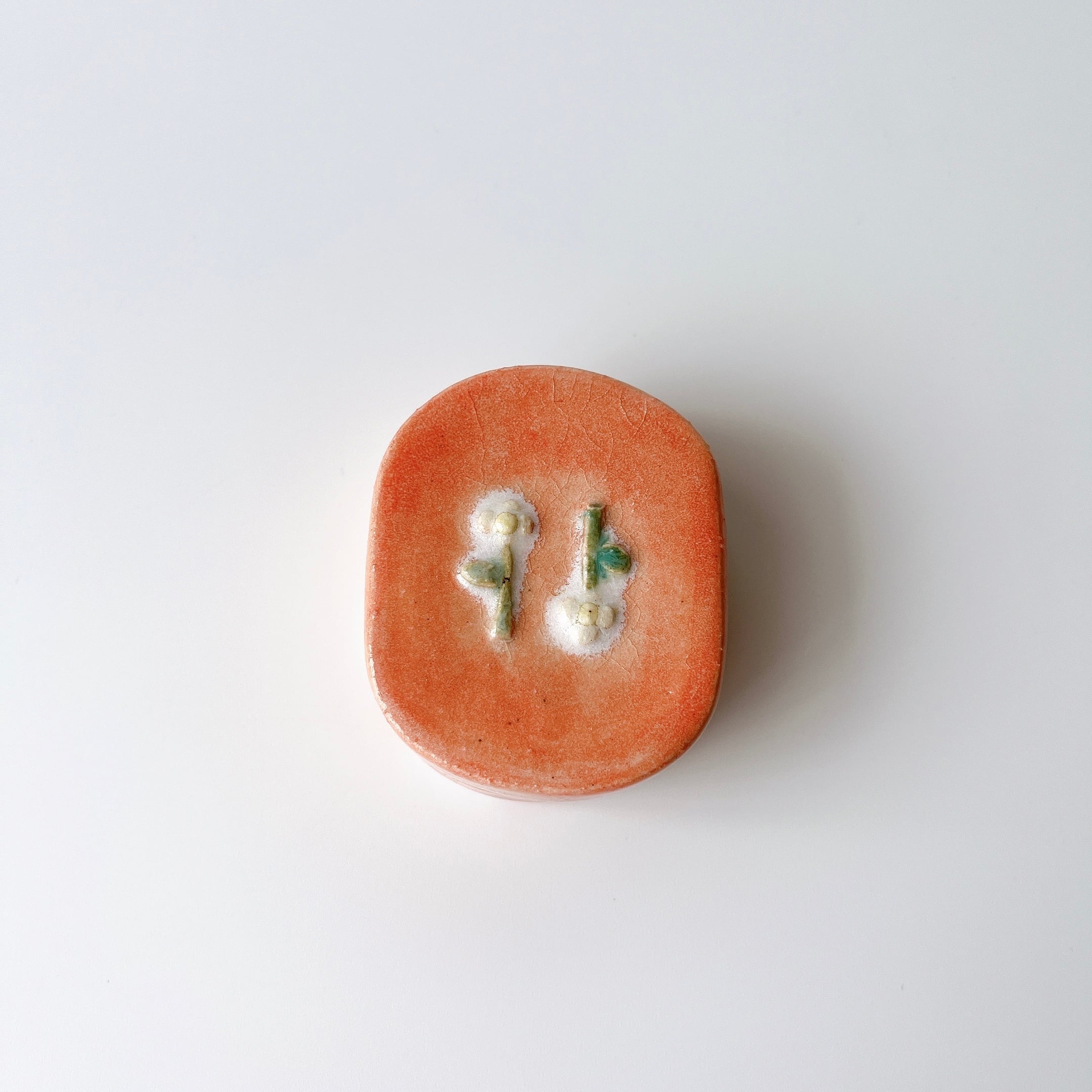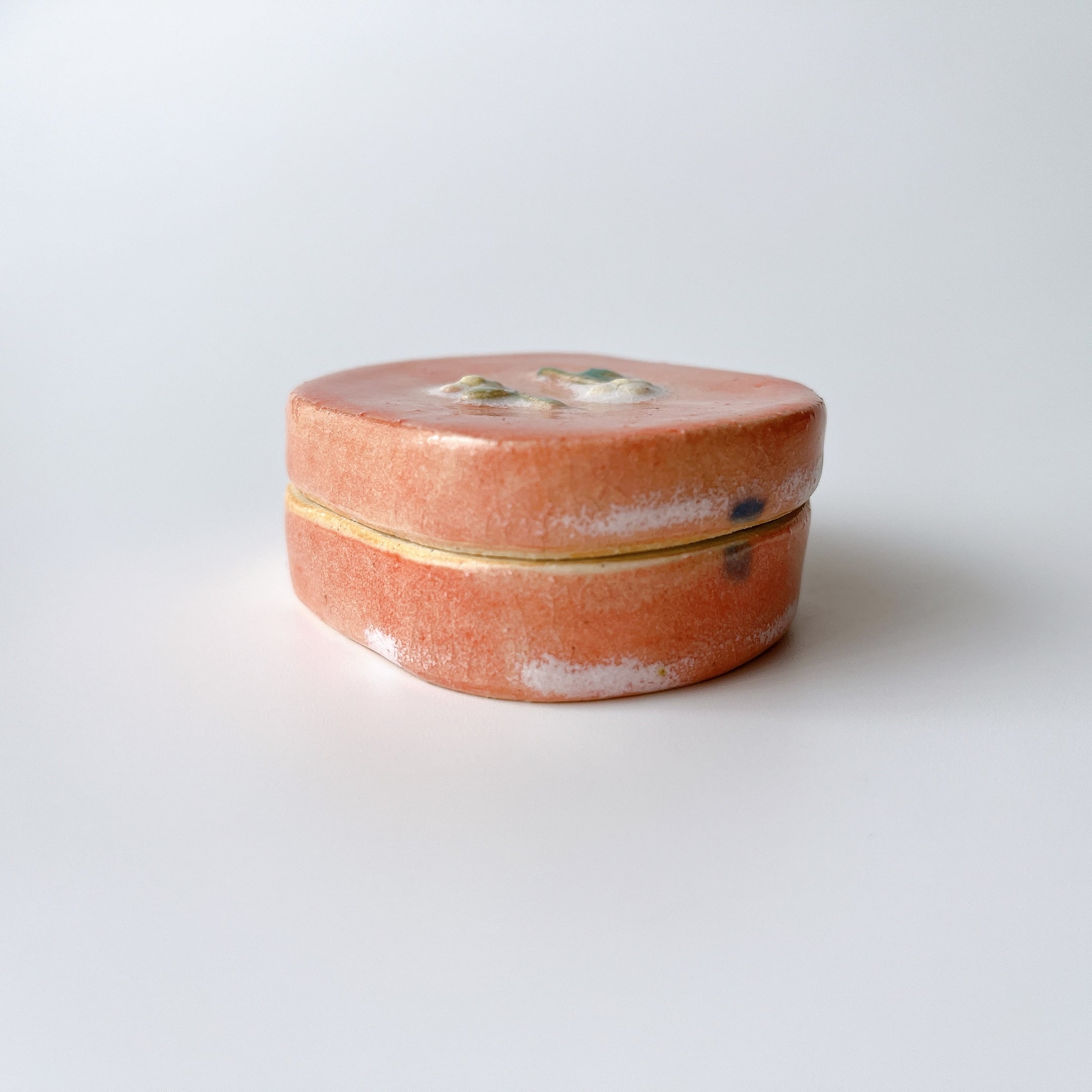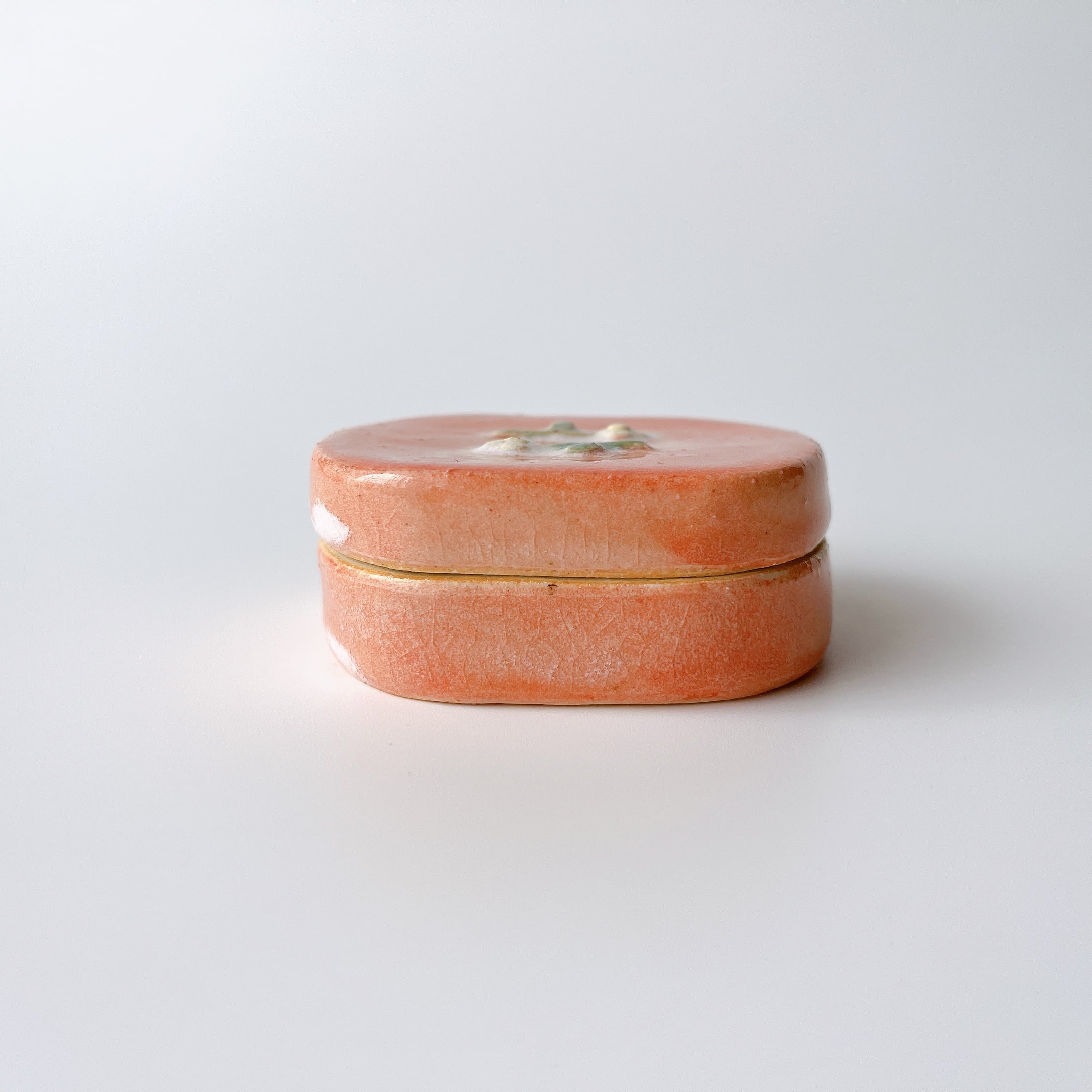 ぷっくり小花にが可愛い陶の小箱。
