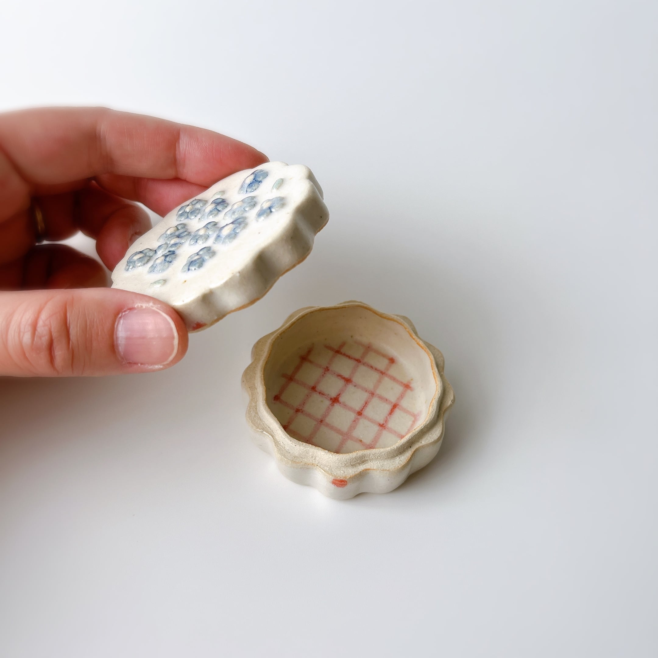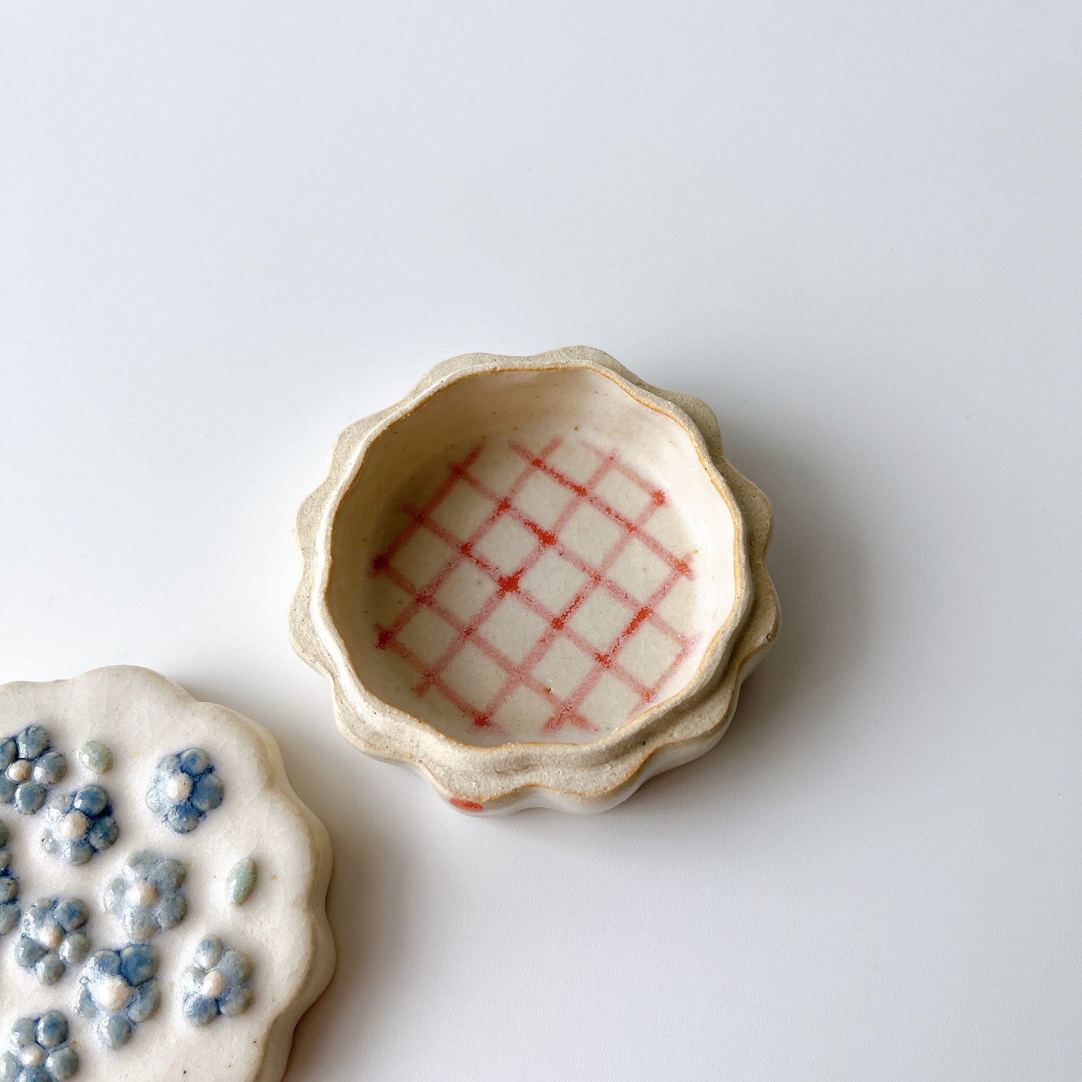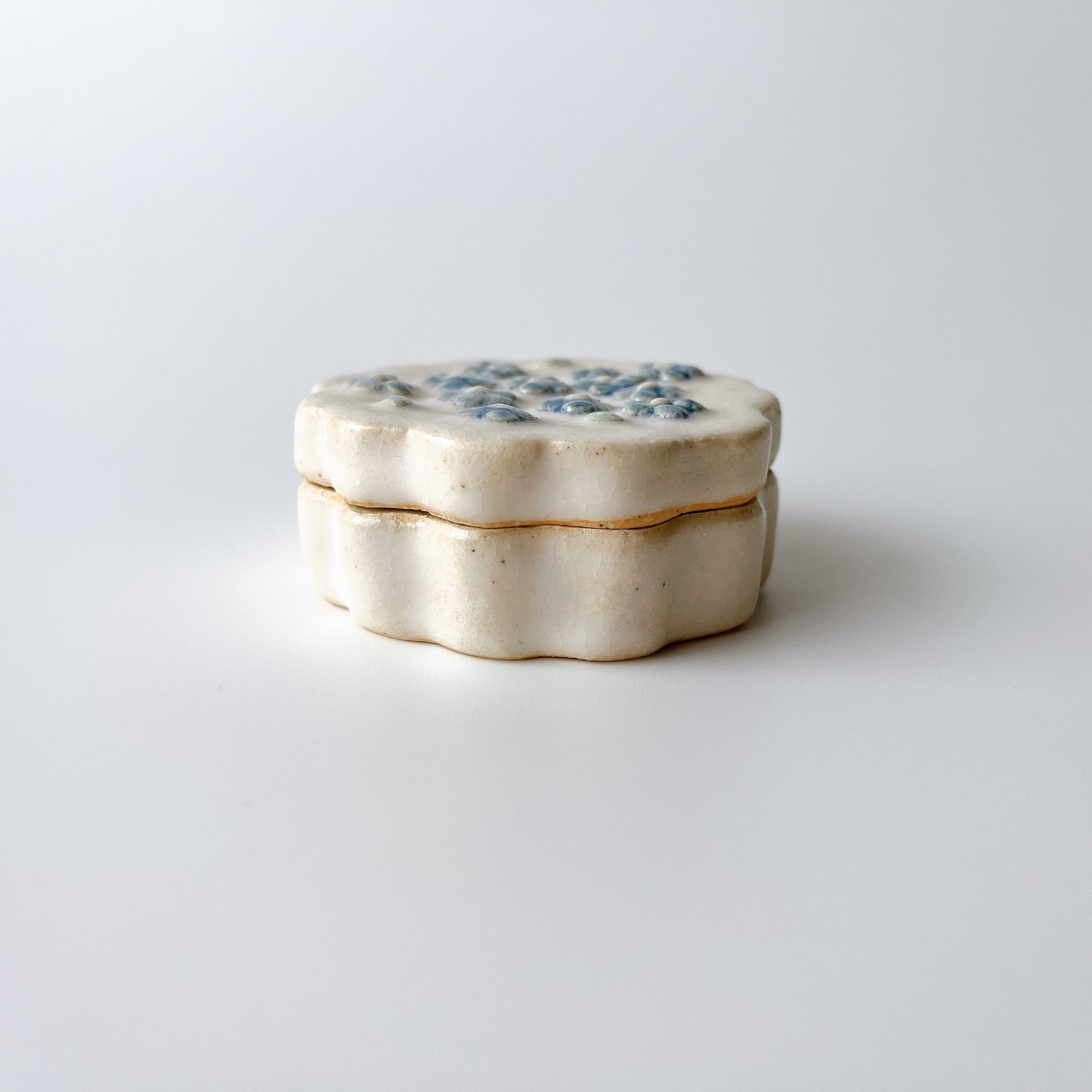ぷっくり小花たちに、もくもくした形が可愛い陶の小箱。