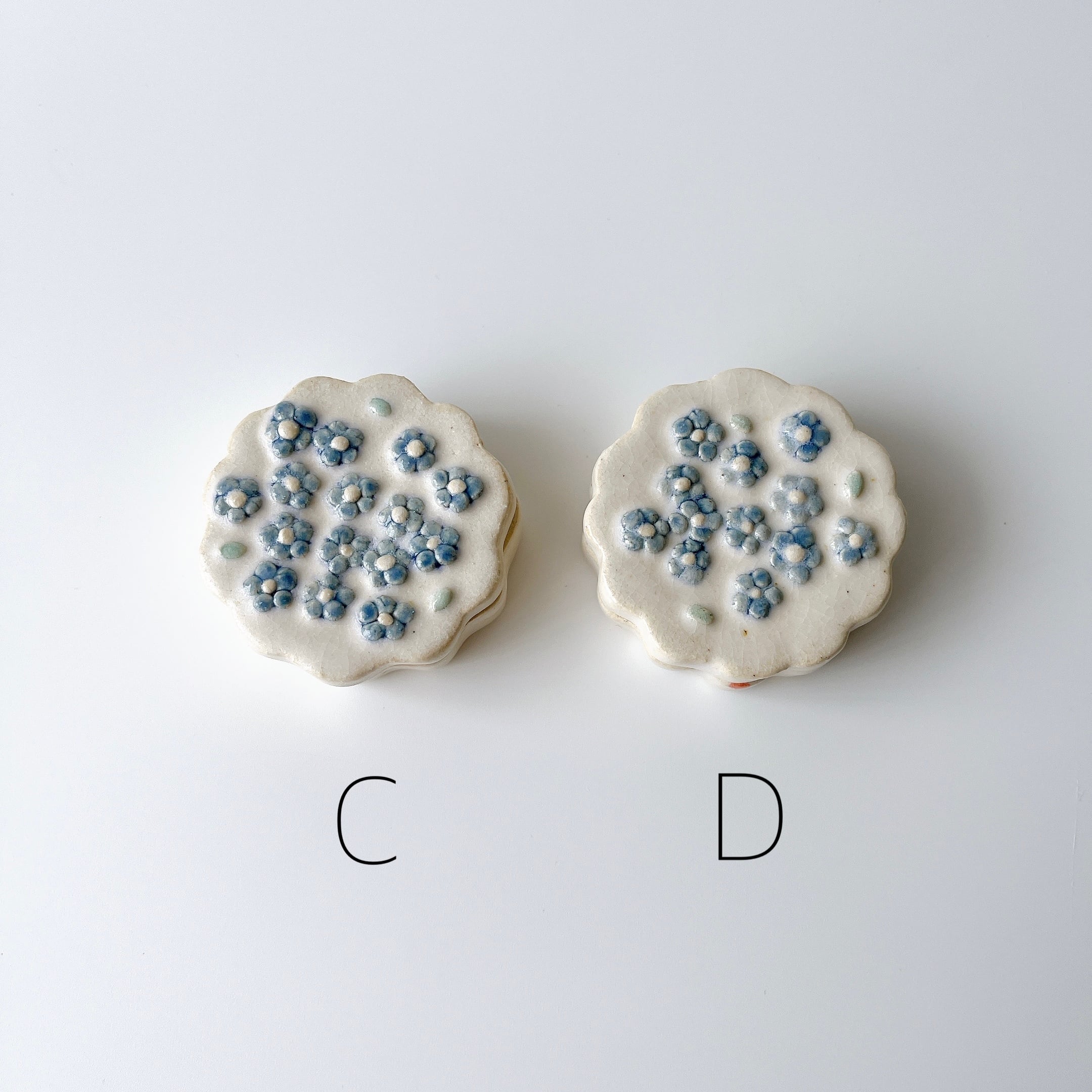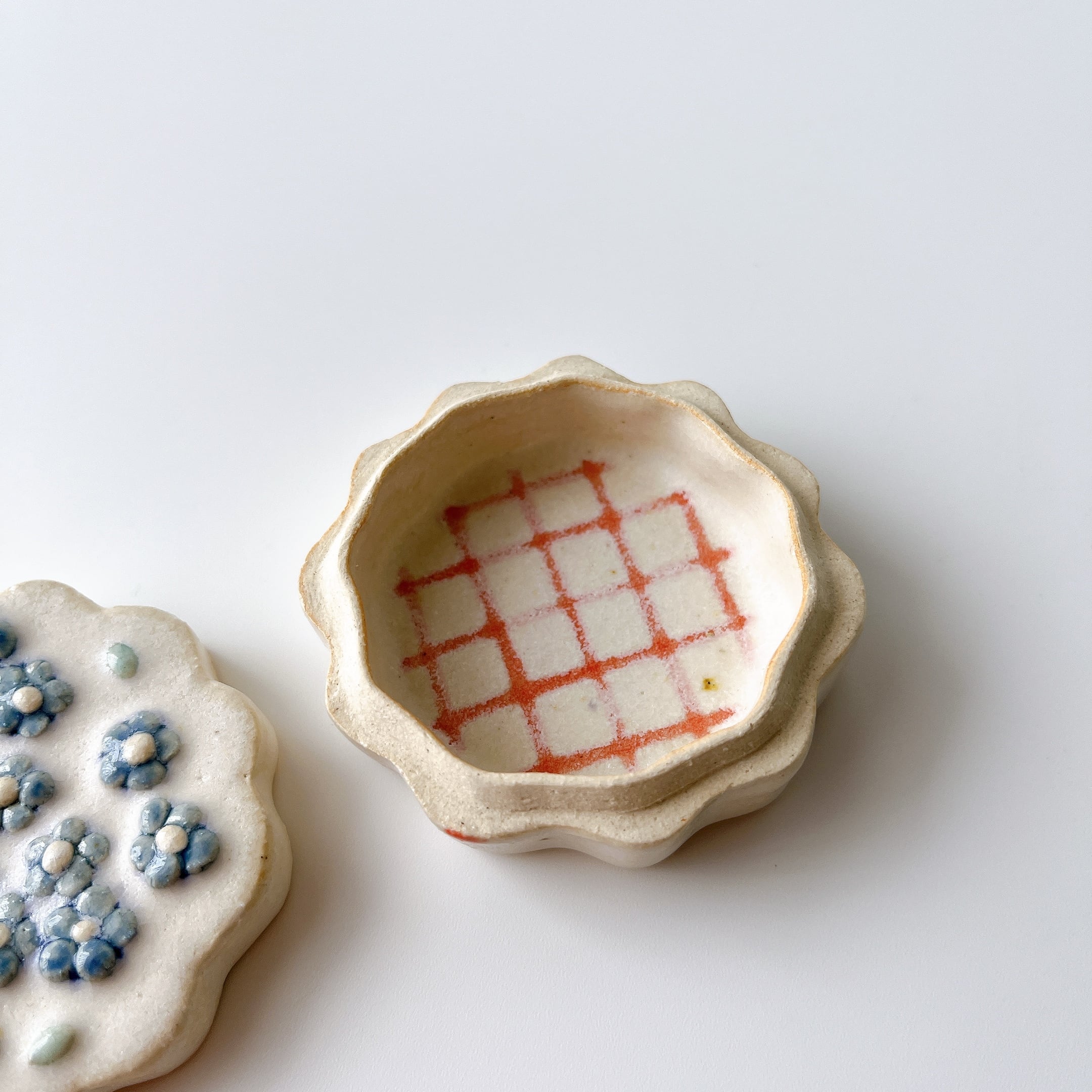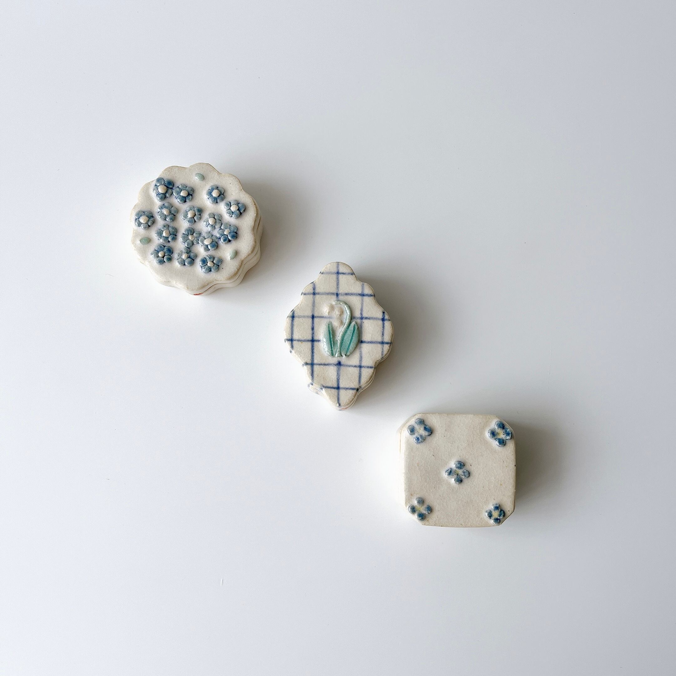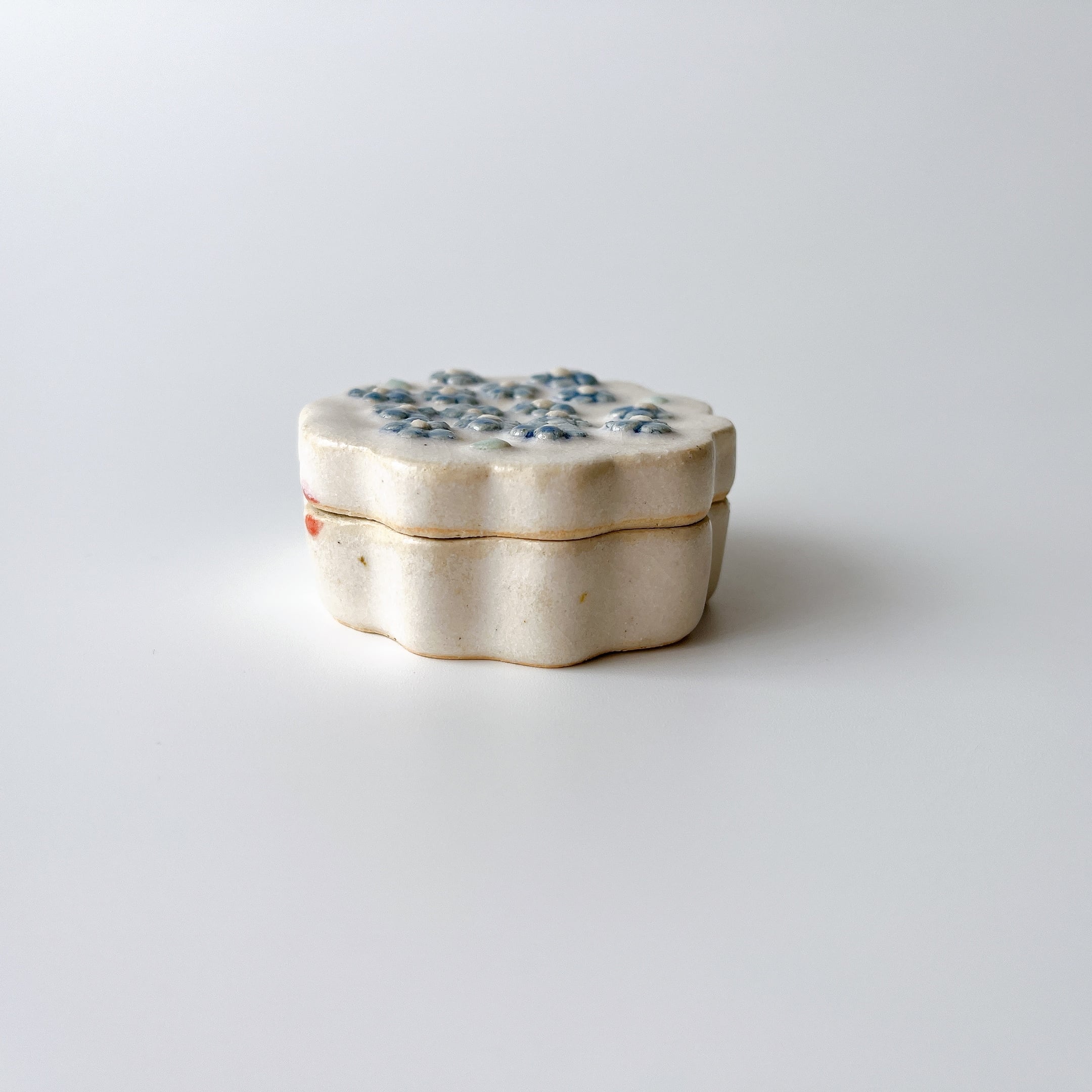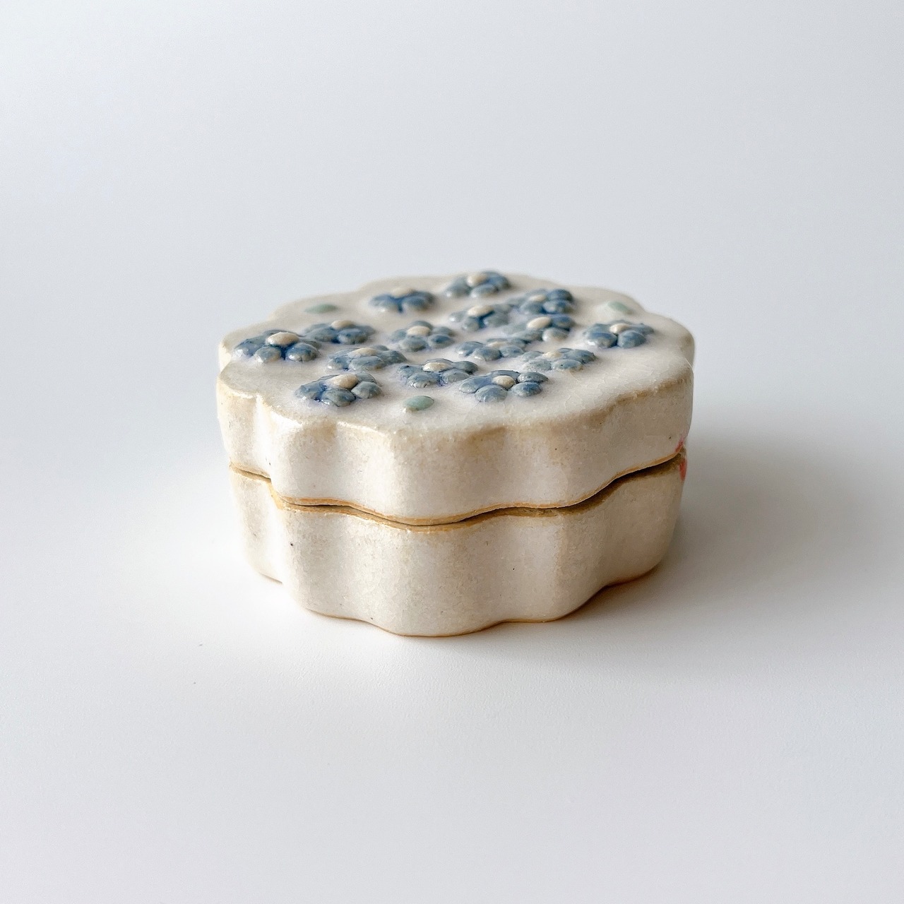 ぷっくり小花たちに、もくもくした形が可愛い陶の小箱。