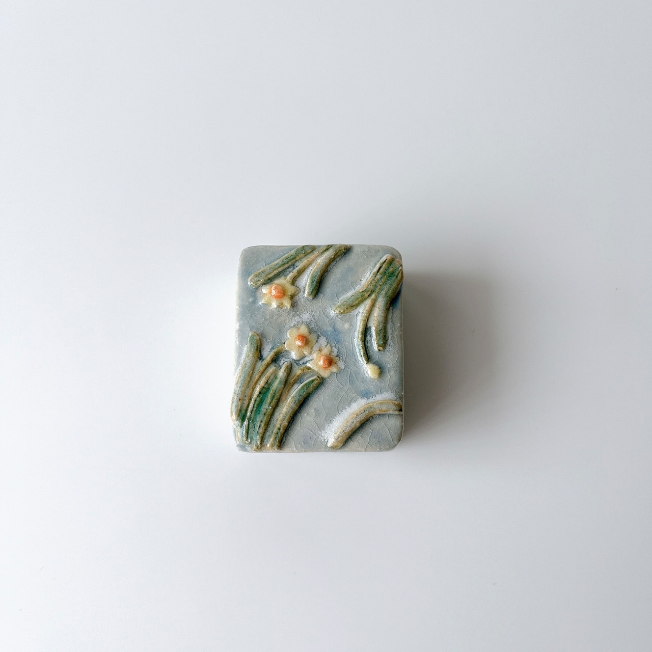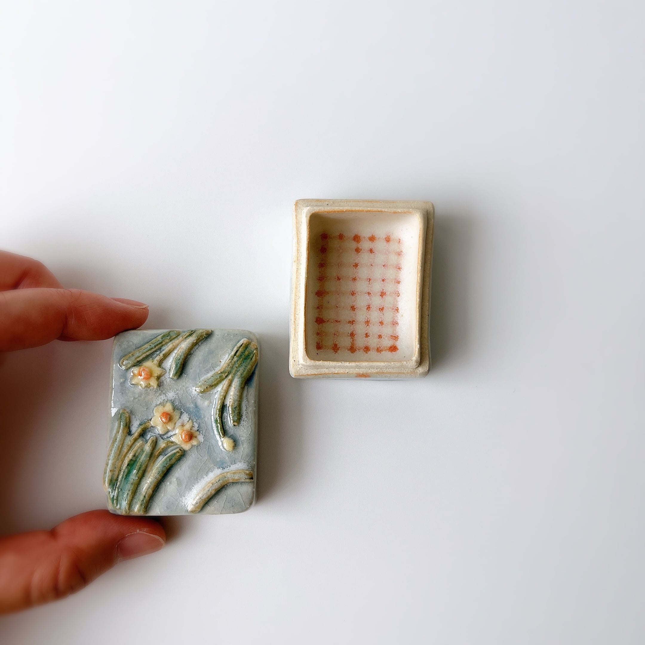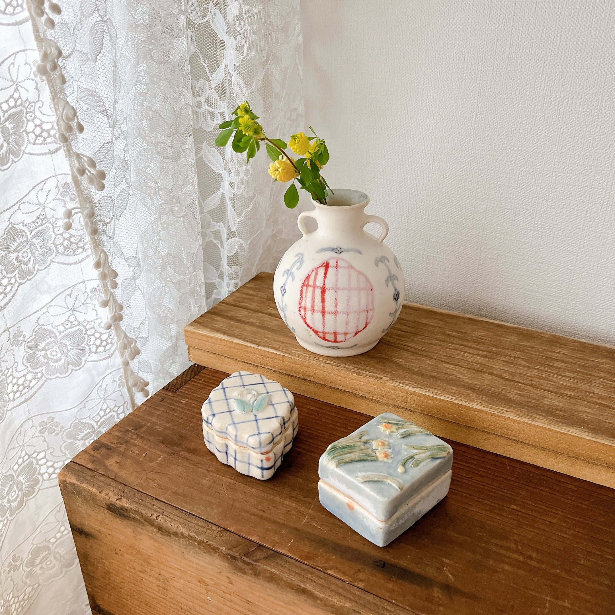 まるでヨーロッパのアンティークショップで見つけたような陶の小箱たち。