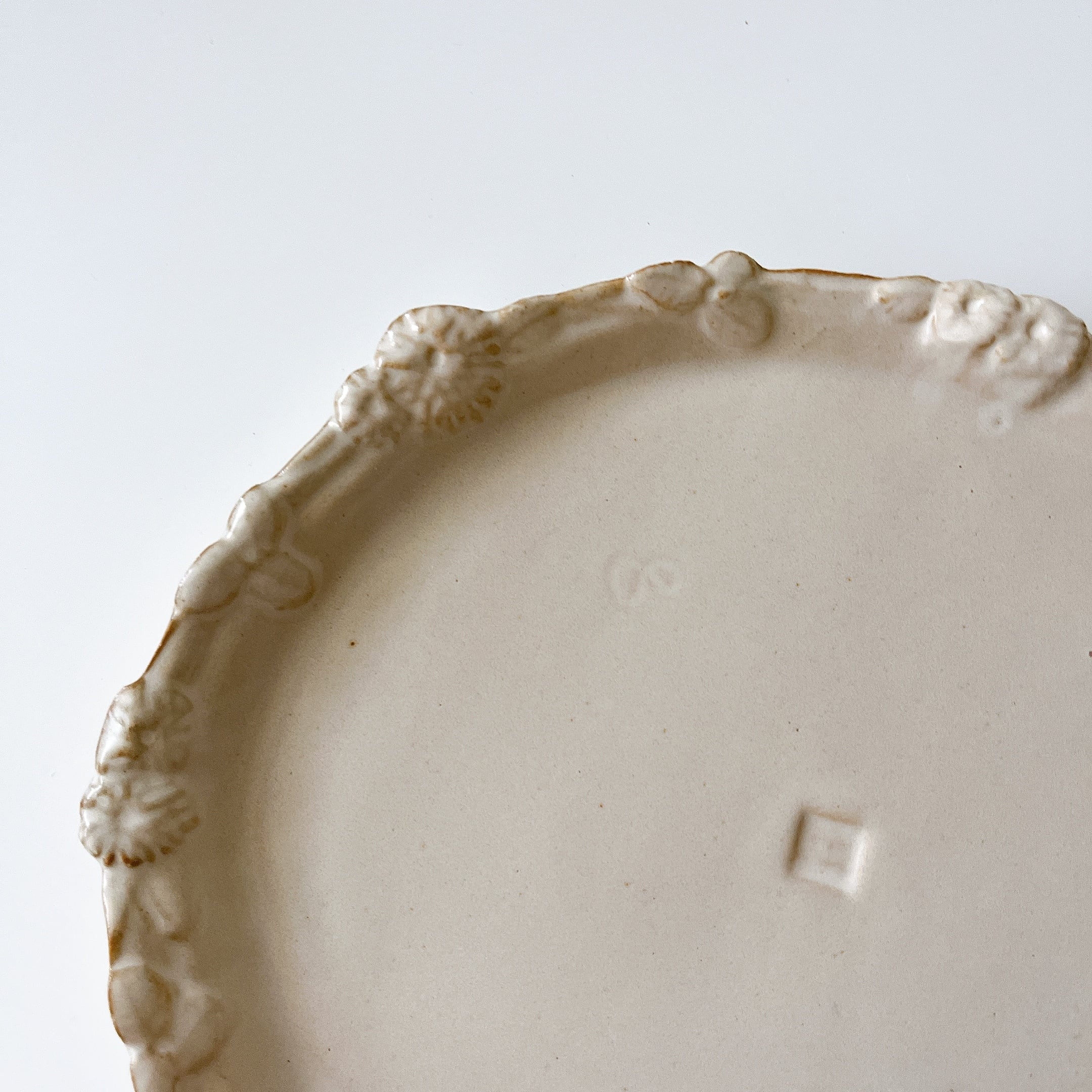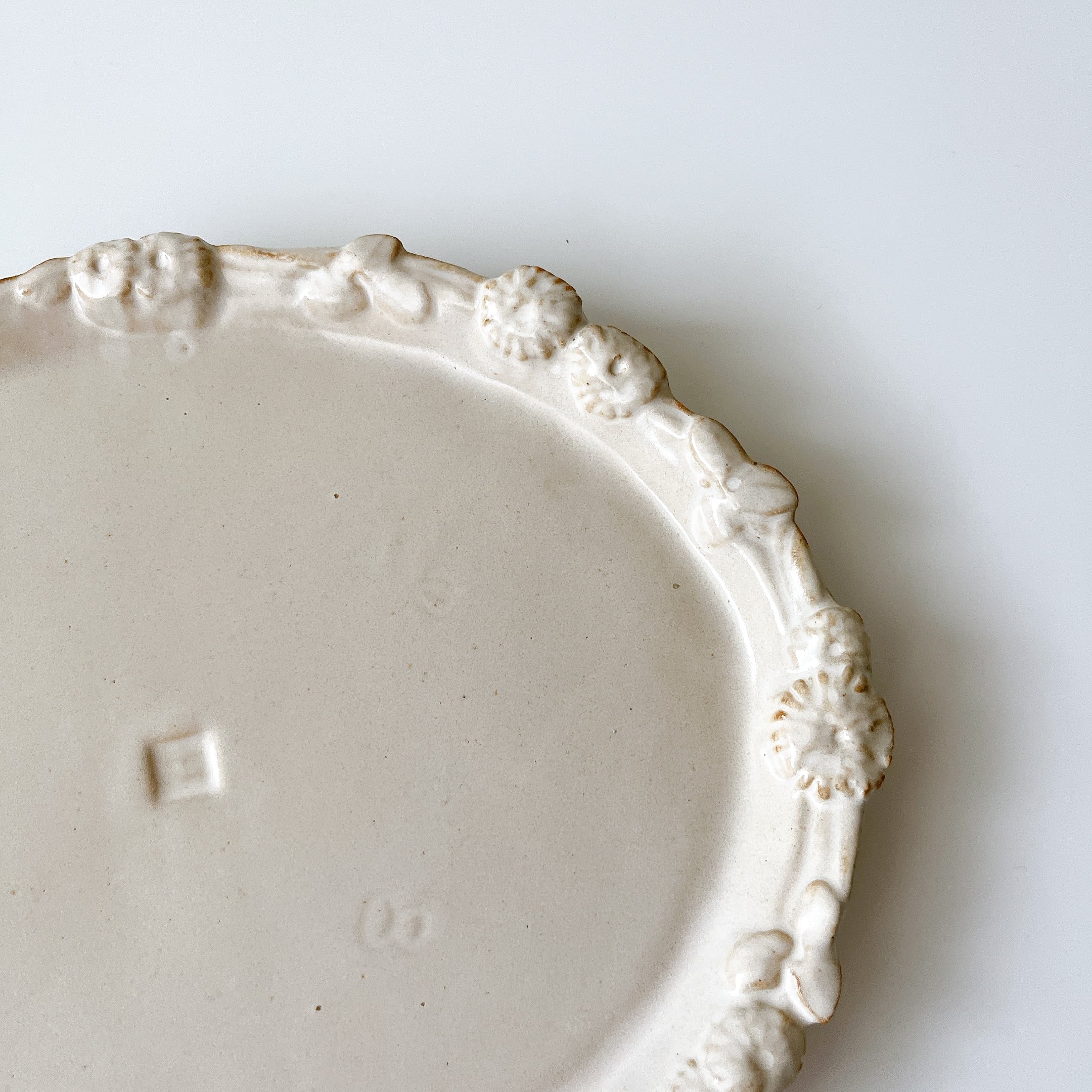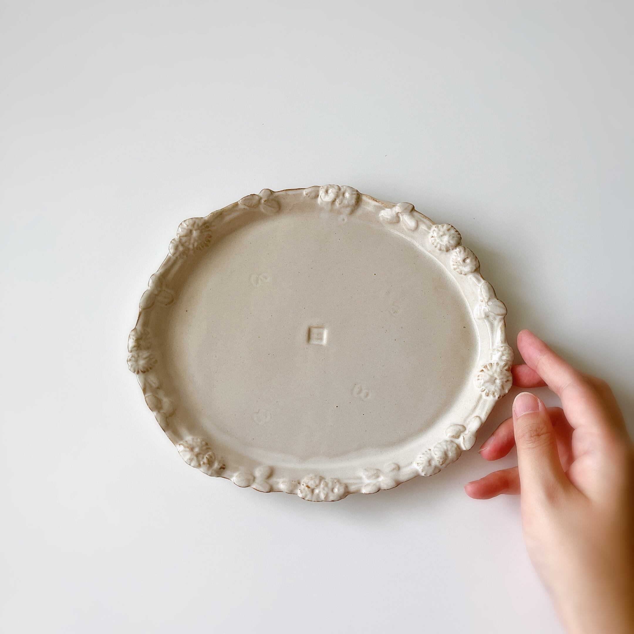ぐるっとシロツメクサに囲まれた愛らしいお皿。