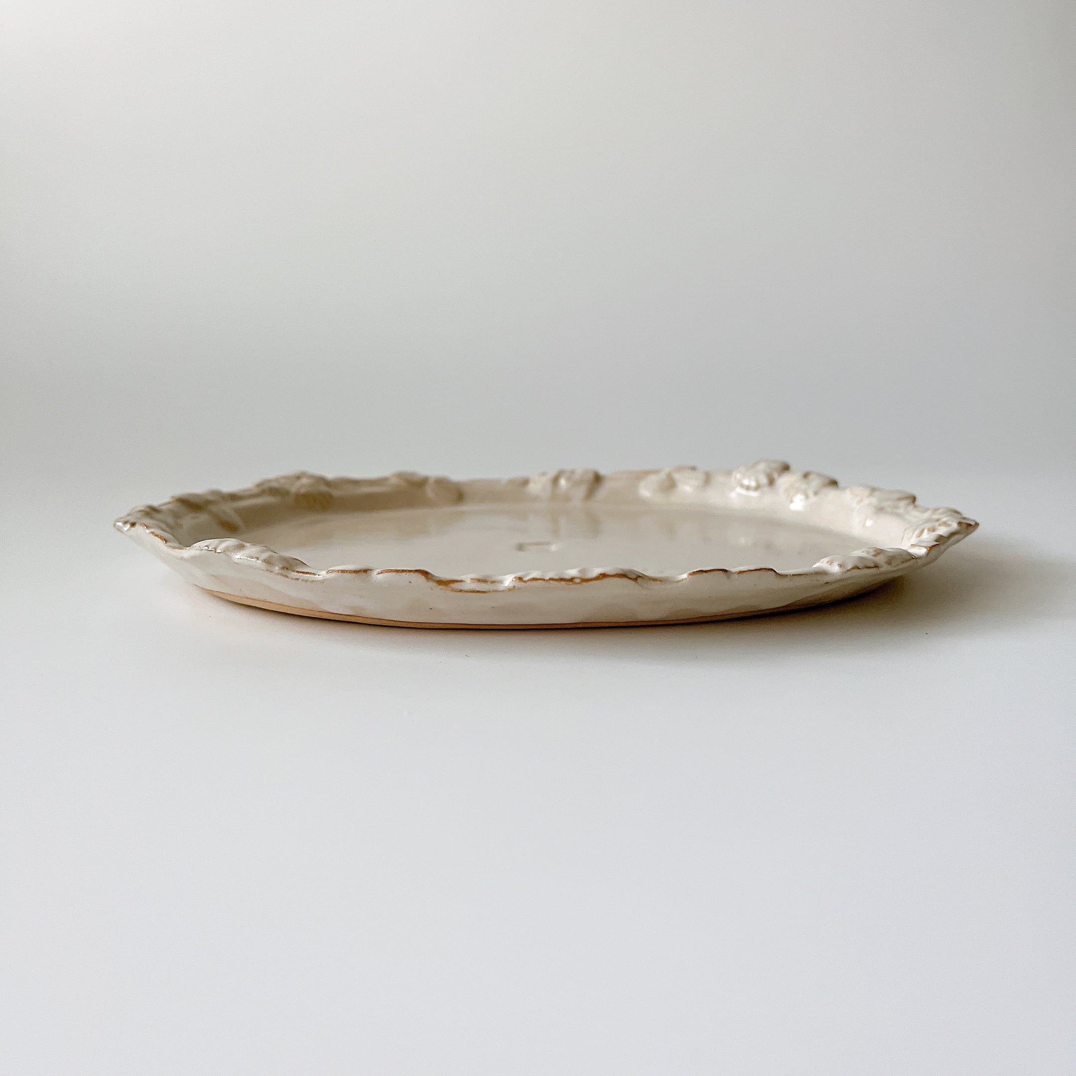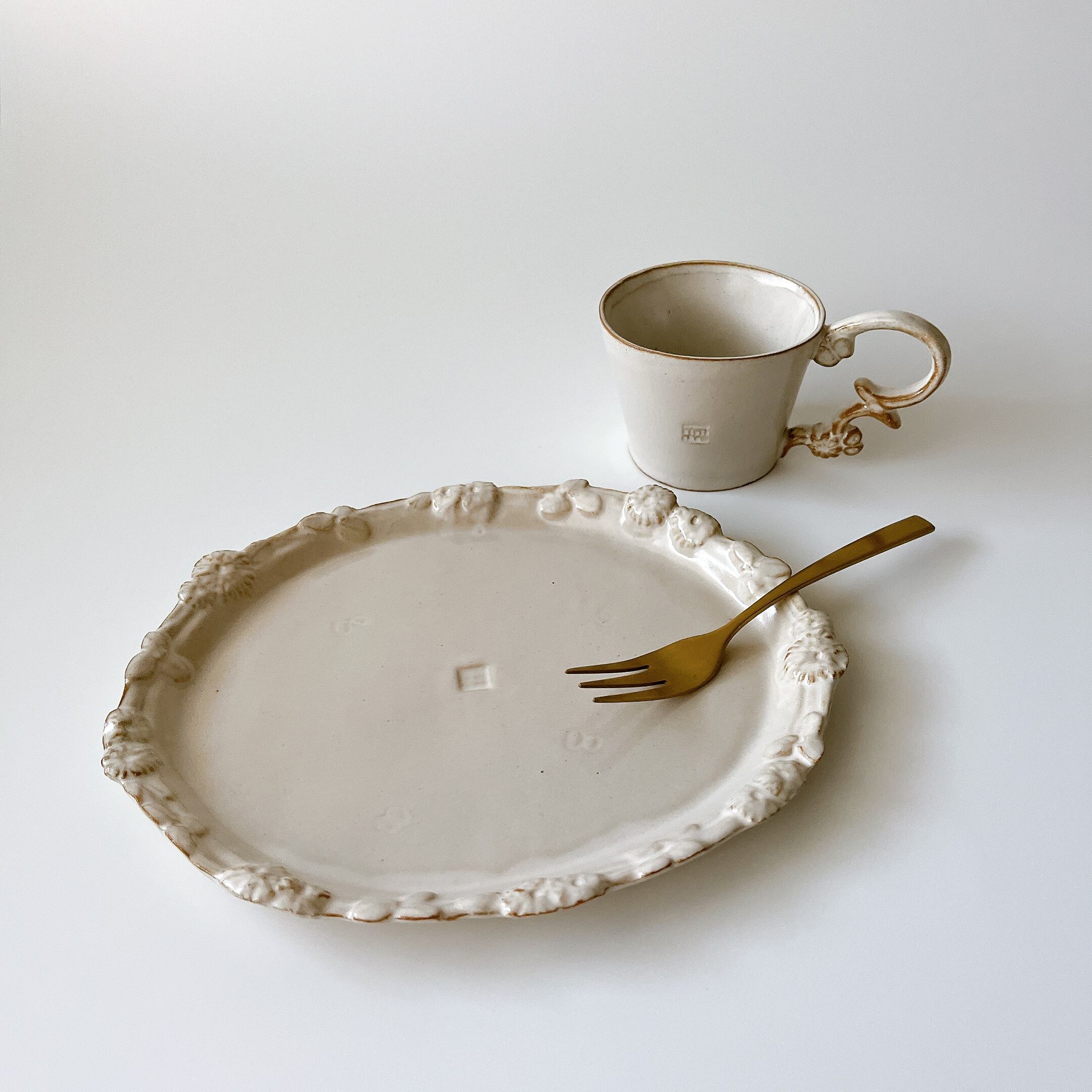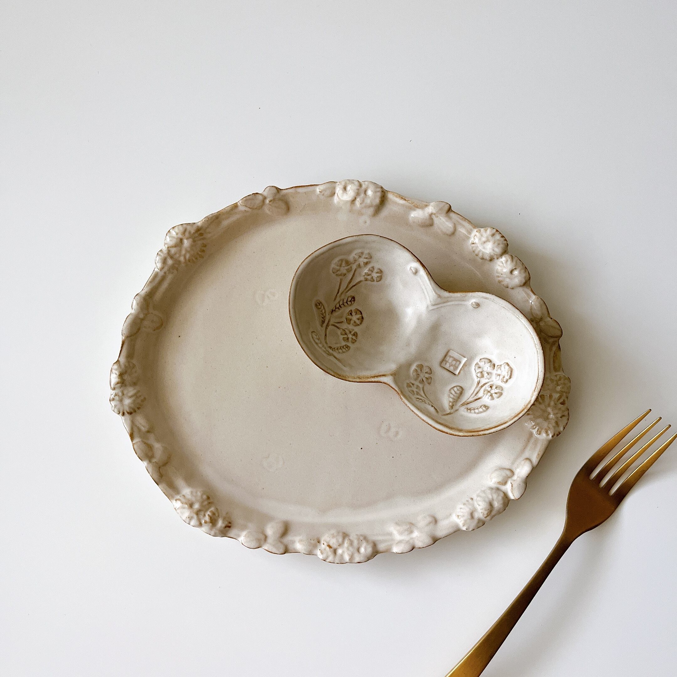 ぐるっとシロツメクサに囲まれた愛らしいお皿。