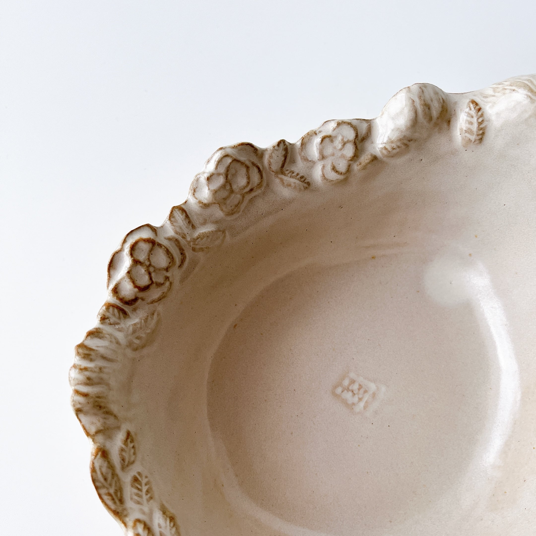 リムがお花で彩られて、置くだけで愛らしく華やか。