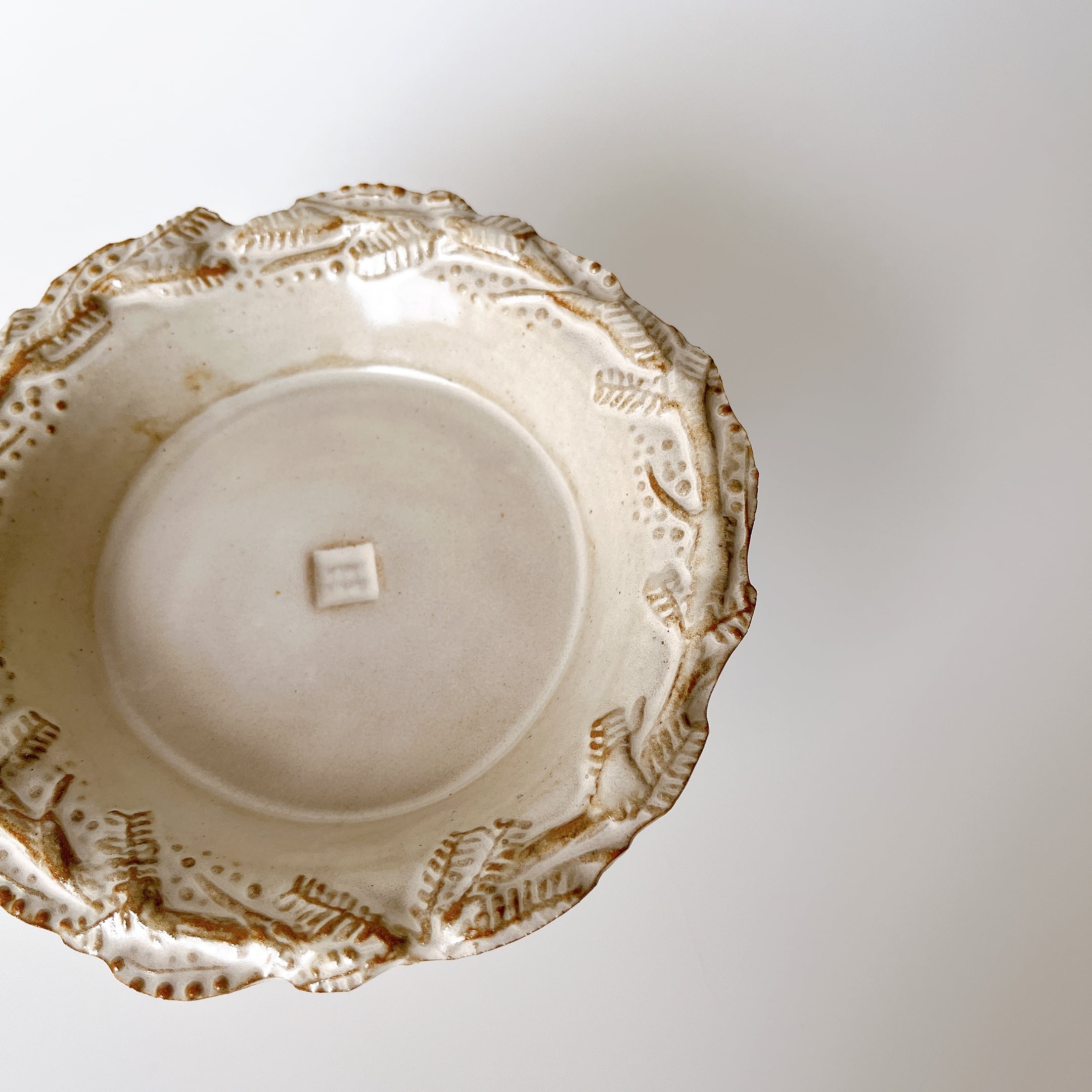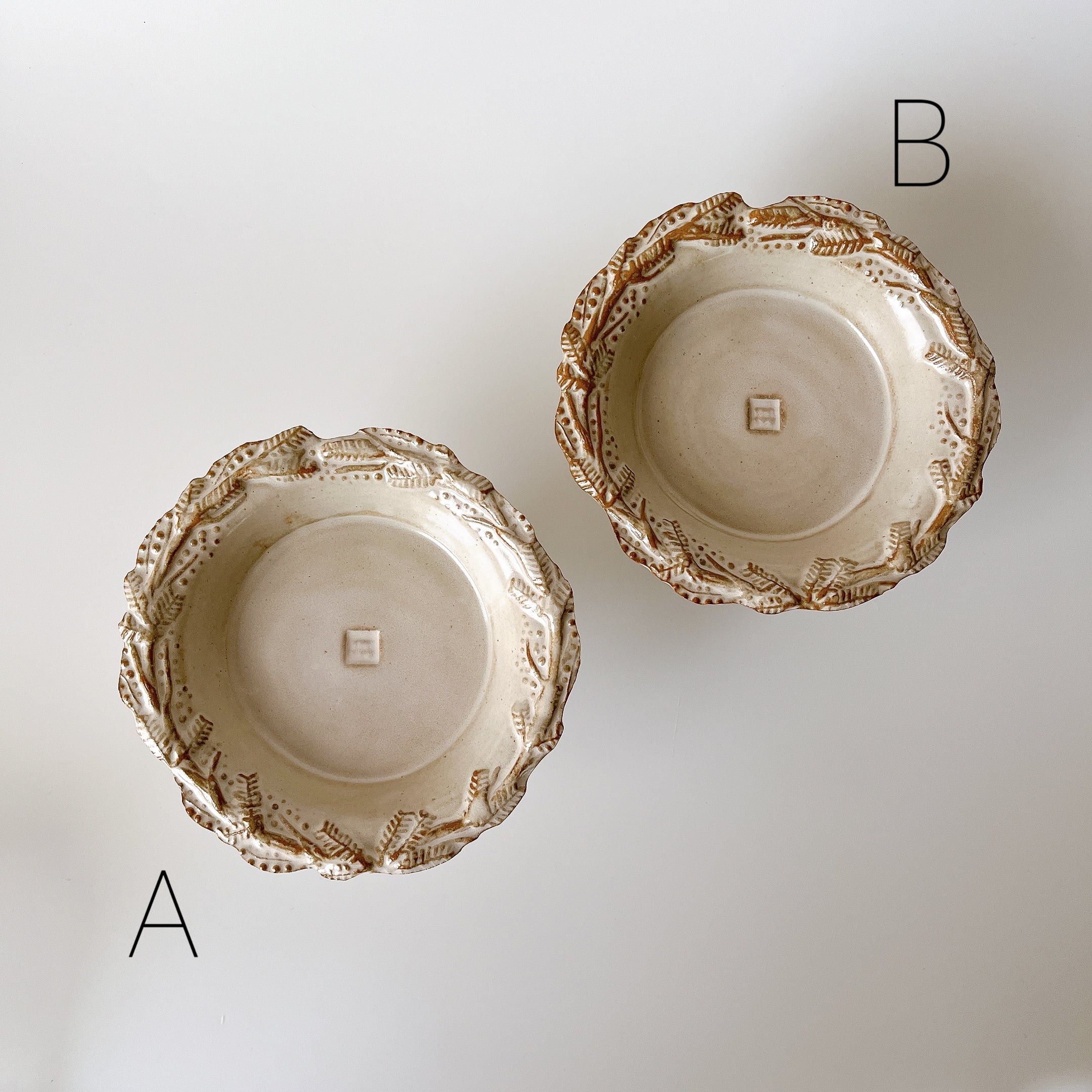 1点ずつ手づくりの為、多少の個体差(サイズや形(歪み/湾曲)・色味の濃淡・柄の出方(線や模様)・釉薬の具合など)がございます。