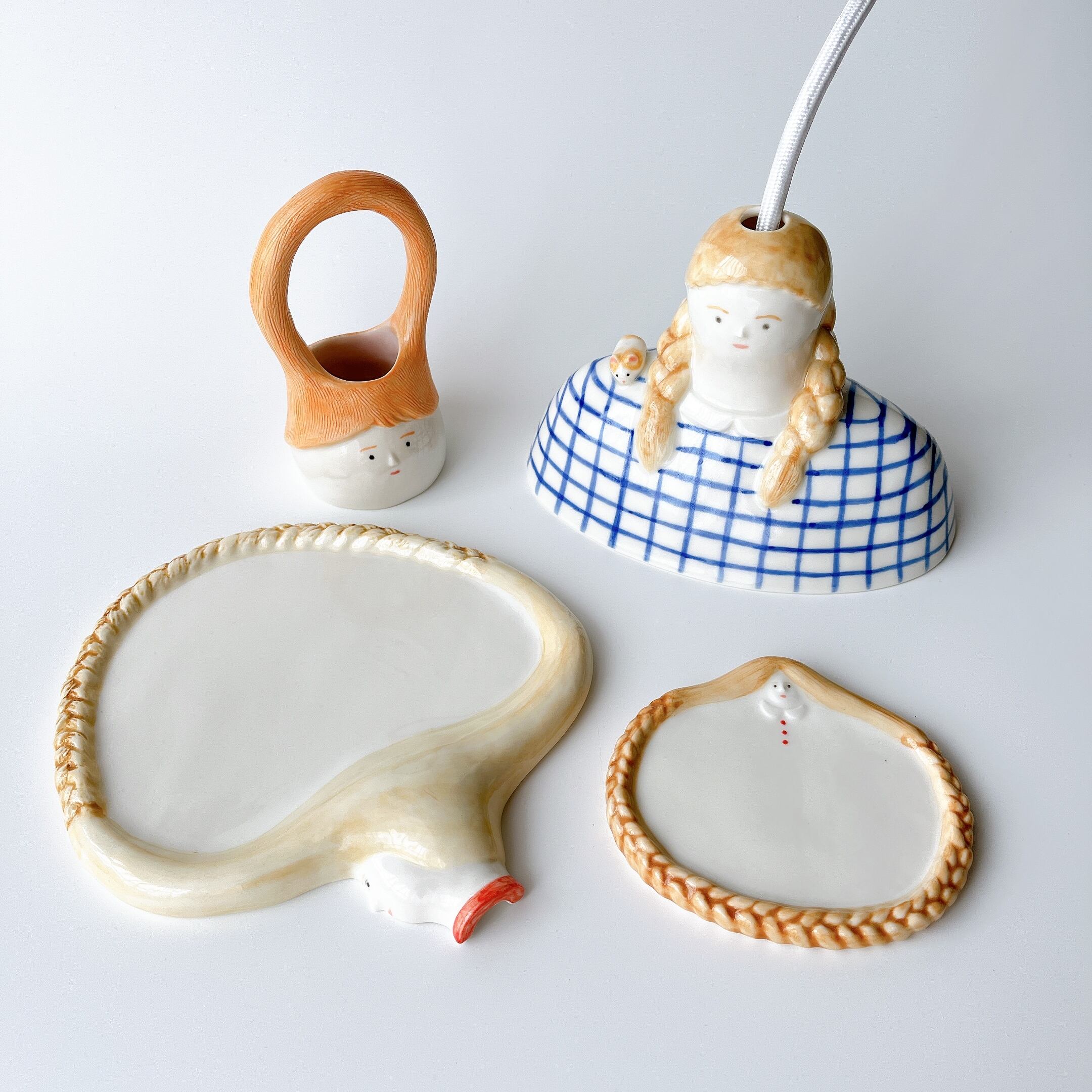髪がぐるっと持ち手になった可愛らしいオブジェ。